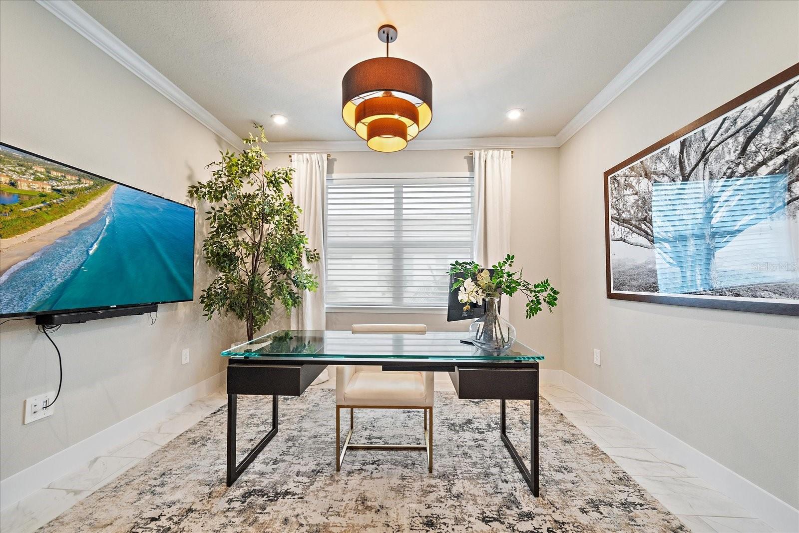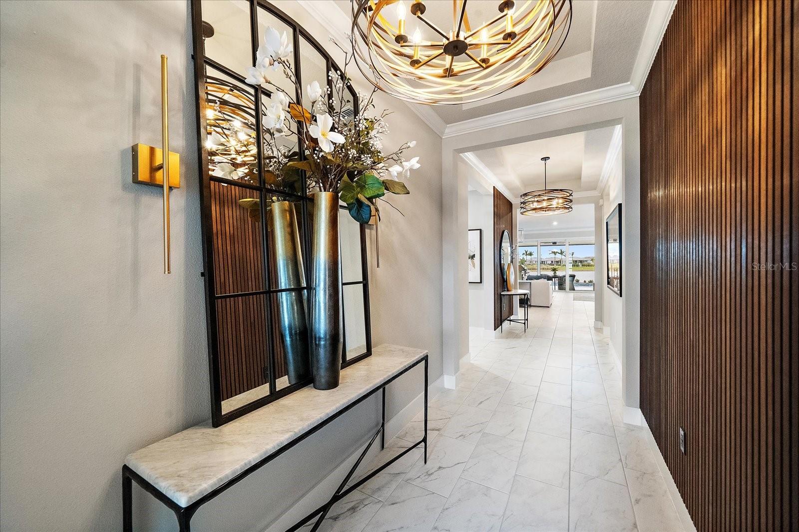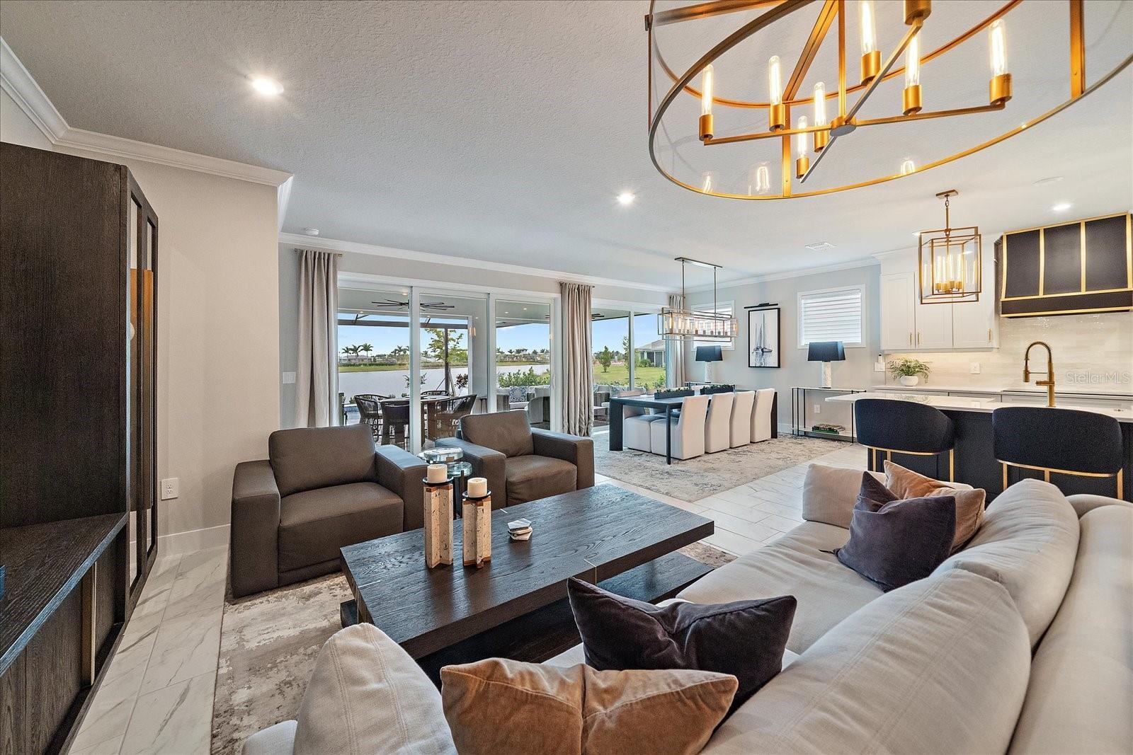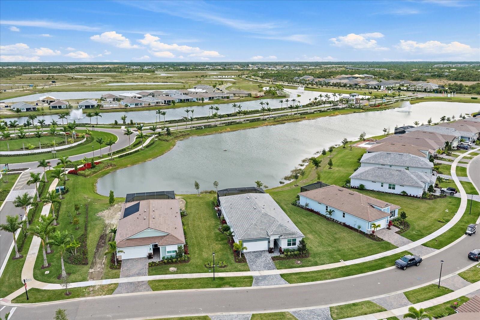 Welcome to an extraordinary opportunity in Brightmore at Wellen Park, the premier 55+ resort-style, gated community where luxury living meets an unmatched vibrant lifestyle. This recently completed Sapphire model by Mattamy Homes has been extensively reimagined and UPGRADED BEYOND BUILDER STANDARDS, creating a truly elevated, MAGAZINE-WORTHY residence that cannot be replicated with standard new construction. Offering 2,385 square feet, this stunning single-family home features 3 bedrooms, a flex room, and 2.5 baths, all thoughtfully designed on a premium water-view lot with exquisite CUSTOM POOL, extended lanai and outdoor kitchen overlooking a tranquil fountain backdrop — a setting that elevates everyday living. From the moment you arrive, it’s clear this home is in a league of its own. The owners selected top-tier structural and design upgrades with the builder, porcelain tile flooring, tray ceilings, 4 foot garage extension, upgraded cabinets & countertops, under cabinet lighting & farm sink, kitchen island cabinet wrap and more – and then went even further after closing making significant enhancements that are not possible through the builder. From the new Luxury Café appliance suite including double ovens, microwave, induction cooktop, drawer dishwasher, and refrigerator as well as a custom kitchen hood and elegant backsplash, custom wall trim & accents, designer lighting & fixtures from Restoration Hardware and Elevated Lights, custom wood pantry & closets plus customized primary suite closet system, and remote-controlled shades & window treatments & water purification system. The back of the home is truly a luxury oasis with an extended covered lanai, custom pool with tanning ledge, LED lighting, leathered marble decking, and Clearview pool cage for unobstructed water views and a built-in outdoor kitchen with grill, sink, and refrigerator. SPF wind screens were also added for comfort and security, and additional landscaping and irrigation complete the luxe tropical feel. No detail was overlooked with this impeccable home. A better-than-new, fully upgraded luxury residence in one of Wellen Park’s most sought-after communities. There is truly nothing else like it on the market.