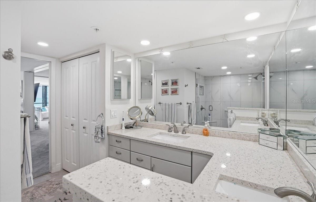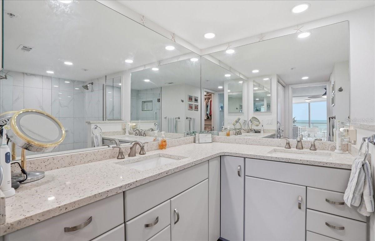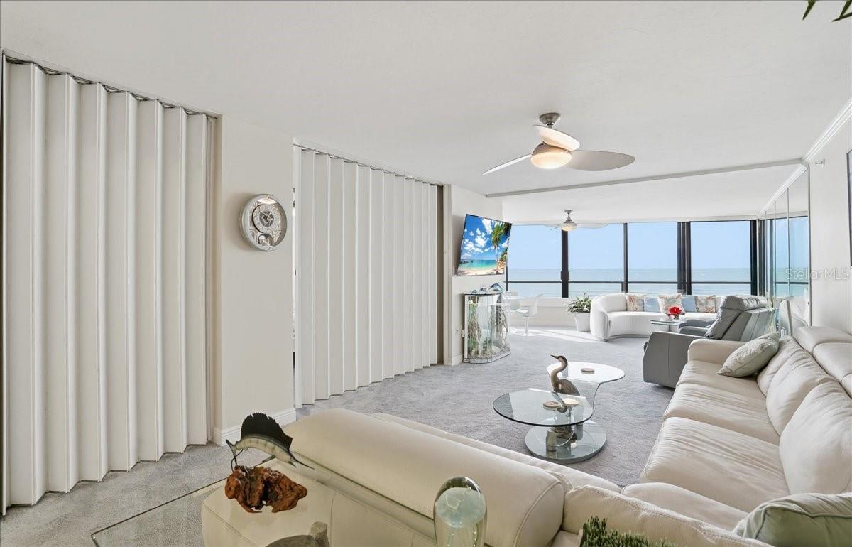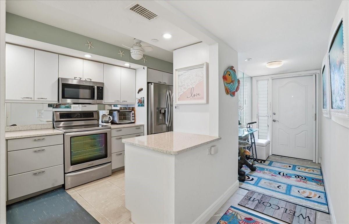 Discover your dream coastal retreat in this stunning third-floor condo with breathtaking full Gulf views. This beautifully designed condo features a convertible master bedroom, providing flexibility to suit your lifestyle. The master ensuite is a true sanctuary, boasting elegant tile floors, dual sinks with Corian countertops, and a stylish walk-in shower with glass doors. The spacious walk-in closet, along with an additional regular closet, offers ample storage for all your essentials. As you enter, you're welcomed by a tiled entry that leads into a cozy living and dining area adorned with plush carpeting. Enjoy the seamless flow of space, ideal for both relaxation and entertaining, while soaking in the gorgeous direct Gulf views from your living room. The guest bedroom is generously sized, featuring tile flooring, built-in storage, and a large closet for all your guests' needs. The guest bath has been tastefully updated, featuring a spacious walk-in shower with floor-to-ceiling tile, a bench seat, and glass doors, combining function with luxury. The kitchen is equipped with newer stainless-steel appliances, quartz countertops, and ample storage, including a pantry and a convenient washer and dryer in the unit. Imagine cooking while taking in stunning sunset views over the Gulf. This condo is turn-key furnished, allowing for a seamless transition to your new life by the beach. Enjoy added features such as crown molding and attractive floorboards throughout the unit. The secured building offers peace of mind, and residents have access to a newly renovated clubhouse with a Gulfside pool and BBQ area, perfect for socializing and soaking up the sun. Just minutes from historic downtown Venice, you can bike or walk and enjoy quaint shops, boutiques, award-winning restaurants, the Venice Art Center, Venice Theatre, and medical facilities. Don’t miss this incredible opportunity to own a piece of paradise with unparalleled Gulf views!