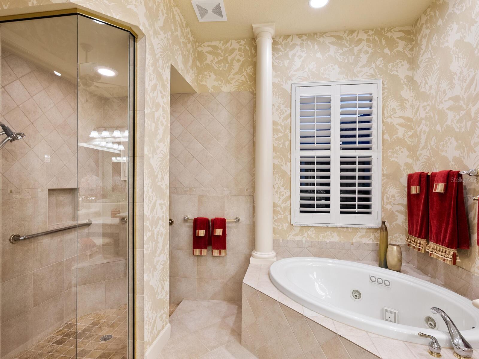 - Built-in Features, Ceiling Fans(s), Chair Rail, Coffered Ceiling(s), Crown Molding, Dry Bar, Eat-in Kitchen, High Ceilings, Primary Bedroom Main Floor, Solid Wood Cabinets, Split Bedroom, Stone Counters, Tray Ceiling(s), Walk-In Closet(s), Window Treatments