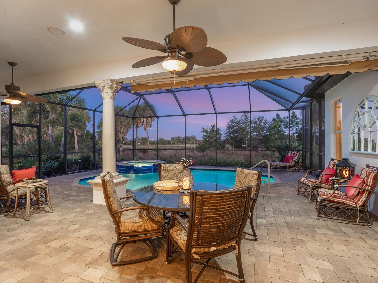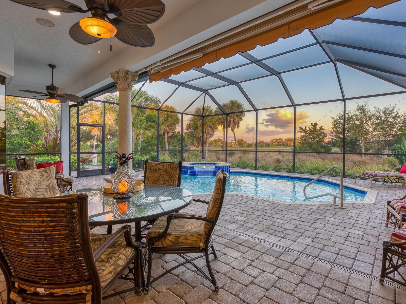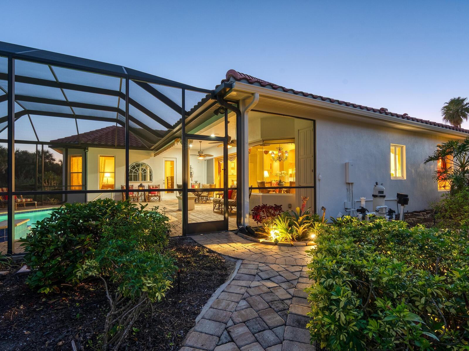 Under contract-accepting backup offers. This custom Arthur Rutenberg Bardmoor II is in pristine condition and maintenance free! The dramatic Tuscan exterior has actual stone appointments. As you enter through the double leaded glass doors, you are greeted by grand archways, tray and waffle ceilings and detailed built-ins. An ideally sized home with great room, formal dining room, three bedrooms and three baths (den or fourth bedroom). The gourmet kitchen with stainless appliances, quartz, custom cabinetry and a pass-thru wet bar open to grand views through aquarium windows in the breakfast nook. The den/library boasts hardwood flooring and detailed moldings. The large primary bedroom has a double tray ceiling, expansive bay window and private entry to the pool. The spacious paver outdoor living area has a Jacuzzi and pool overlooking a private preserve with grand lake views. The oversized garage has a separate door for your golf cart. Feel secure with the new barrel tile roof. The Country Club offers golf, tennis, pickleball, restaurant, bar and many activities, phenomenal dog park and close to the beach! Soon, Boca Royale’s gates will open in Wellen Park for dining, shopping and the ballpark.