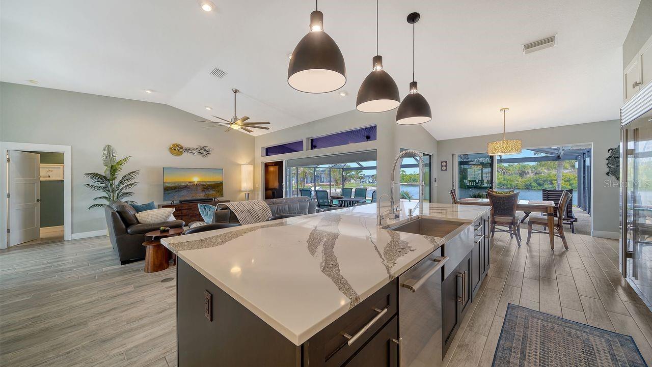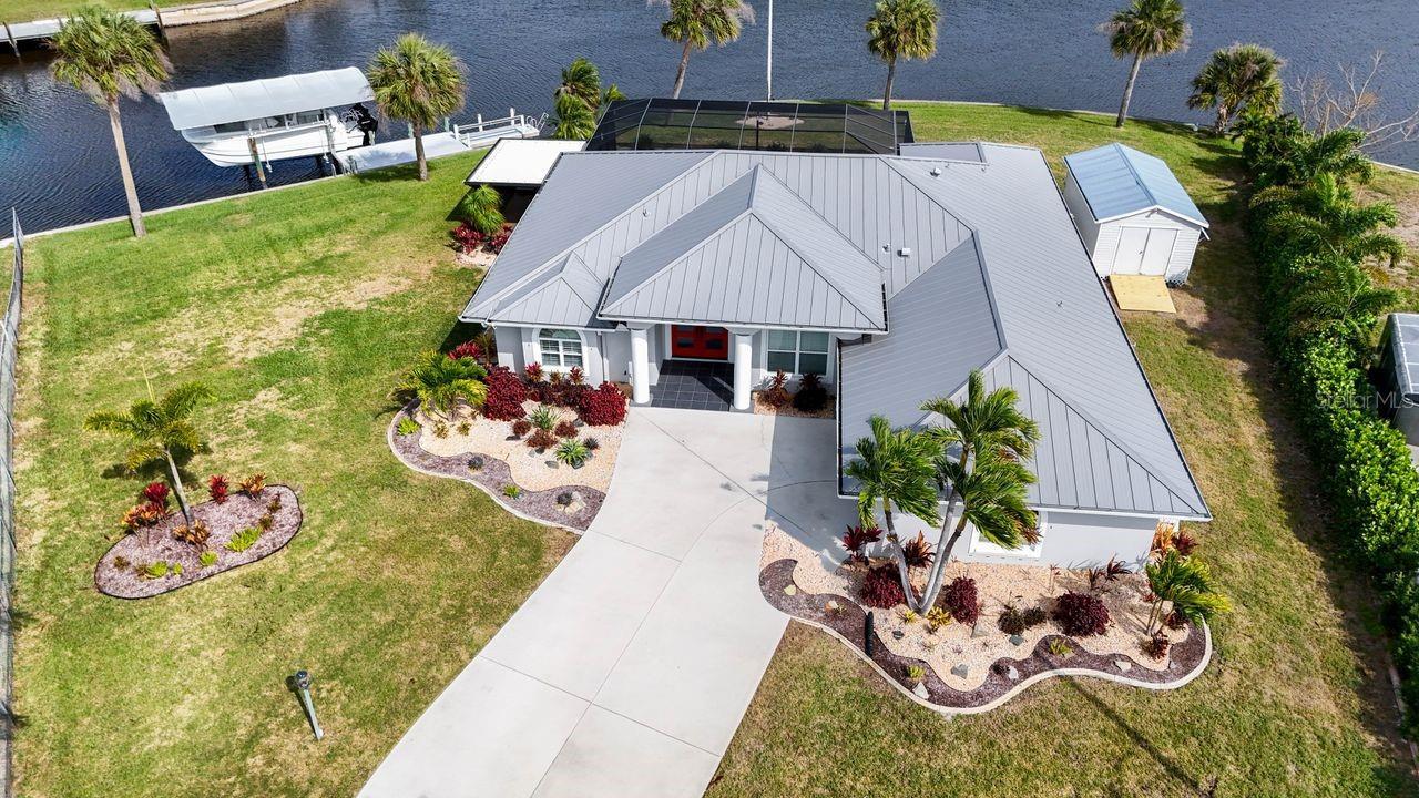 Discover the ultimate in waterfront living with this exquisitely remodeled pool home, perfectly situated on ONE OF THE MOST COVETED TIP LOTS IN THE AREA, OFFERING SAILBOAT WATER! Enjoy unmatched privacy with an expansive 216 FEET OF WATERFRONT and NO NEIGHBORS ACROSS THE CANAL—JUST SERENE, NON-BUILDABLE LAND FOR UNOBSTRUCTED VIEWS AND TRANQUILITY. ALL THIS, JUST 3 MINUTES TO OPEN WATER WITH NO BRIDGES! Wake up to breathtaking sunrises and soak in beautiful water views from nearly every room. FURNITURE IS INCLUDED—MOVE RIGHT IN AND START LIVING THE DREAM! Step inside to a bright, open-concept great room with a split-bedroom floor plan, ideal for entertaining and everyday comfort. The brand-new, state-of-the-art center island kitchen features luxurious quartz counters, custom wood cabinetry, and top-of-the-line appliances—including a Sub-Zero refrigerator, wine cooler, induction range, double convection ovens, and more. Enjoy new porcelain tile plank flooring throughout the main living areas. Remodeled guest suites, one ensuite and the other with a custom Murphy bed. Plantation shutters add elegance to the formal dining room and primary suite, which boasts a huge walk-in closet and a spa-inspired en-suite bath with dual quartz vanities, a designer soaking tub, a large walk-in shower with rainmaker head, and a private water closet. This home is loaded with upgrades: • NEW LANDSCAPING AND RESURFACED POOL DECK/LANAI WITH ELECTRIC ROLL DOWN SHUTTERS • NEW POOL CAGE, VARIABLE SPEED PUMP, AND FILTER • ALUMINUM ROOF, HURRICANE SHUTTERS, AND WATER HEATER (ALL LESS THAN 3 YEARS OLD) • UPGRADED ELECTRIC PANEL AND SUB-PANEL • DOUBLE-PANE WINDOWS WITH SOLAR GLARE PROTECTION • OVERSIZED SIDE-LOAD GARAGE AND DRIVEWAY • 20X10 STORAGE SHED WITH ELECTRIC • SPRINKLER SYSTEM FED BY A 100’ DEEP WELL • 20X13 BOAT DOCK WITH A 10,000 LB. COVERED BOATLIFT THIS IS A RARE OPPORTUNITY TO OWN A TRULY EXCEPTIONAL HOME ON A PRIVATE, PREMIER LOT—SCHEDULE YOUR PRIVATE SHOWING TODAY AND EXPERIENCE THE BEST OF WATERFRONT LIVING! AREA INFO: The Port Charlotte area was VOTED #1 PLACE TO LIVE by CNN and MONEY magazine and featured in the TOP PLACES TO RETIRE in WHERE TO RETIRE magazine. Port Charlotte is located on the Gulf Coast of Southwest Florida, approximately 4 miles southwest of 1-75 off Exit 170, and features EASY ACCESS TO WORLD-CLASS FISHING IN CHARLOTTE HARBOR AND THE GULF OF AMERICA. By sea, Port Charlotte is located on Charlotte Harbor, about 30 minutes by powerboat from Port Boca Grande on the Gulf of America. There are more than 24 public and semi-private golf courses within the greater Port Charlotte/Punta Gorda area, which is conveniently and quietly located approximately 50 miles south of Sarasota, 24 miles north of Fort Myers, 125 miles from Orlando and Disney World, approximately 45 minutes to the Southwest Florida International Airport, and less than 20 minutes to Punta Gorda Airport.