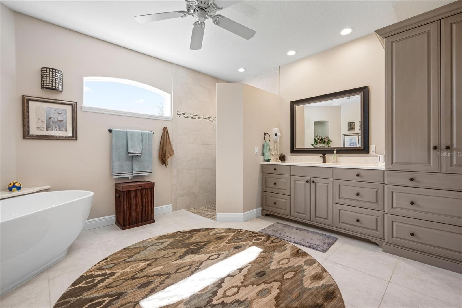 - Ceiling Fans(s), Crown Molding, Dry Bar, Eat-in Kitchen, High Ceilings, Open Floorplan, Primary Bedroom Main Floor, Solid Surface Counters, Solid Wood Cabinets, Split Bedroom, Thermostat, Vaulted Ceiling(s), Walk-In Closet(s), Window Treatments