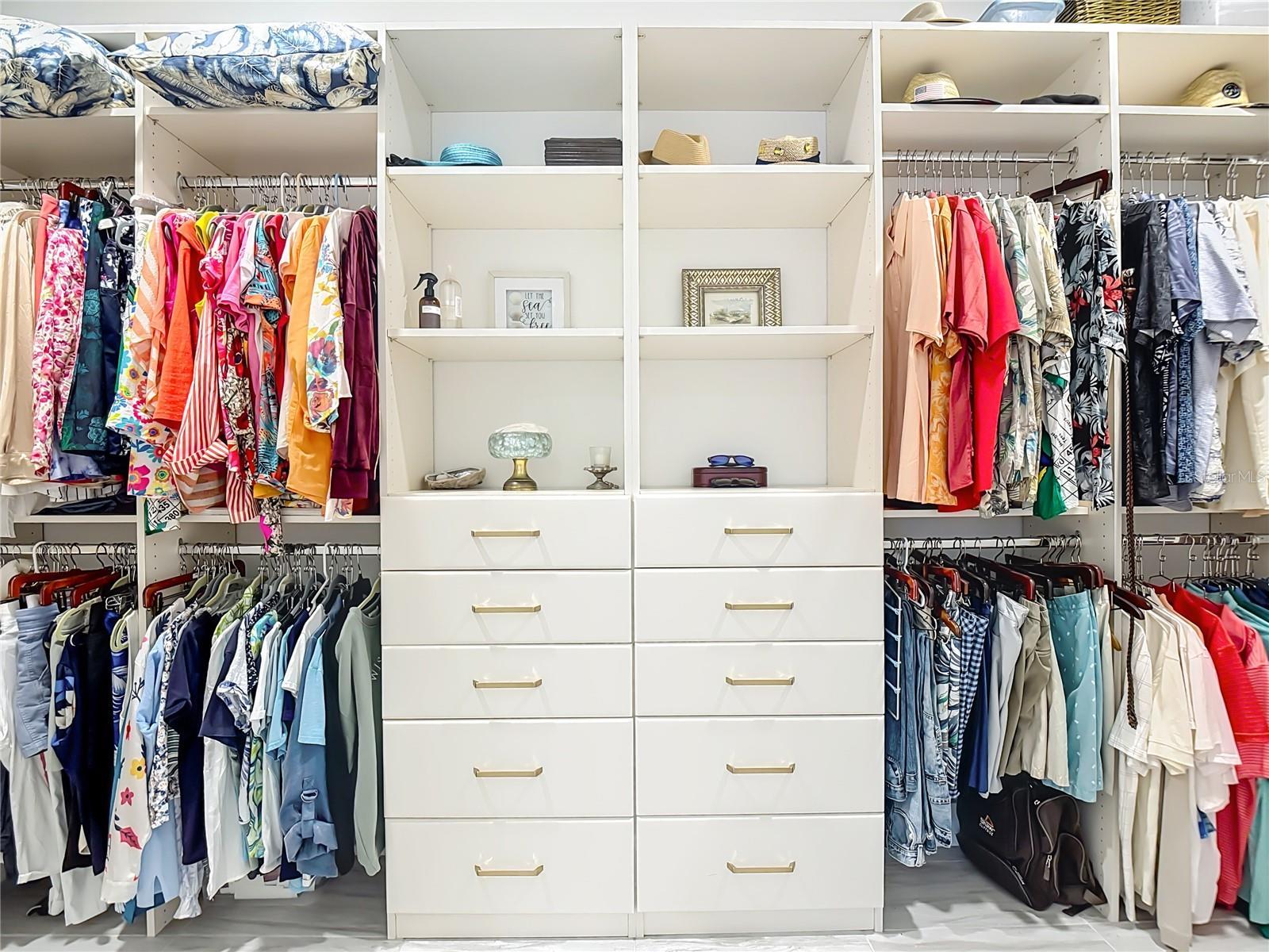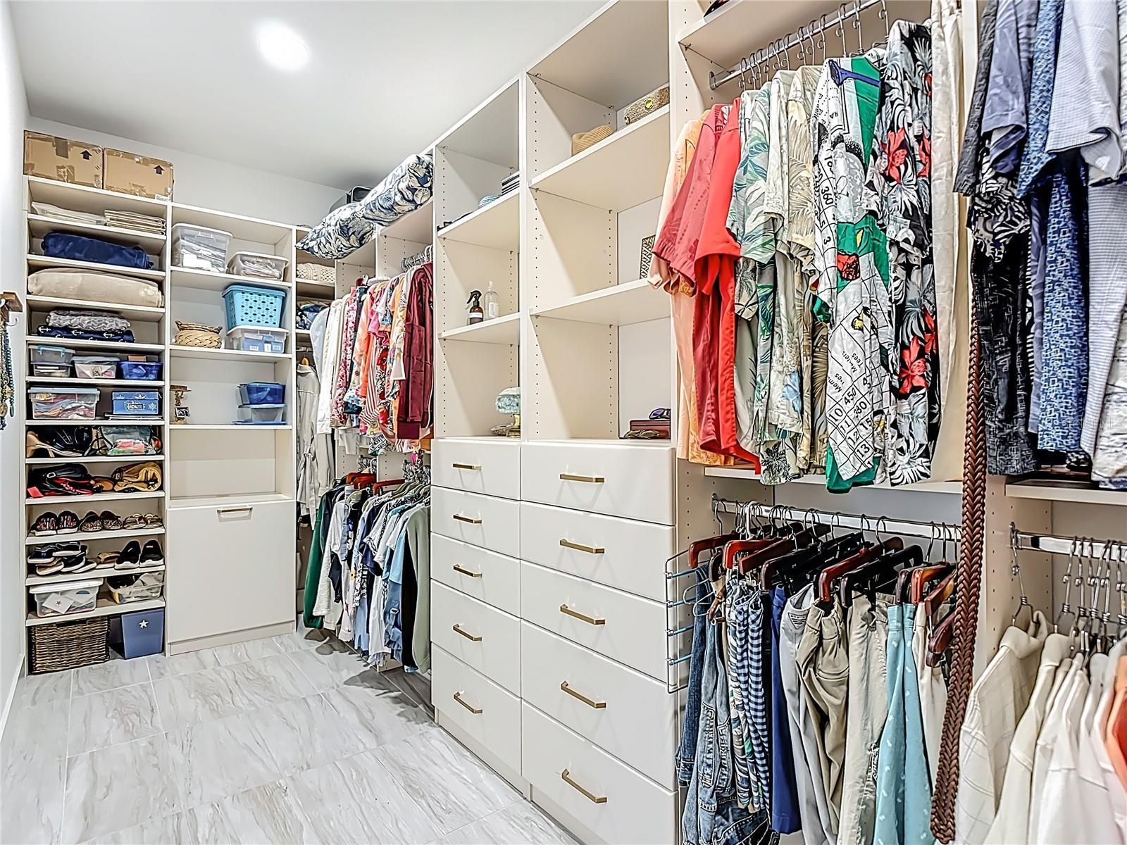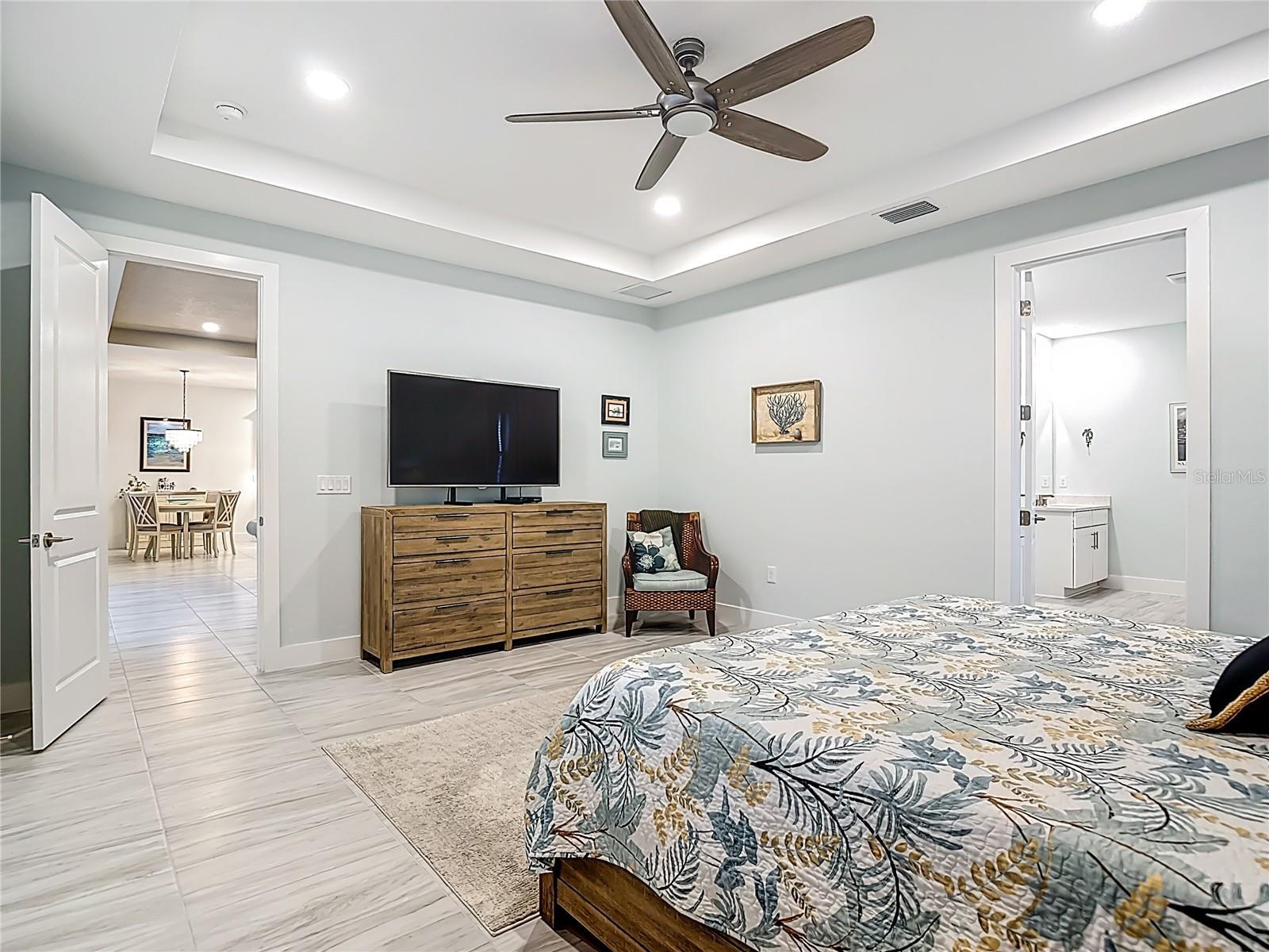 - Ceiling Fans(s), Eat-in Kitchen, High Ceilings, In Wall Pest System, Open Floorplan, Primary Bedroom Main Floor, Stone Counters, Tray Ceiling(s), Walk-In Closet(s), Window Treatments
