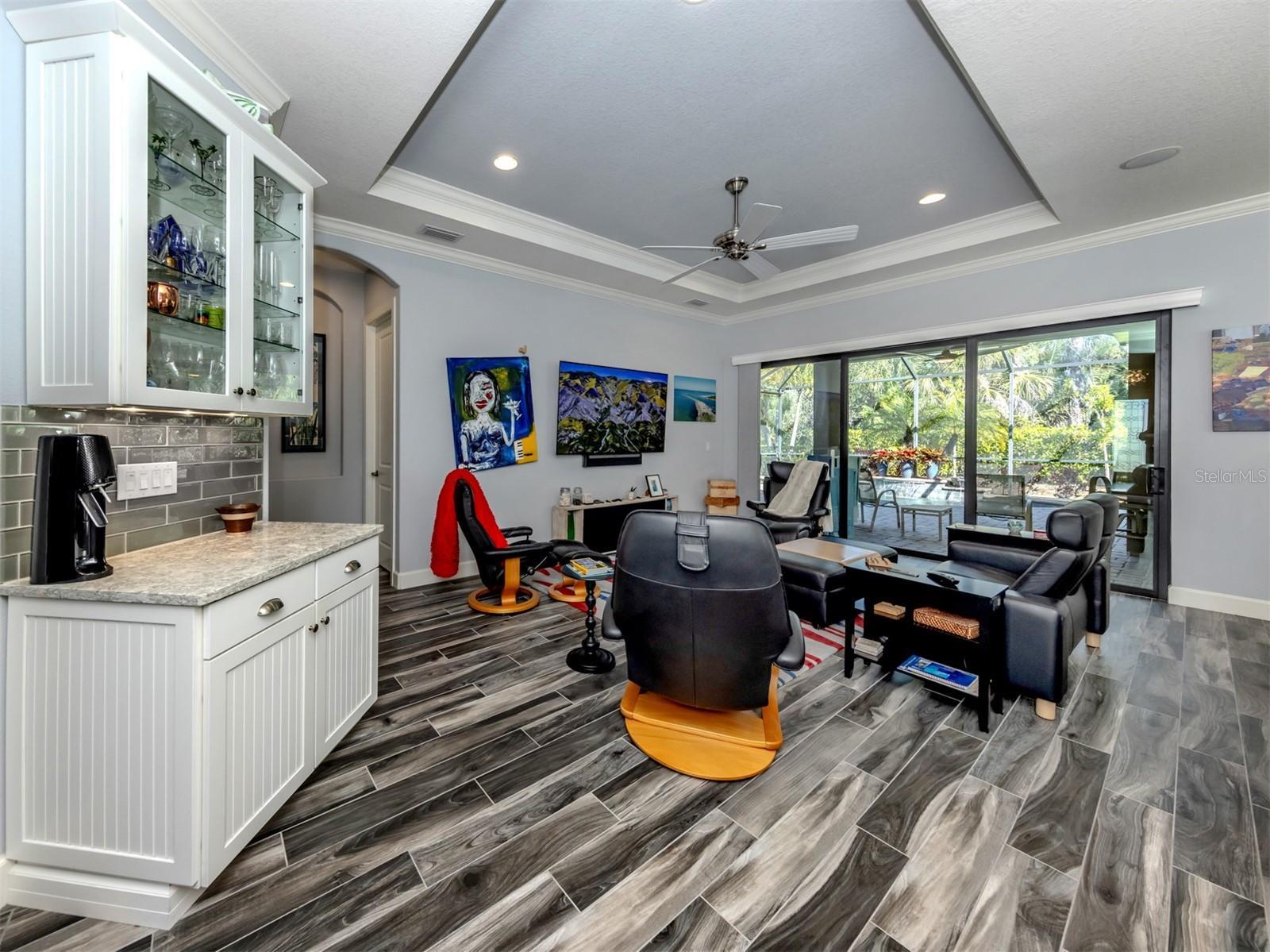 Experience resort-inspired luxury living at its very finest. This is a stunning 3 bedroom, + den/dining room, 3 1/2 bath 3 car garage pool home in the secluded, 68 single family home enclave of Bellacina By Casey Key. Situated between a scenic, bird-inhabited lake and The Legacy Trail, the original owners selected upgrades for every feature of the home: From luxurious ceramic plank tile, to tray ceilings, crown molding, bull nose drywall corners and a unique tile listello that greets you in the foyer. No surface was left untouched. 10 foot ceilings add to the spaciousness. See the detail page showing over $200,000 in upgrades both during and after construction. Resort-style features include plantation shutters, an extended lanai overlooking a nature preserve and the hightop outdoor kitchen with built-in gas grill and wet bar, beverage refrigerator and plenty of covered and open space for Florida living. The electric heat pump keeps the saltwater pool comfortable year-round. Coffee at sunrise overlooking the nature preserve adds to the tropical vibe. The indoor kitchen includes the builder upgraded Gourmet Kitchen with stainless gas range/griddle, in-wall oven and convection microwave with a pass through door to the separate dining room. The dining room also makes the perfect home office or den. Enjoy a morning cup at the custom, high top breakfast bar in the kitchen. A reverse osmosis tap serves filtered water for cooking and drinking. The owner’s suite features a walk in shower with overhead rain feature, dual vanities, a private water closet and walk in his and hers closet with aftermarket organizers. The front guest room has a king size Murphy bed, making it useful for special projects, hobbies or a private study. Both guest rooms feature private baths. Enjoy home theater sound, too, with the Sonos sound system in the great room and lanai. Other built-in upgrades include 8’ solid core and pocket doors, tall kitchen cabinets with under cabinet lighting, under island cabinetry, a central vacuum system, impact windows and sliding doors throughout. Supplemental front entry door shutters add additional security and safety. Don’t worry about power interruptions, either. This home has a gas tap ready for your portable generator, complete with panel feed in the new, upgraded Square D electrical panel. Plenty of storage with the overhead ceiling shelves and the tandem 3rd car garage leaves room for a workshop, extra refrigerator and more. The modular wall installations store tools, beach chairs and your Florida toys. Bellacina By Casey Key is a private, gated maintenance-free Taylor Morrison Esplanade community, rich with amenities, social activities and friendly neighbors. The Amenity Center features ample space for events, a heated, resort pool with chairs and cabanas, a spa, fitness center, pickleball and bocce courts, a fire pit, outdoor and indoor kitchens and a full time social director. Two dog parks give your furry friends room to run. Bellacina has its own gated entrance to the Legacy Trail, providing over 20 miles of cycling from Venice to Sarasota and more. The perfect location: minutes to I-75 and Gulf beaches and moments to restaurants and shopping. Furnishings negotiable. NO CDD!
