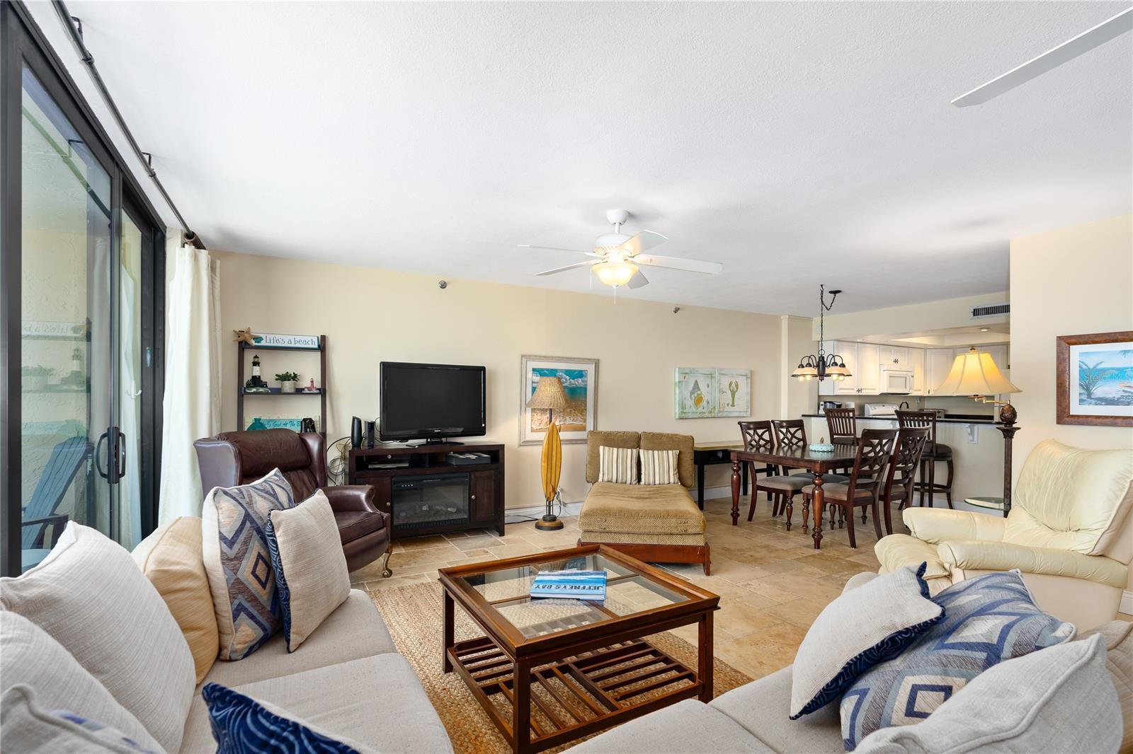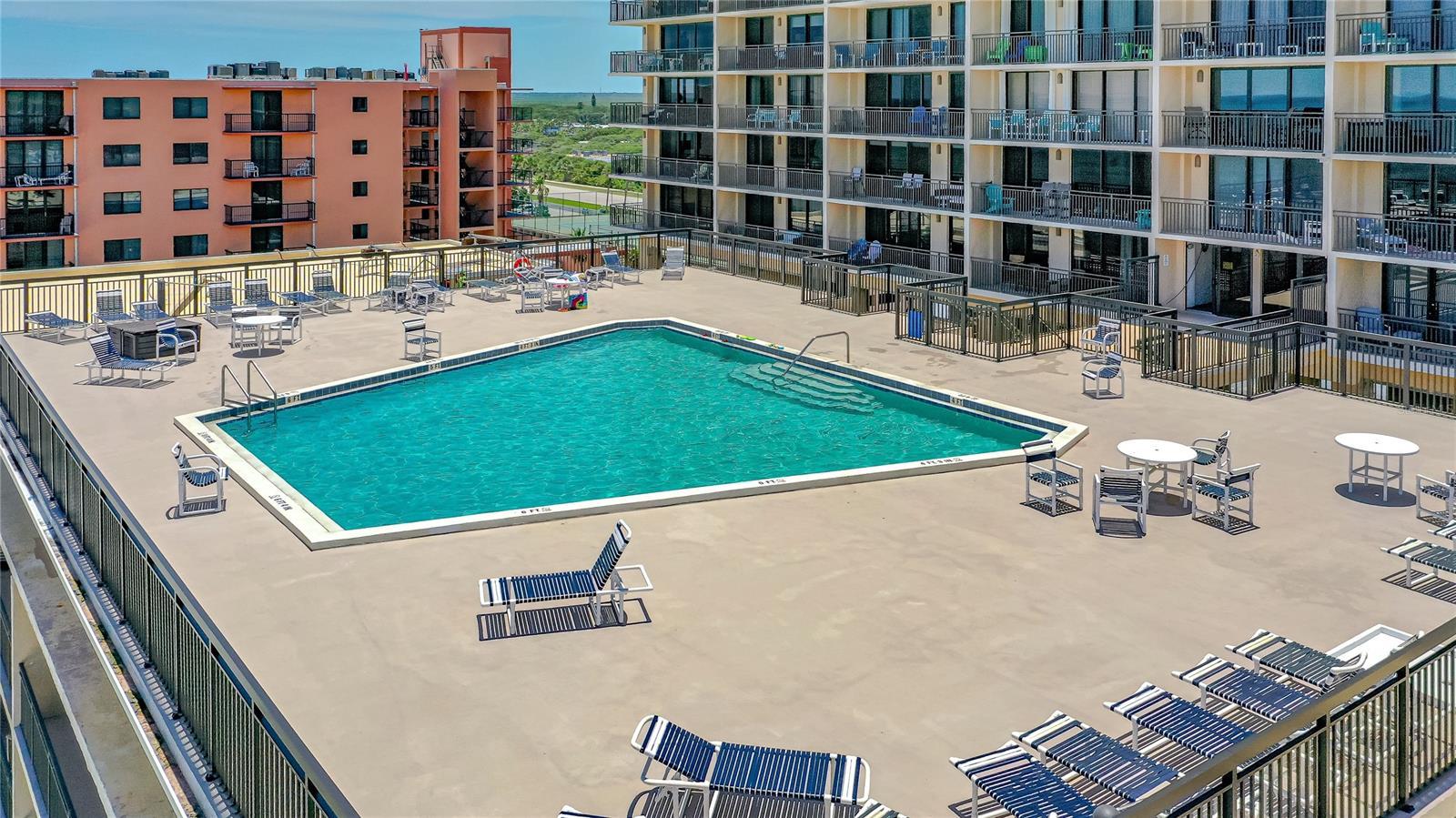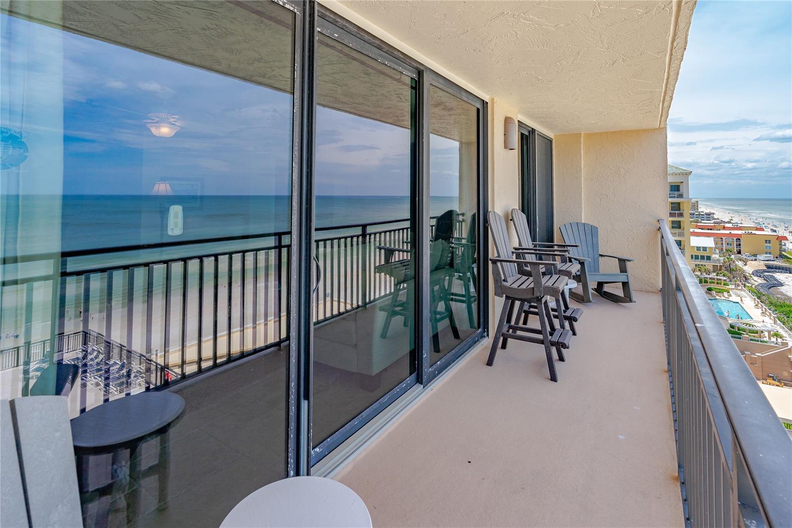 The newly renovated direct Oceanfront Condo has floor-to-ceiling sliding glass doors and a private balcony, which offers breathtaking ocean views!!! Imagine yourself relaxing on the non-drive beach watching the ocean unfurl while the breeze nourishes your soul. Your mind is at ease, just nature at its best. As you walk-in, the non-slip stone flooring ($20K) gives you a sense of openness. The décor is nautical with creative touches. All furnishings are left for the convenience of the Buyer making it turnkey. There is a wraparound couch, lounge, two recliners and a dining room that seats six and two bar stools. There is a murphy bed in the living room for additional sleeping. The kitchen has new cabinets, appliances, granite counter tops and a vaulted kitchen ceiling. The double glass door opens into the master bedroom, which has a king size bed and oversized doorways. There is a walk-in shower and plenty of closet space. The two guest bedrooms have twin beds with views of the Intracoastal waterway. The guest bath offers a tub/shower combination. Let us not forget the inside full-size washer and dryer. The condo has a strong rental history with the potential to make $40k plus. The complex is known for resort like accommodations and is gated to include a rooftop heated pool with plenty of seating and amazing area to watch the shuttle launches, open garage parking with luggage carts, fitness room, shuffleboard courts, tennis and pickle ball court, social room with a kitchen and bicycle and storage area. Come and live the dream on our 13-mile stretch of sandy beaches. We are more than just a beach town. Discover for yourself why so many love New Smyrna Beach.