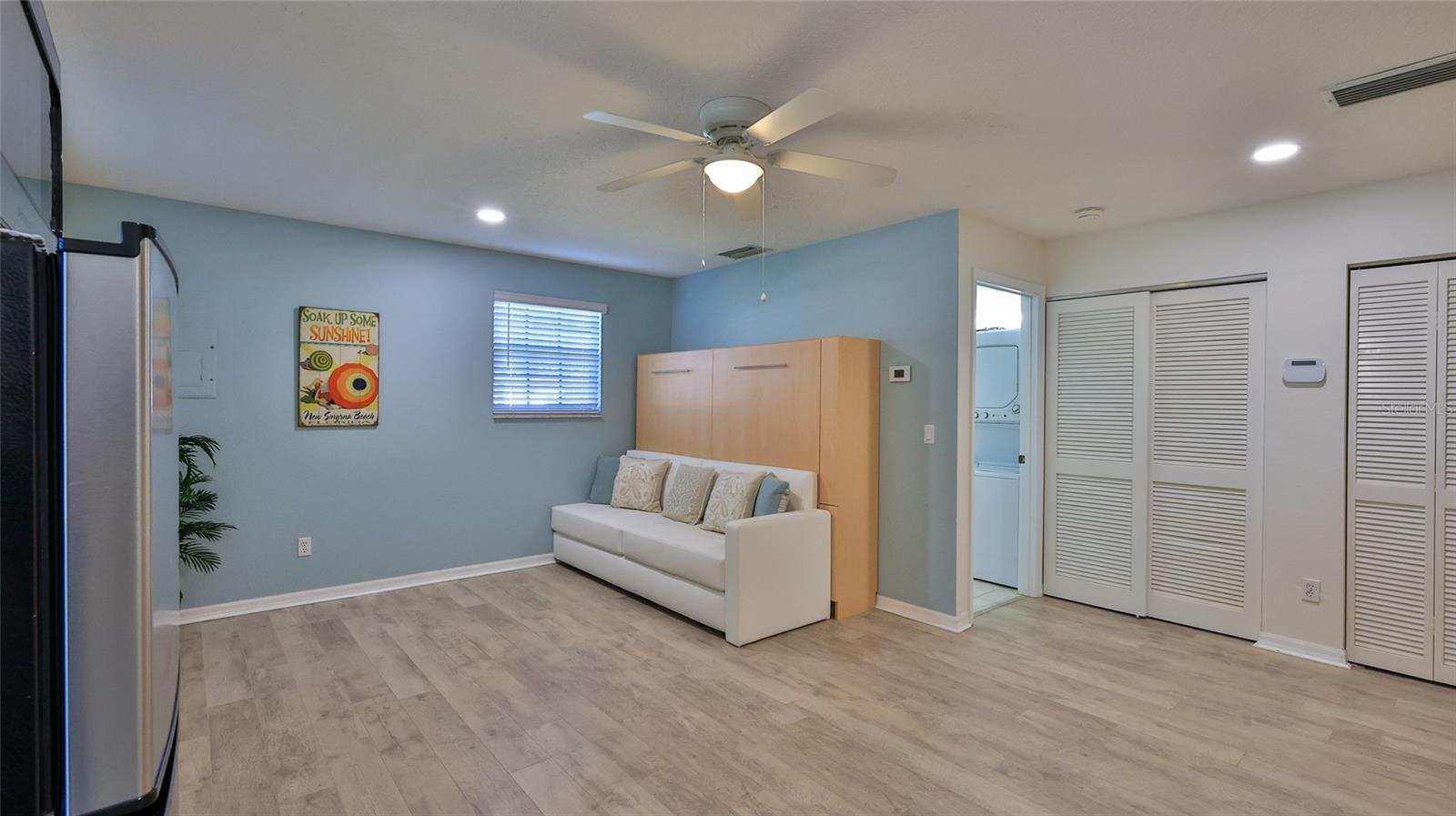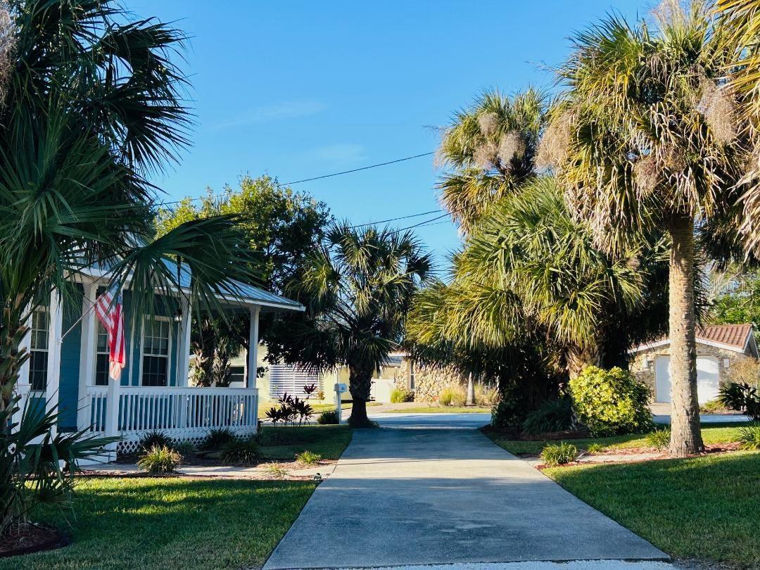 PRICE ENHANCEMENT and ASSUMABLE 3.25 MORTGAGE. Charming Coastal Key-West-Style Retreat with unique layout of a Lovely 3 Bedroom/2 Bath Home and a separate Guest House with Kitchenette, Full Bath, Murphy bed and Stackable W/D... Ideal for an office, art studio or In-law or guest quarters. Both homes were newly renovated in 2020/21. The main house is thoughtfully designed with an open concept living and split bedroom plan with delightful accents throughout. An abundance of windows capture the natural light bringing in the Florida sunshine. Spacious indoor laundry room. Perfect entertaining space with expansive front porches, a 15' x 10' deck, pergola and open spaces set in tropical landscaping. Enjoy peace of mind with new metal roofs on all buildings in 2023, block construction, a Generic full house generator, tankless water heater, hurricane shutters and sprinkler system. Ample parking with a driveway at the 2 car garage and an additional paved driveway servicing both houses. This Retreat creates a Lifestyle in Paradise! An easy stroll to the drive-free seashore of New Smyrna Beach. Many amenities nearby ... Historic Flagler and Canal Streets of restaurants and shops ... Canaveral National Seashore, marinas, boat ramps and watersports, parks, trails and golf courses. All information is deemed to be accurate. Buyers and their agents should verify information important to them. Welcome to Serenity in Your New Home!