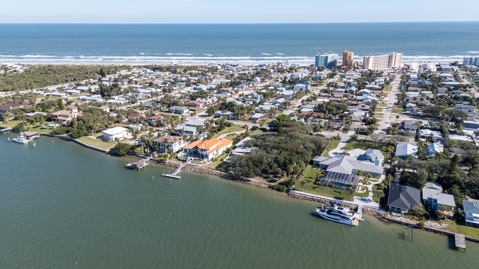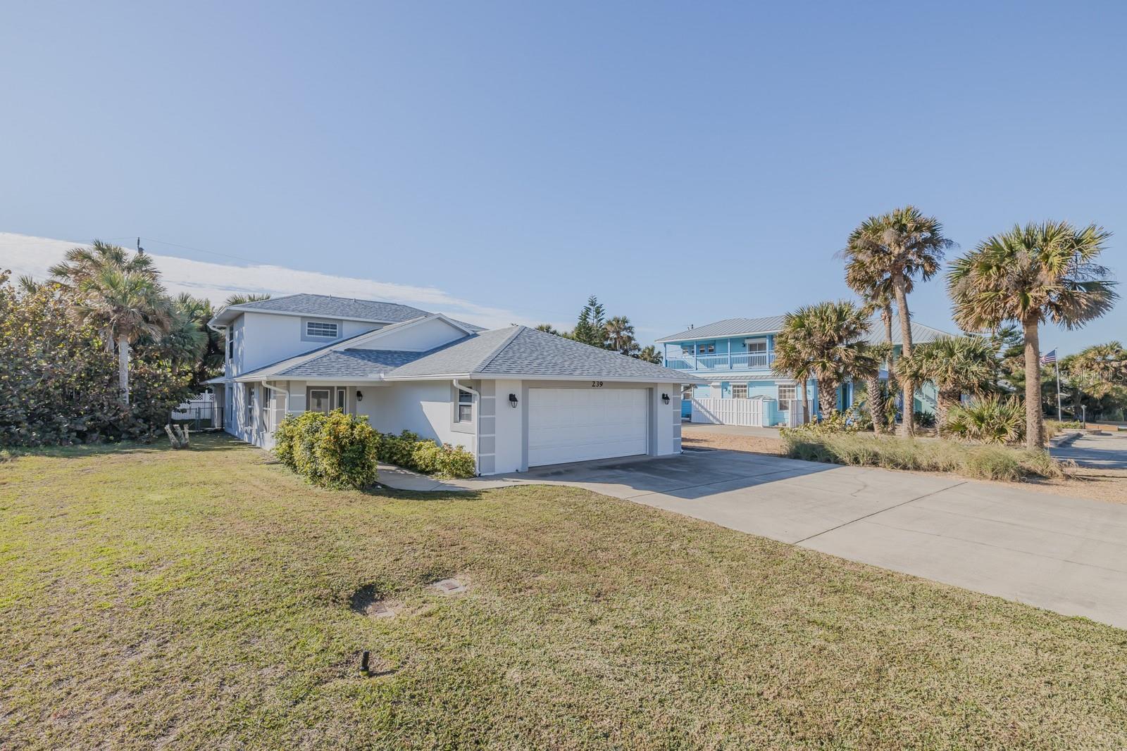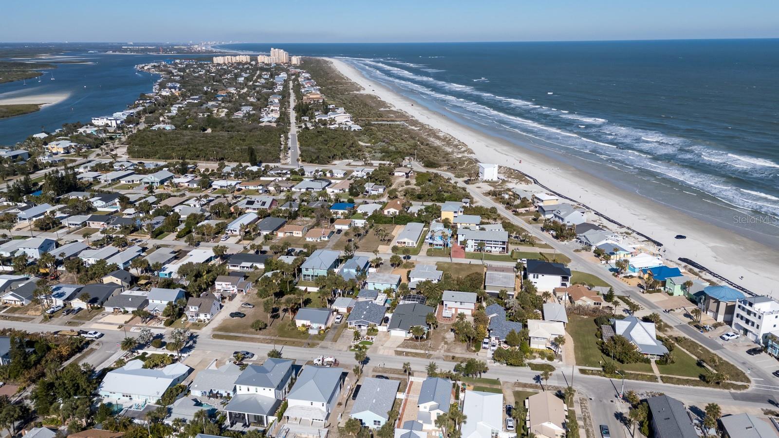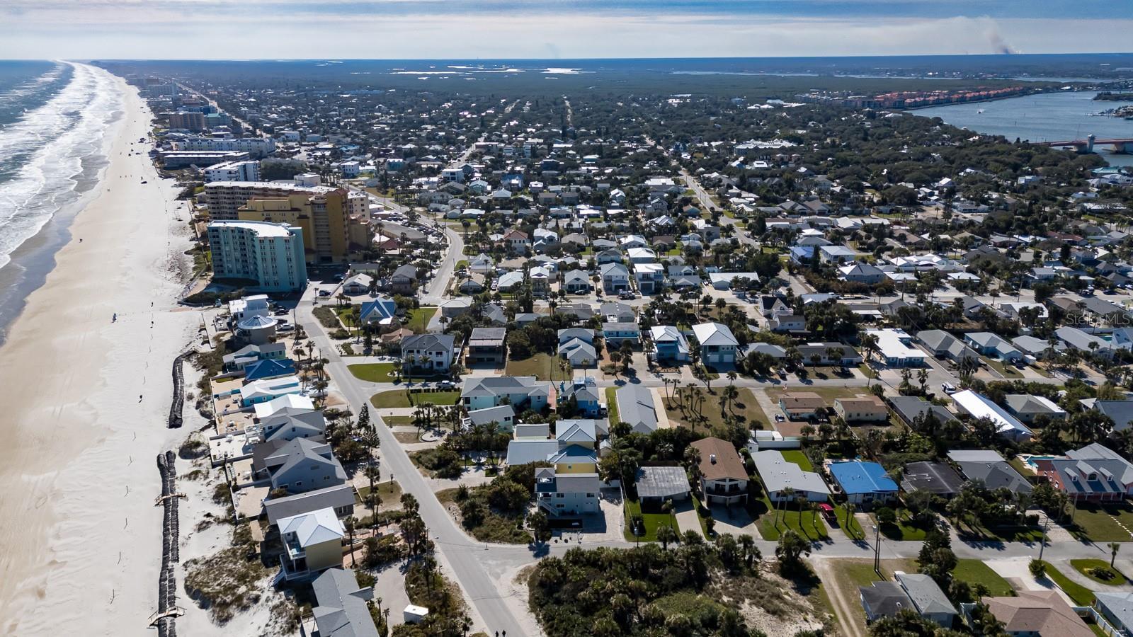 Location, location, location! Perfectly located just 5 houses from the beach & only 8 blocks to vibrant Flagler Avenue shops & restaurants. Drive your golf cart, ride your bike or walk to the beach access only 1 block away! Discover coastal living at its finest in this immaculate 3BR/2.5BA, 2 CAR GAR home ,Beautifully maintained modern home has an open floorplan with high vaulted ceilings & an inviting atmosphere for entertaining or relaxing. Built in 1998, one of the bedrooms & spacious baths is downstairs & is large enough to be a master bedroom. It features wood floors & a gorgeous bath with tiled shower & two vanities. This bedroom has a door to the expansive rear porch which has a classy wood ceiling & beautiful tiled floors! Private outdoor shower & fenced back yard add to the desirability of this fabulous home. Upstairs you'll find the master bedroom, a luxurious tiled bath and another spacious bedroom. Upgrades include newer roof & water heater in 2021, newer A/C units & both drywood & subterranean termite bonds. Current tenant has been there for 2 years and is month to month. The first floor is concrete block, the 2nd floor is wood frame & both have stucco exterior. Whether you're seeking a permanent residence or a vacation retreat, this home combines elegance, comfort & an unbeatable location!