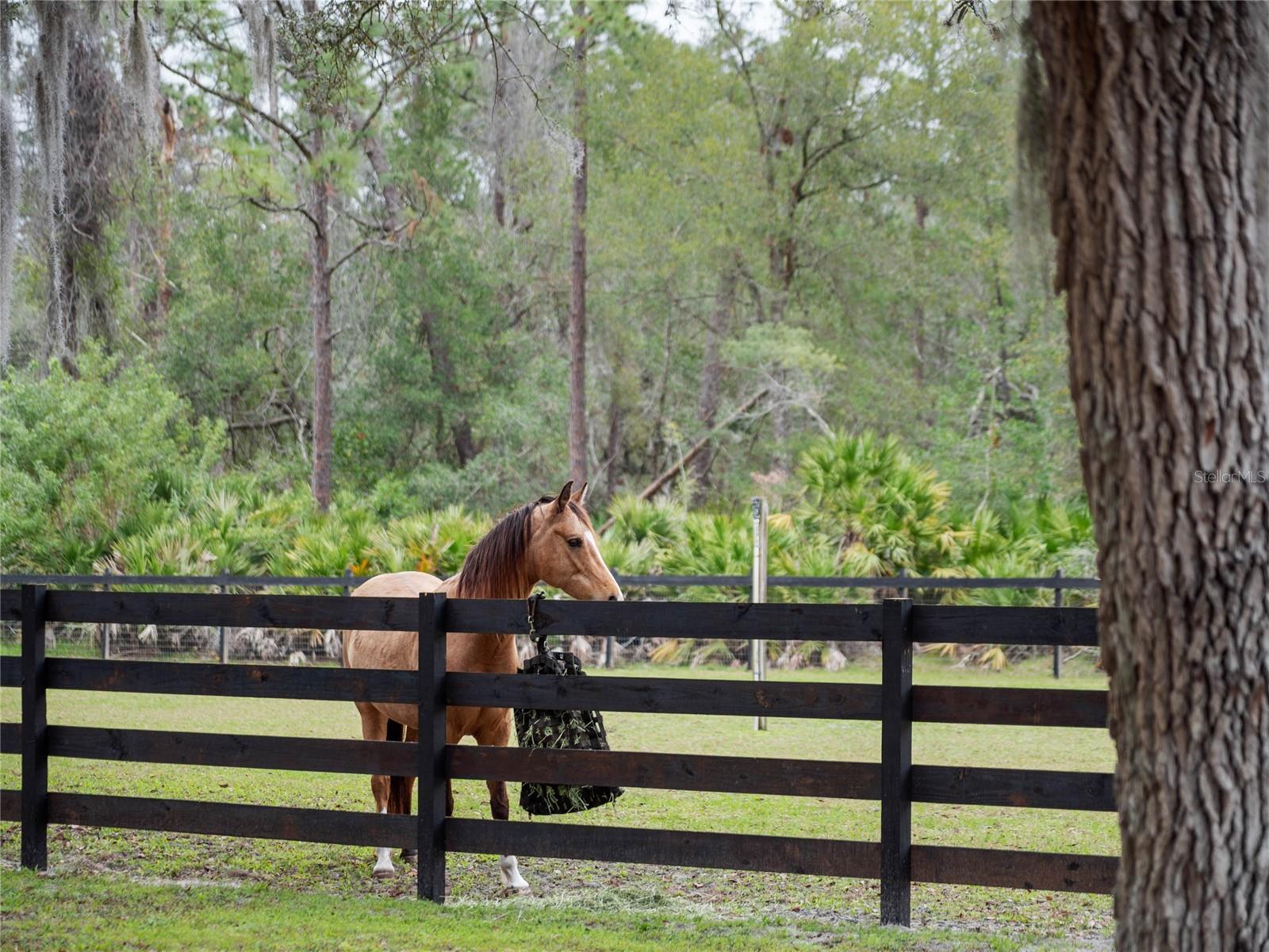Wake up to quiet mornings under centuries-old live oaks, spend your afternoons by a private resort-style pool, and finish the day watching your horses graze as the sun sets. This exceptional 5-acre horse property offers that rare blend of peaceful country living with the convenience of town and beach life just minutes away. Privately tucked beside a 100-acres of unspoiled Florida flora and fauna owned by the Nature Conservancy, this beautifully maintained 3-bedroom, 2-bath pool home is surrounded by nature yet located just a mile from shopping, dining, and medical care. And when you’re craving the ocean breeze, the sandy shores of Daytona's Beaches are only a few short miles away. Inside, the home feels warm, open, and inviting with vaulted ceilings, wood-beam details, and an easy-flowing layout perfect for everyday comfort or hosting friends and family. The living and dining space centers around a cozy electric fireplace, while the custom kitchen is both stunning and functional, featuring rich cherry cabinets, granite countertops, double ovens, and a large island where everyone naturally gathers. The primary suite is a true retreat with a double-sided glass fireplace, soaking air tub, oversized walk-in shower, and spacious closet—your own personal escape at the end of the day. Two guest bedrooms share a Jack-and-Jill bath, offering privacy and space for family or visitors. Step outside and enjoy your own private oasis with a heated saltwater pool and spa, dual-jet Badu swim system, fire pit, and expansive paver deck—ideal for entertaining or relaxing under the Florida sun. For horse lovers, this property is simply unmatched. Enter through the gated drive to find a fully equipped 7-stall center-aisle barn with 12x12 stalls, removable foaling walls, individual fans, hurricane panels, and a climate-controlled tack and feed room. The property is fully fenced and cross-fenced, offering a riding arena, multiple run-in sheds with electric, and excellent pasture space. A deep well and commercial-grade irrigation system make maintaining the grounds effortless. Need space for your toys, hobbies, or guests? The massive RV barn offers three bays with 14’ clearance, 220V service, a workshop with A/C, and multiple RV hookups—perfect for hosting friends and family during Daytona’s many events. This is more than a home—it’s a lifestyle. A place where horses roam, friends gather, and every day feels like a getaway. Lovingly owned by one family for nearly four decades, homes like this simply don’t come available often. Schedule your private showing and come experience it for yourself.