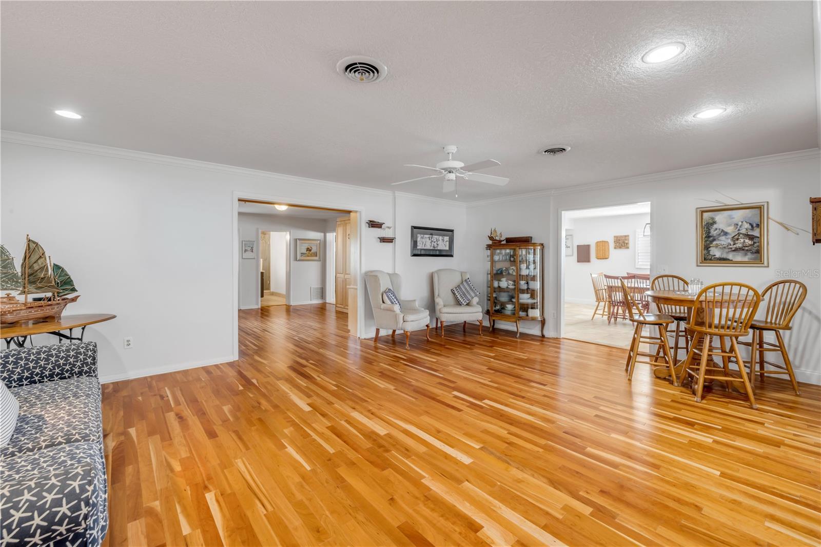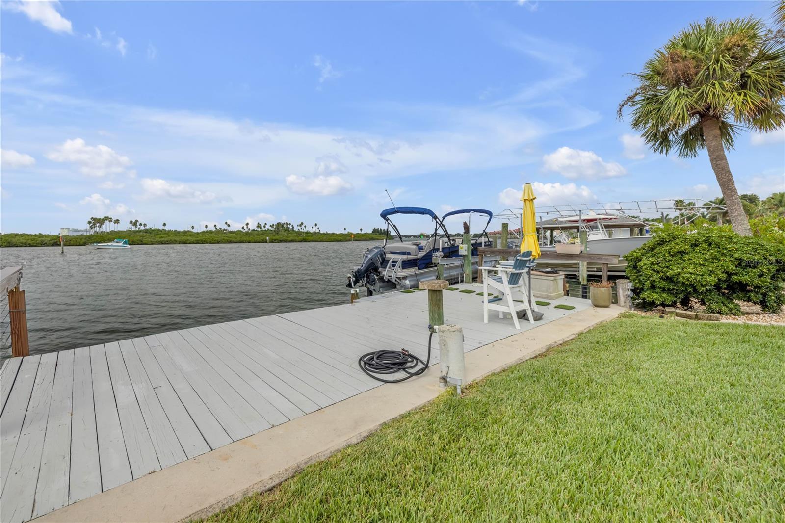Coastal living with 76’ of Deep Water frontage directly on the Intracoastal waterway. Plus your private 10’ wide boat launch,13,000 LB boat lift, large swimming pool and spa. You cannot find a better location than this! Centrally located in beautiful New Smyrna Beach on a quiet cul-de-sac just moments away from the sandy beach, famous Flagler Avenue and historic Canal Street. A home with a panoramic view and amazing sunsets. Walk into a home with exquisite hardwood cherry flooring installed in 2015, the large foyer has custom wood book-shelves and a Murphy bed. This spectacular home is perfect for the entire family! Not only does this home have everything for the boating enthusiast it also has plenty of room for entertaining friends and family. The home is currently set up to sleep up to 11 people comfortably. The delightful designer kitchen with tray ceiling, countertop seating, quartz countertops, wood cabinetry, and top of the line stainless steel appliances completed in 2015. The kitchen opens up to the dining area overlooking the large screened outdoor kitchen, pool and spa area with plenty of seating overlooking the Intracoastal waterway. The beautifully landscaped garden is complete with an Olive tree, two Mulberry bushes and pineapple plants. The primary bedroom has a private en-suite bath and an adjacent room that can be used as a dressing room, office or craft room with closets, the guest bedroom also has a private en-suite bathroom. The bunk bed/kid room with a closet and laundry facilities is located just off the kitchen. The Riverview third bedroom/office is located to the east of the main living room with views of the intracoastal waterway. The room has a garage door and motorized screen to enjoy the river breezes. This home is on a very large lot that can accommodate parking for up to 8 to 10 vehicles plus an oversized 2 car garage. Renovations adding the master bedroom and 2 car garage that was completed between 1995 and 1999. New Roof 2022, 2 A/C units new 2022 and 2023, updated reinforced seawall 2023, propane heated Spa (spa heater 2 years old), plus new tankless water heater 2025. Location Location, Location walk, bike or short drive to the soft sandy beach, 1 mile to the famous Flagler Avenue with shopping, restaurants, bars and nightlife or 1 mile west to Canal Street with more shops, restaurants and bars. This home is a must see to truly experience the beauty, functionality and the perfect location here in New Smyrna Beach.