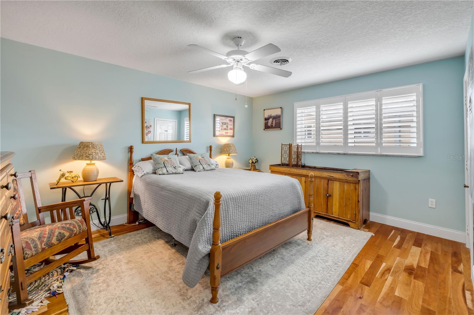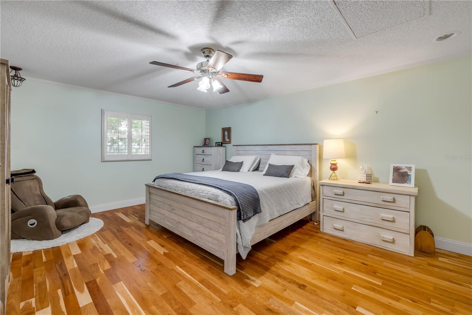 - Ceiling Fans(s), Coffered Ceiling(s), Crown Molding, Primary Bedroom Main Floor, Solid Wood Cabinets, Stone Counters, Thermostat, Tray Ceiling(s), Window Treatments