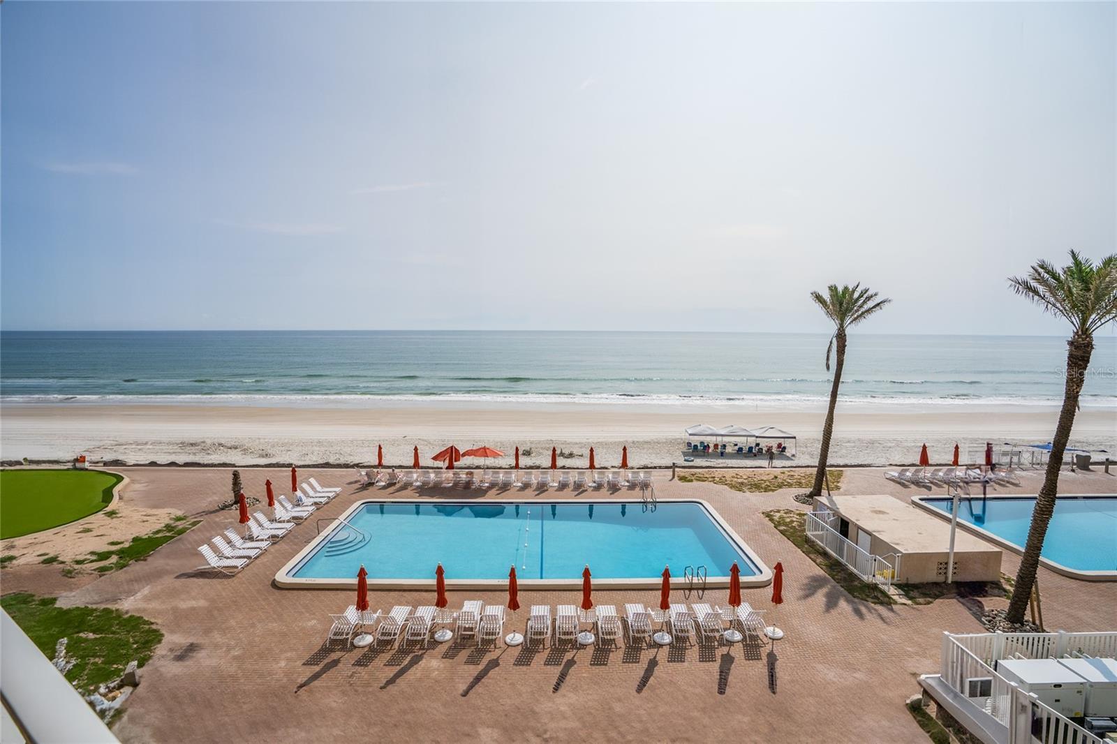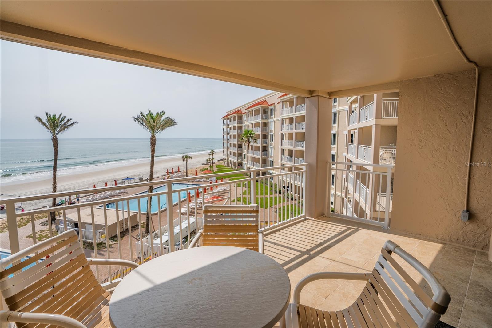 Welcome to your dream seaside escape—an impeccably updated and fully furnished 2-bedroom, 2-bathroom condo located on the 4th floor of the sought-after Sandpiper oceanfront community. Offering unobstructed, panoramic views of the Atlantic Ocean, this beautifully appointed residence blends effortless coastal charm with modern comfort and luxurious amenities. Step inside and be greeted by an open, light-filled floor plan adorned with tile flooring throughout, setting a bright and breezy tone that perfectly complements the oceanfront setting. The spacious living and dining areas flow seamlessly, creating an inviting space ideal for entertaining or unwinding after a sun-soaked day on the beach. The well-equipped kitchen is both stylish and functional, featuring ample cabinetry, generous storage, and sleek finishes—perfect for preparing anything from gourmet meals to casual beachside bites. Wake up to the sound of waves in the expansive primary suite, where floor-to-ceiling windows frame breathtaking ocean vistas. This serene space offers abundant closet storage and an en-suite bath complete with an upgraded walk-in tiled shower for a spa-like experience. The second bedroom is equally generous in size, conveniently located near a full guest bath, making it ideal for visitors or family. Step through sliding glass doors to your private oceanfront balcony, the perfect perch for savoring morning coffee, sunset cocktails, or simply soaking in the serene views of the beach and pool below. Sandpiper’s exclusive amenities include two resort-style pools, a tennis court, and a putting green, all set just steps from the no-drive beach. Whether you're swimming, playing, or relaxing by the shore, this community offers the ultimate in beachfront living. With short term rentals being allowed, this property presents exceptional investment potential—ideal as a lucrative vacation rental or a turn-key second home. The Sandpiper complex is finishing up a big complex refresh with new paint and new landscaping to be complete by Spring 2026. Just bring your suitcase and start enjoying the best of coastal living. Don’t miss your chance to own a piece of paradise. Schedule your private showing today and experience oceanfront living at its finest.