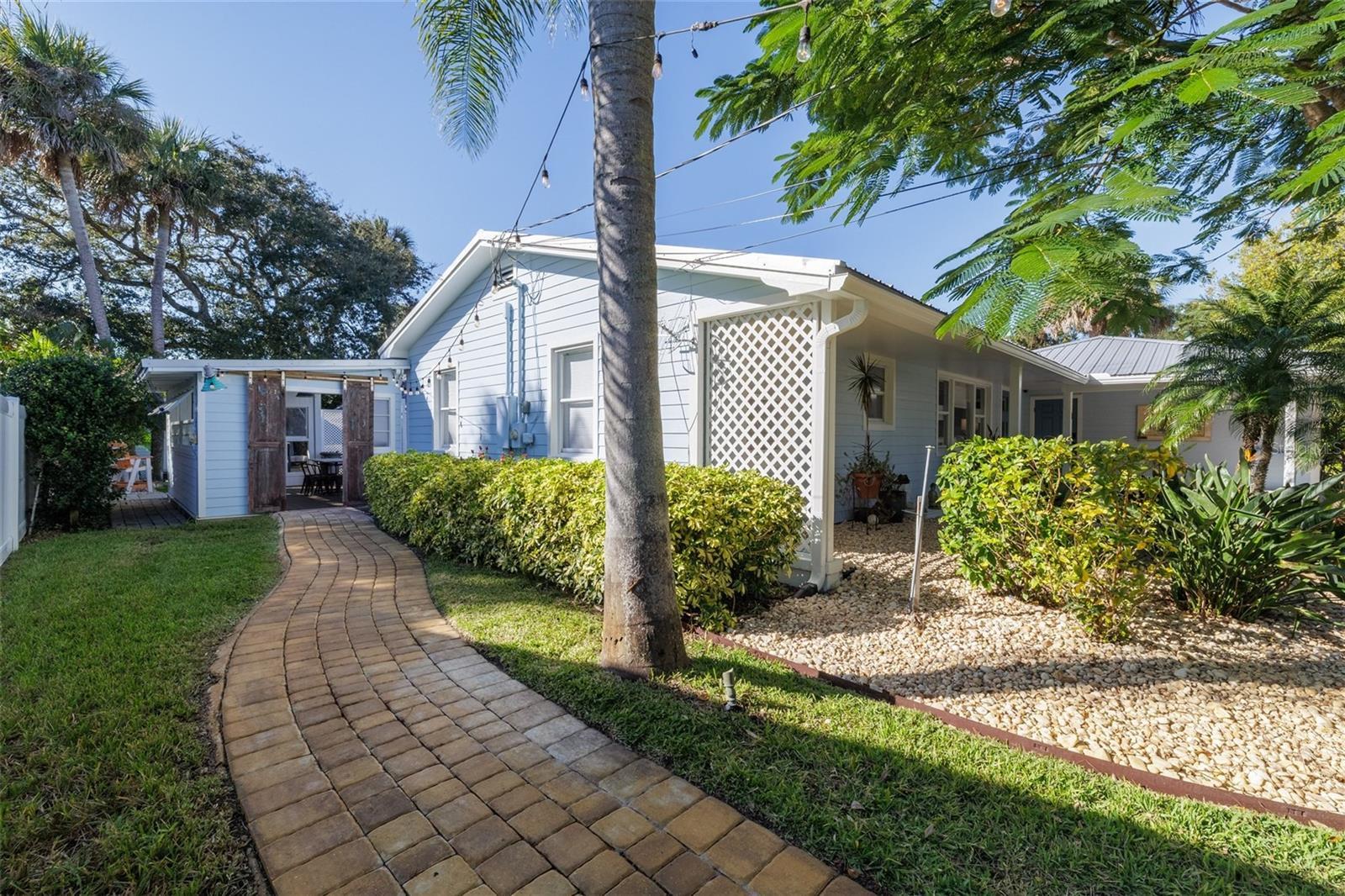 One compound. TWO homes (ADU) Be prepared to be WOW-ed. Discover one of the most rare and sought-after compounds in New Smyrna Beach, located in the idyllic hamlet of Central Beachside. An exceptional property spread across an impossible to find 100’ x 150’ lot featuring TWO SEPARATE HOMES, (partially furnished and a lithium battery golf cart) salt water pool and hot tub, putt putt golf, she shed or artist workshop, a one of a kind summer kitchen, lush tropical landscaping, and space for everyone and everything, including boats, RVs, golf carts, and guests! CHECK OUT THE LIST OF ITEMS INCLUDED IN YOUR NEW HOME AT THE BOTTOM SEE BELOW Welcome to the best kept secret in New Smyrna Beach. A quiet, no through traffic street in the heart of Central Beach where privacy and coastal charm blend perfectly. Craftsman home built in 1953 and lovingly cared for ever since, this home has been thoughtfully updated with the quality and attention to detail of a new build, all while maintaining its timeless character and charm. Inside, the beauty is in the details: recently refinished Florida Heart Pine and Tiger Eye Maple floors. The chef’s kitchen features custom wood cabinetry, granite countertops and hand-blown glass pendants by artist Amber Marshall of Pennland, NC, paired with a brand new 36” Sub-Zero refrigerator and Wolf 6 burner gas range (installed Sept 2025). Additional features include new light fixtures, Kohler faucets and toilets, doors, hinges, knobs, hardware, fans throughout, and high end interior and exterior paint that showcases craftsmanship at every turn. The upgrades continue with new Kohler plumbing and toilets, new vanities, shiplap accent walls, and modern Dacor electrical plugs, switches, and plates(Oct 2025). The metal roof, Hardie board siding, and epoxy coated garage floor with high quality storage systems and hanging racks ensure durability and function. A new garage door opener (Sept 2025), Eufy security system, and electronic exterior door locks offer peace of mind. Even the primary bedroom A/C was replaced in Oct 2025 for maximum comfort. The separate guest house offers a full kitchen, living room, walk-in closet, laundry, and a covered porch overlooking the saltwater pool and gas heated spa. Outdoors, enjoy a vintage inspired summer kitchen with a 1930s Roper gas range, custom putt putt course, and lush, freshly landscaped grounds with a blooming Royal Poinciana tree, and space for your orchid or vegetable garden. Perched high atop a natural dune system with no history of flooding, even during major storms, this home offers a sense of security and seclusion, just blocks from the ocean, Intracoastal, Flagler Avenue, and the local Publix shopping center. Surrounded by vinyl privacy fencing, the property feels like your own private resort. With ample parking, RV/boat storage, and a 10x16 air-conditioned shed (freshly painted in and out and new flooring). This home offers both charm and practicality, a one-of-a-kind compound, never cookie cutter, and designed to bring people together. This is not just a home, it’s a private coastal sanctuary, ready to welcome family, friends, and fun under the New Smyrna Beach sun. INCLUDED IN THE SALE OF PROPERTY: LITHIUM GOLF CART, LIVING ROOM: FOUR SEASONS SECTIONAL WITH BRAND NEW COMPLETE SET OF SLIPCOVERS, RUG, MIRROR, CONSOLE 85" TV MASTER BEDROOM..ASK FOR A FULL LIST OF INVENTORY TO CONVEY