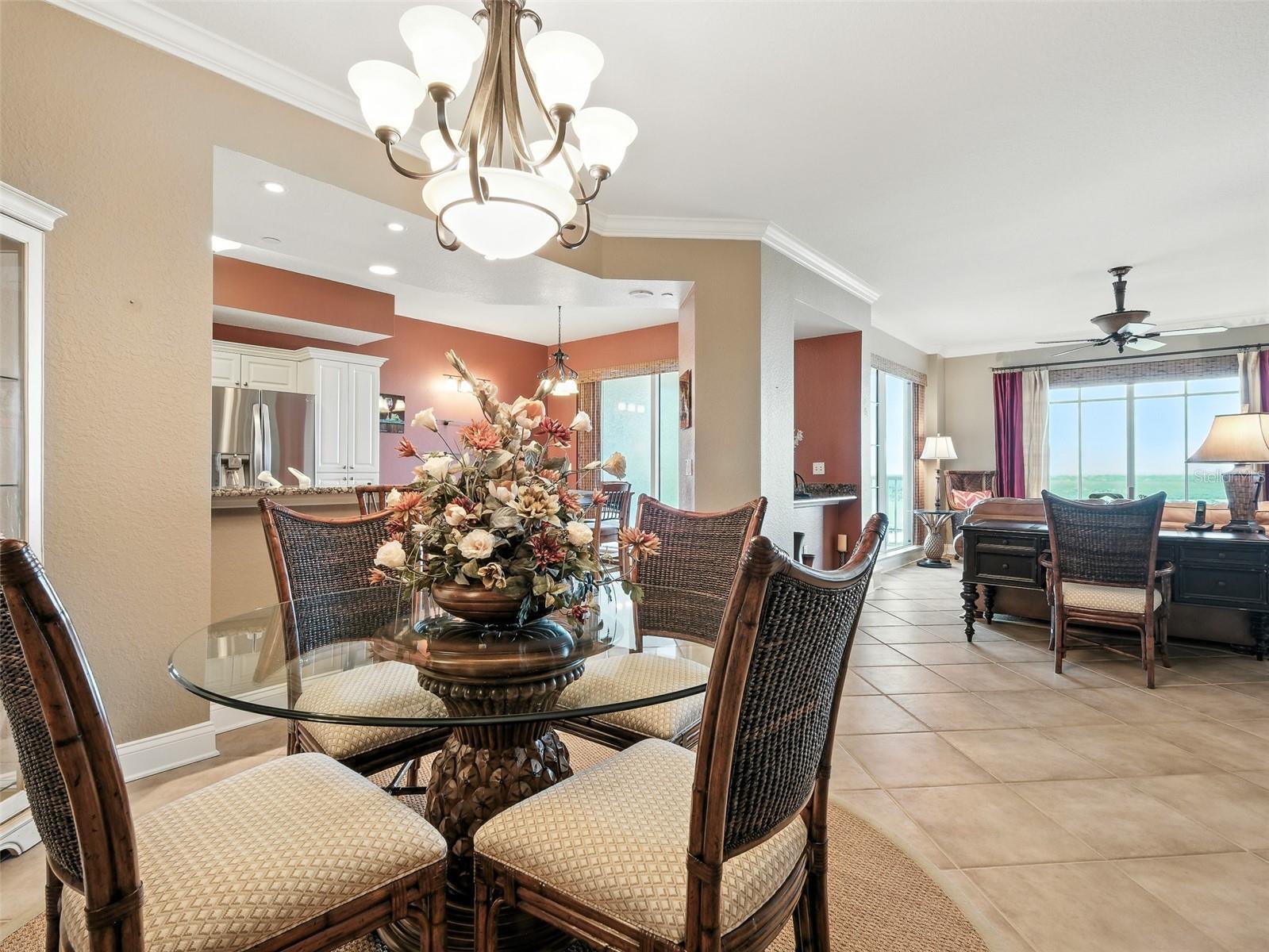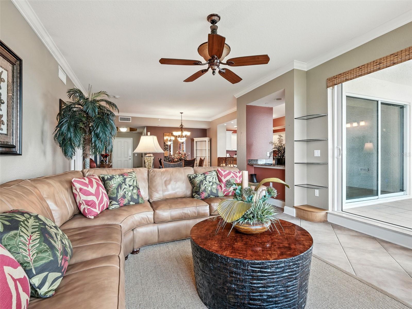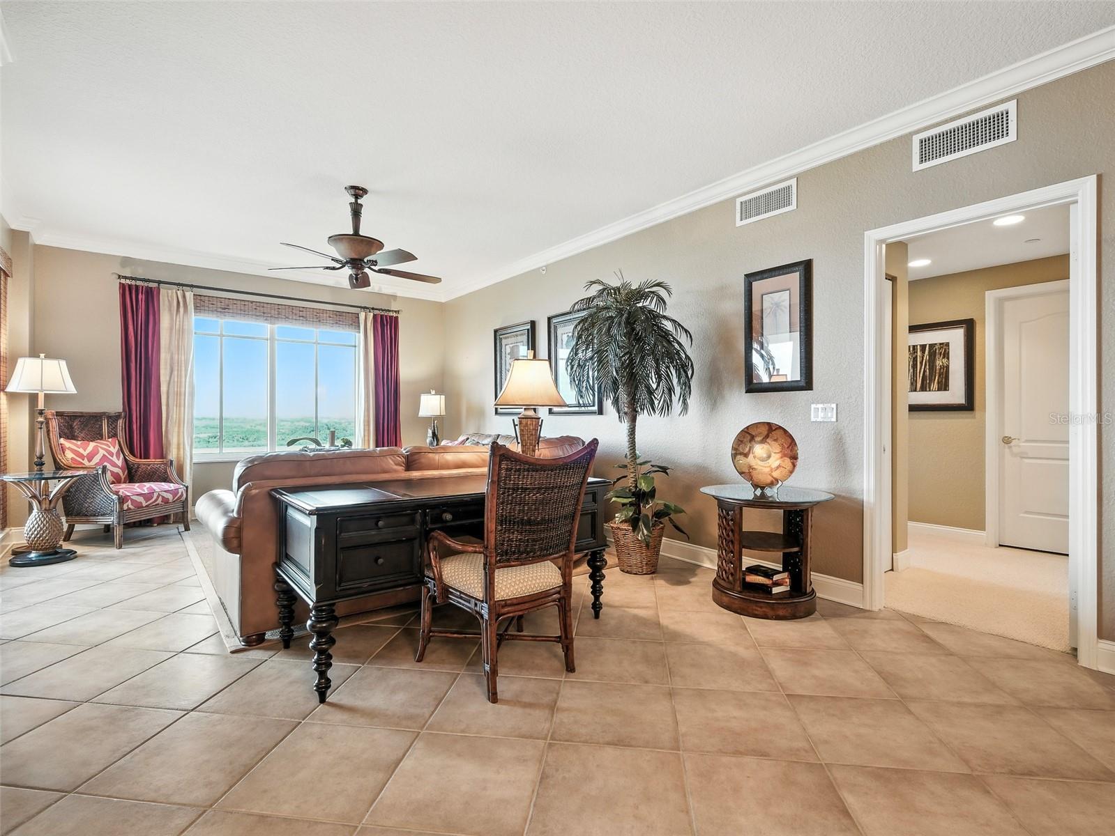 - Built-in Features, Ceiling Fans(s), Elevator, High Ceilings, Open Floorplan, Primary Bedroom Main Floor, Solid Surface Counters, Split Bedroom, Walk-In Closet(s), Window Treatments