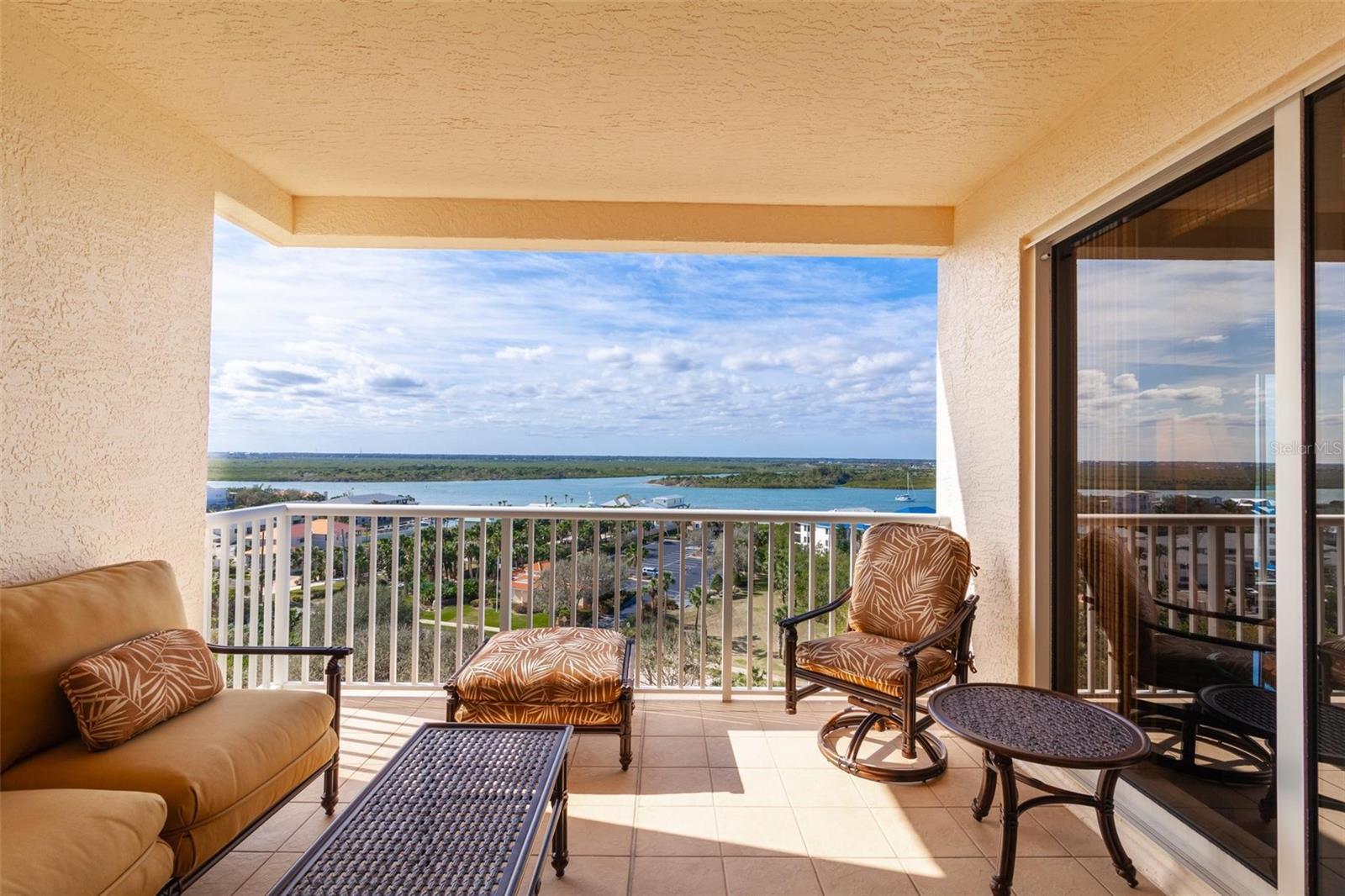 Under contract-accepting backup offers. Amazing Intracoastal views from this penthouse level Minorca condominium! Spacious Indigo 3 bedroom, 2 bath floorplan with breakfast nook and dining area. The third bedroom is presently used as den and would also make a nice private office. The SW facing balcony has both Intracoastal and oceanviews and is a great spot to enjoy the sunsets and watch launches from the Cape. Filled with Lexington and Tommy Bahama furnishings and complete kitchenware and linens, this immaculate unit is offered fully furnished, turn-key. Custom plantation shutters throughout. HVAC 2015, kitchen appliances 2018 and washer/dryer 2019. Complex features Har-tru tennis courts, exercise room, community pool, fabulous clubhouse and gated entry. Underground assigned/reserved parking spot #12. Two pets are permitted up to 80 pounds combined. See to appreciate.