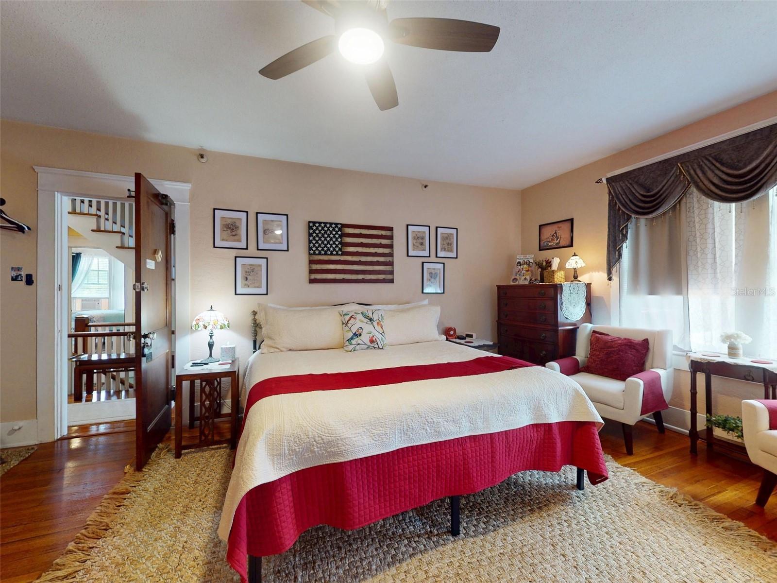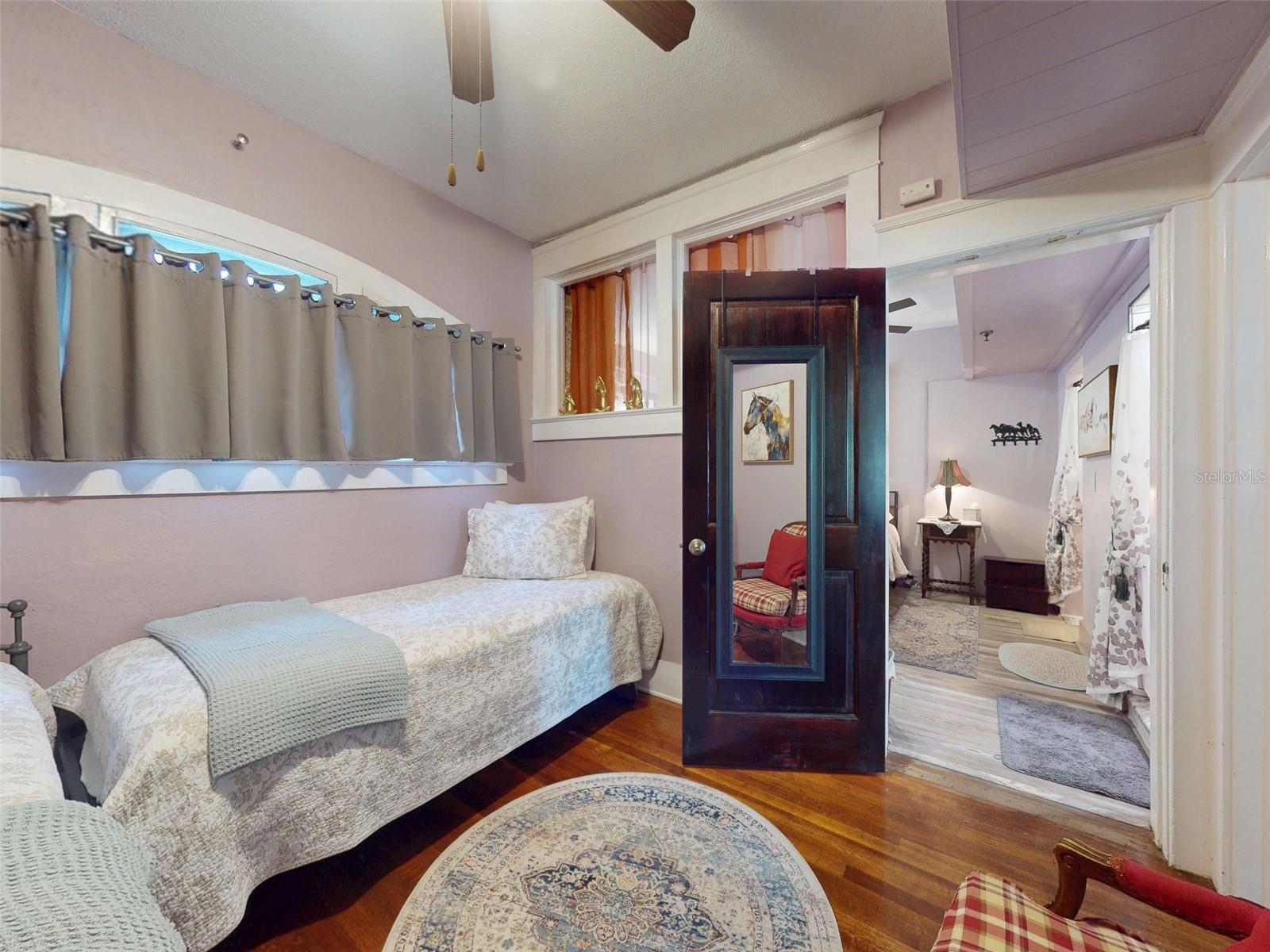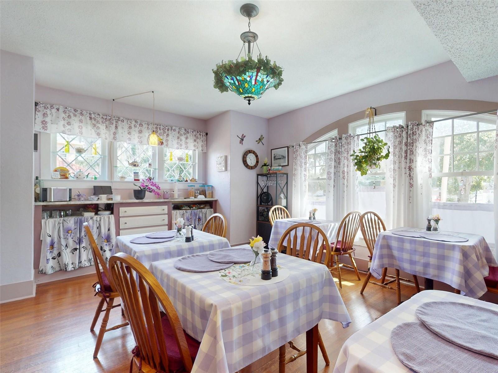 Florida Charm Meets Turnkey Opportunity! This 1912 Historic Registry Home is a rare gem located in the residential Historic District of Downtown Daytona Beach—offering incredible flexibility as a private residence or fully operational Bed & Breakfast. Just minutes from the Daytona International Speedway, Daytona Beaches, and one block from the 500-slip marina, the location blends lifestyle and investment potential. Set on a .26-acre corner lot, the home features original hardwood floors, a welcoming front porch, and lush landscaping with mature oaks, palms, and flowering gardens. The interior offers three spacious common rooms, including a formal dining room with built-ins, a bright Coquina sunroom with Spanish tile, and a large parlor with a working wood-burning Coquina fireplace. There are four guest bedrooms, each with a private ensuite bath, and a private owner’s suite adjacent to the kitchen, complete with built-in bookcases and an attached office. The kitchen has been fully upgraded with new cabinetry, granite countertops, and modern appliances. Behind the garage, you’ll find a fully finished caretaker’s quarters, ideal for staff, guests, or extended family. This property has seen significant upgrades, including a new roof, new AC system, updated electrical throughout, Andersen hurricane-rated windows, updated appliances, a full fire sprinkler and suppressant system, and a security camera system. There are also three exterior storage sheds and a partially finished attic offering excellent potential for future expansion or additional storage. Currently operating as a successful Bed & Breakfast, this is a turnkey business opportunity being sold fully furnished—including TVs, linens, kitchenware, dining service for 20, and more. Immaculately maintained and zoned for residential use with commercial application, this property is perfect for those seeking a unique residence or a proven hospitality investment in one of Florida’s most vibrant coastal destinations.