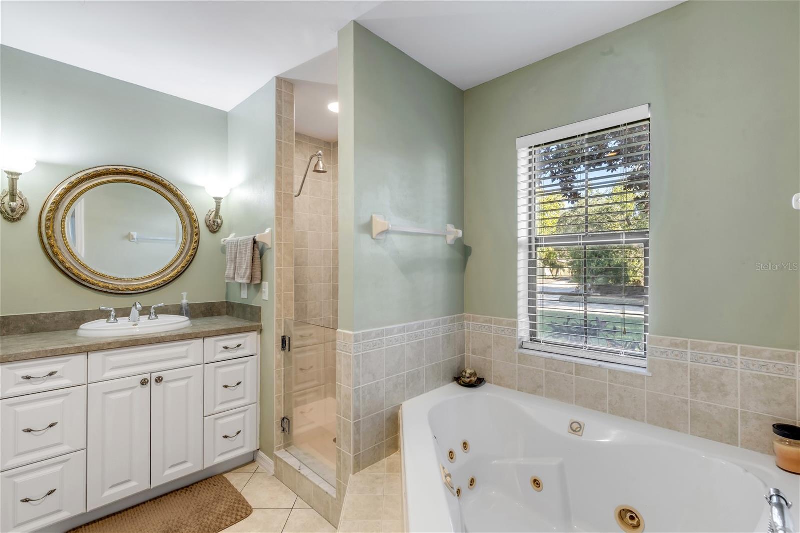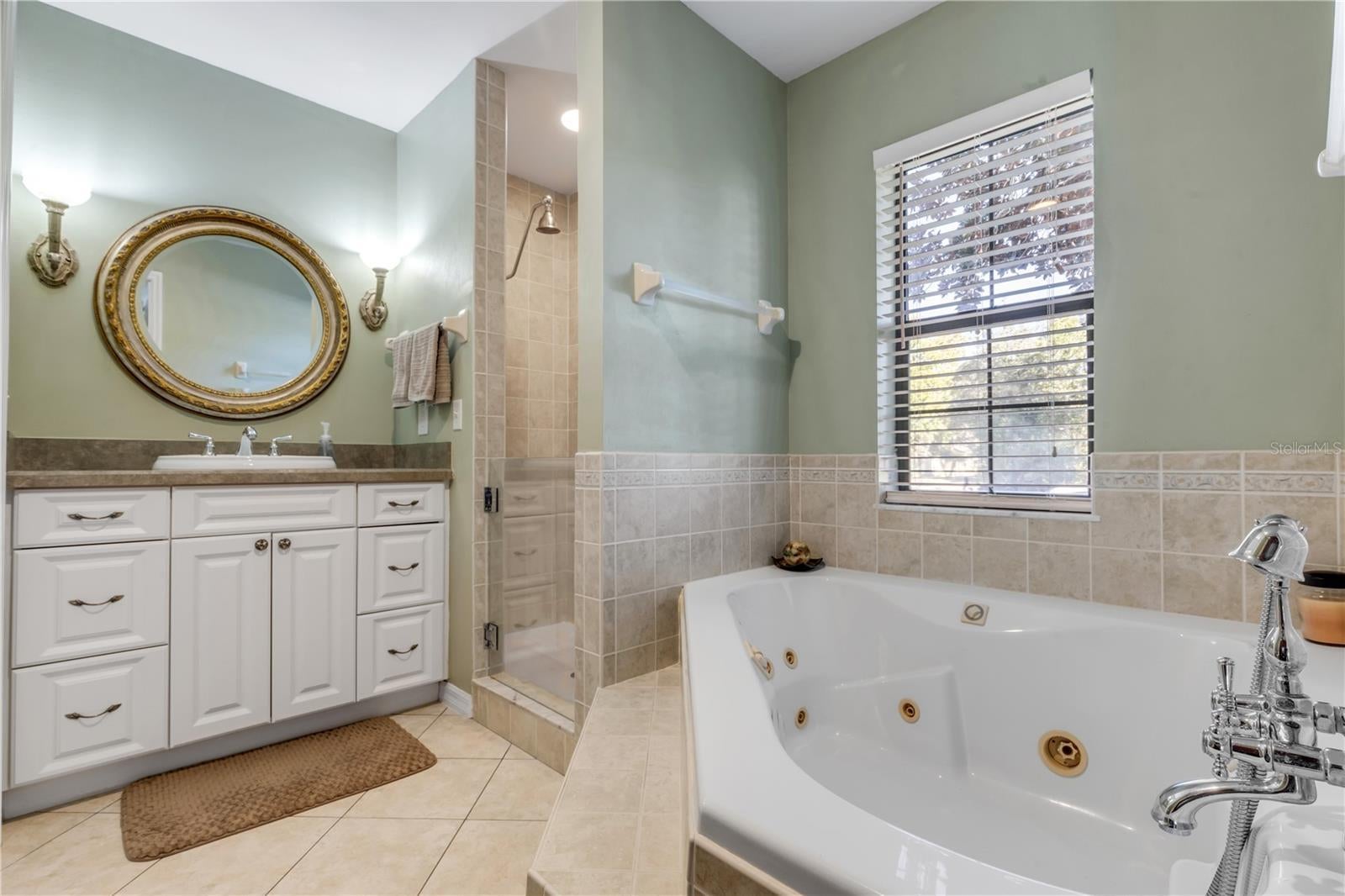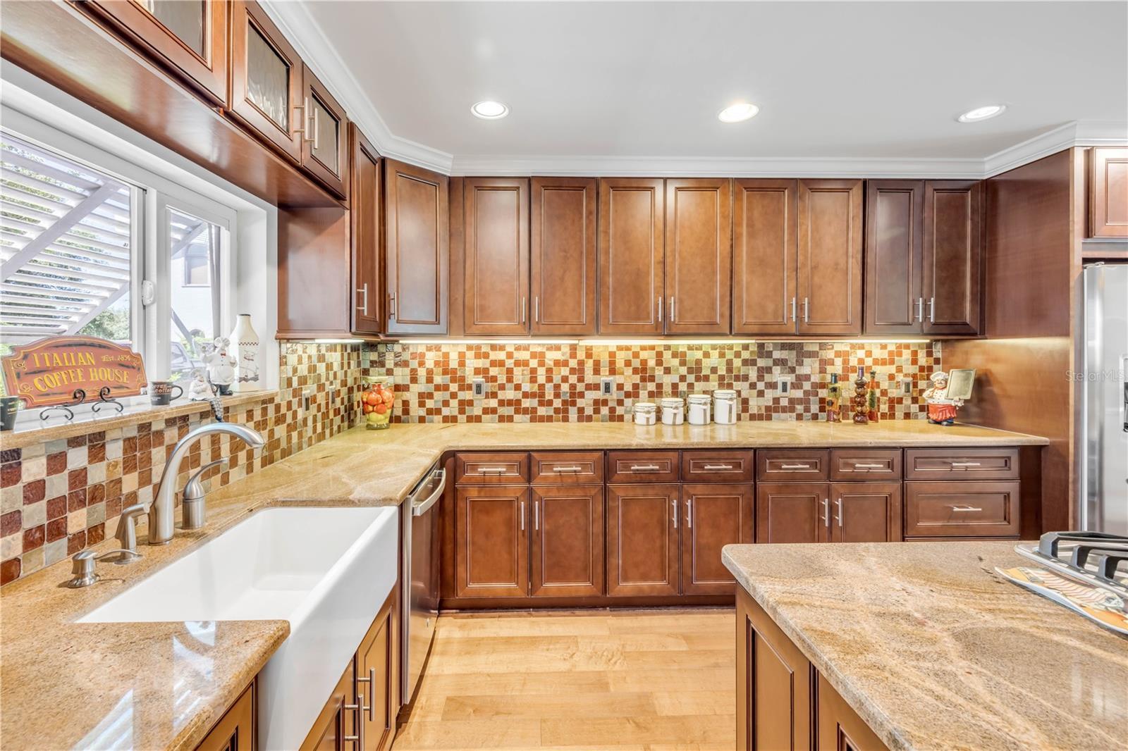 - Built-in Features, Ceiling Fans(s), Crown Molding, Eat-in Kitchen, Living Room/Dining Room Combo, Primary Bedroom Main Floor, Solid Surface Counters, Solid Wood Cabinets, Split Bedroom, Stone Counters, Walk-In Closet(s), Wet Bar, Window Treatments