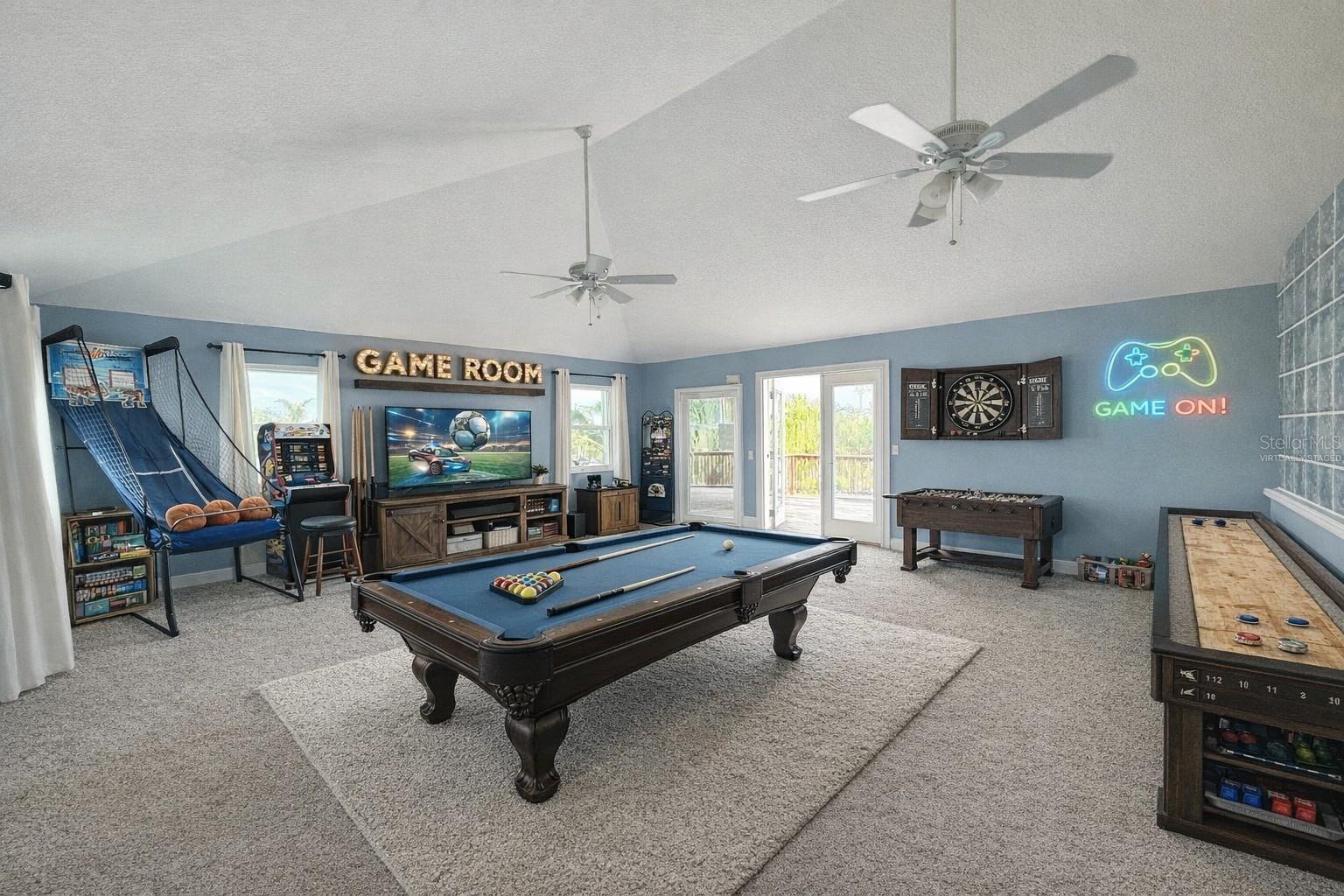 - Ceiling Fans(s), High Ceilings, Kitchen/Family Room Combo, Open Floorplan, Window Treatments
