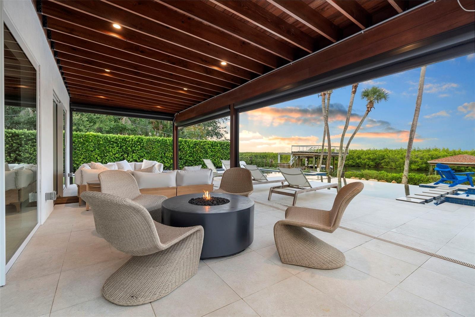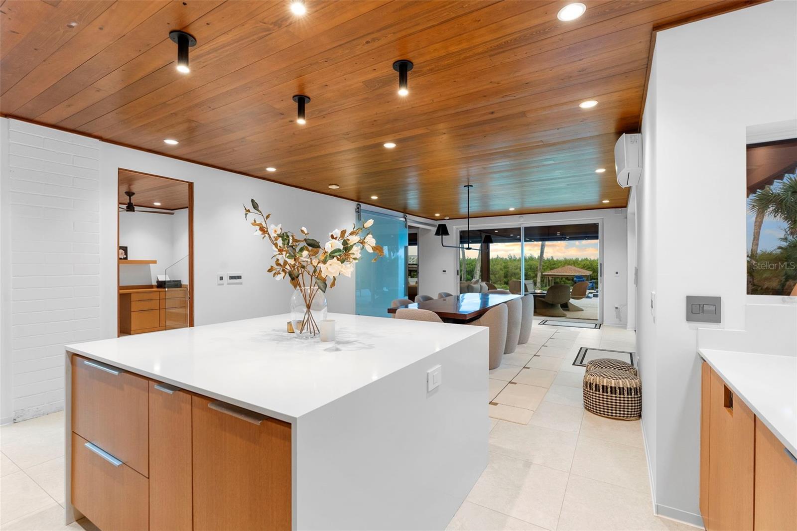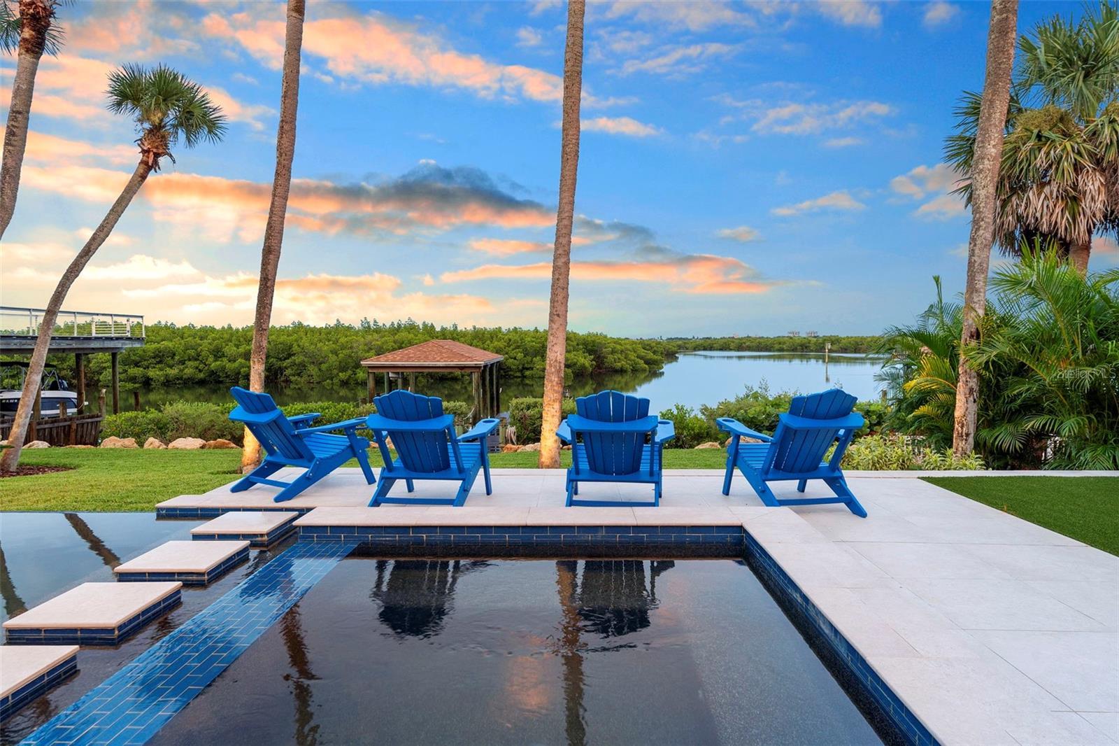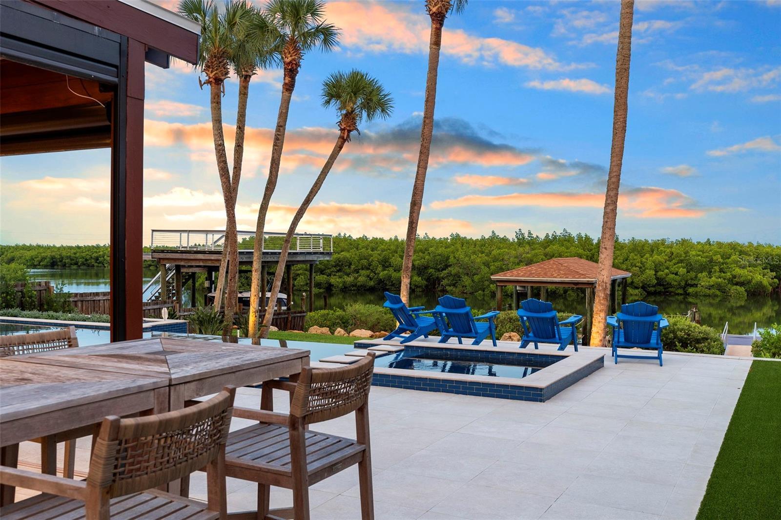 Welcome to 705 Faulkner, your new home in the heart of the Historic District of New Smyrna Beach, Florida. With awe-inspiring views, this mid-century modern, waterfront home offers a PRISTINE 84 ft. of river frontage with a private boathouse, 10,000lb lift and kayak dock. Inside, three bedrooms with three en-suite bathrooms, a dedicated office, and a chef’s kitchen with top of the line appliances from Gaggenau, Miele, & Sub-Zero define luxury living. Panoramic Euro-wall doors provide unobstructed views open to the intracoastal waters and resort-style outdoor spaces, featuring an infinity-edge heated saltwater pool/spa with a mote, outdoor kitchen with granite countertops, retractable "noseeum" screened lanai and Italian porcelain pavers. With newly installed Enphase whole-home solar, you are practically eliminating your electric bill! The upgrades in the landscaping, whole home generator, and impressive outdoor lighting features alone make this home a site to see. 705 Faulkner has all of the elegant, modern features you could want in one of NSB's most desired neighborhoods.. Just five minutes from the beach and walking distance to the flourishing Canal Street Historic Arts District, this is coastal living in New Smyrna Beach, Florida at its finest!