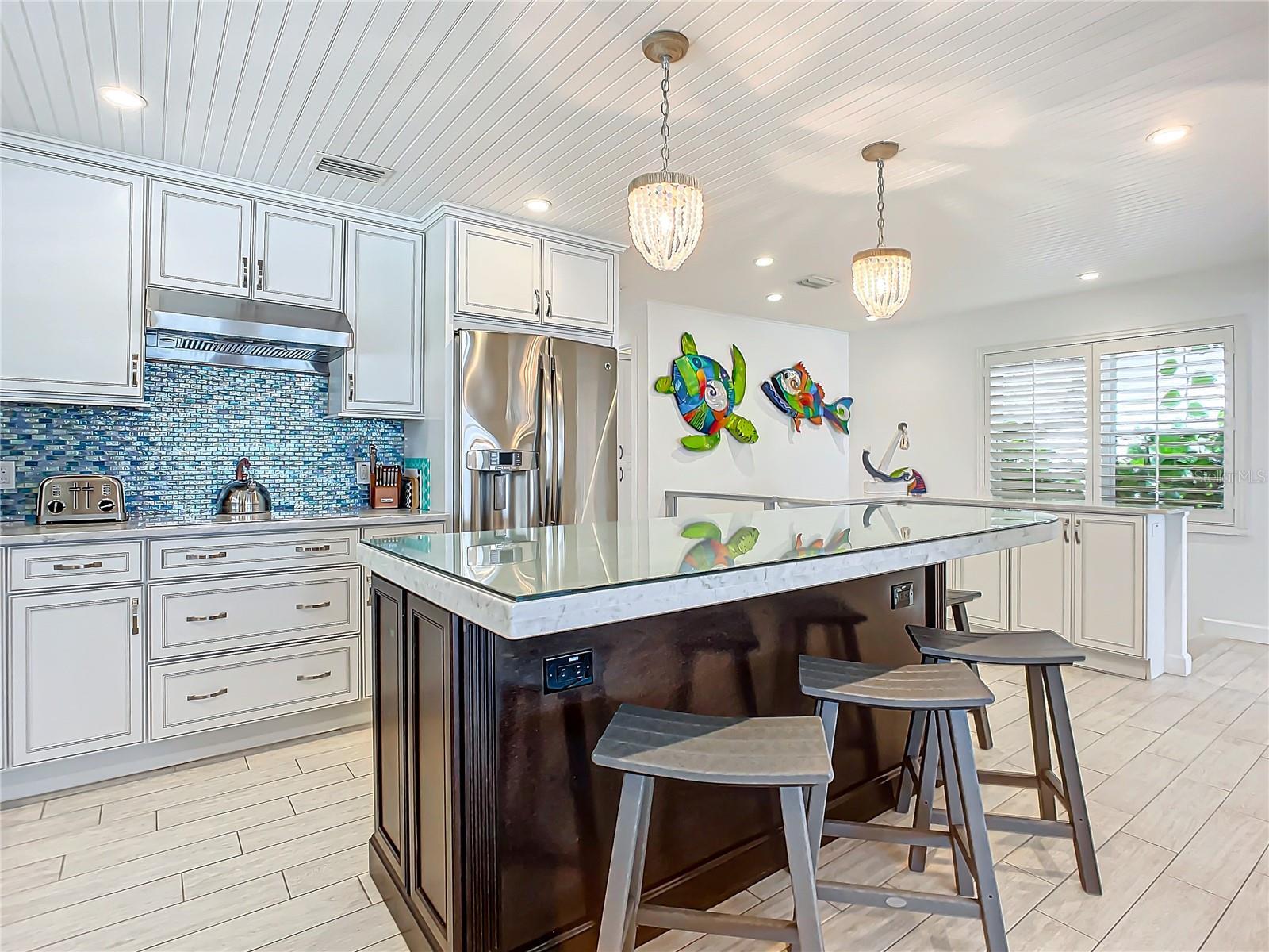 - Accessibility Features, Ceiling Fans(s), Coffered Ceiling(s), Crown Molding, Eat-in Kitchen, High Ceilings, Solid Surface Counters, Solid Wood Cabinets, Split Bedroom, Stone Counters, Thermostat, Walk-In Closet(s)