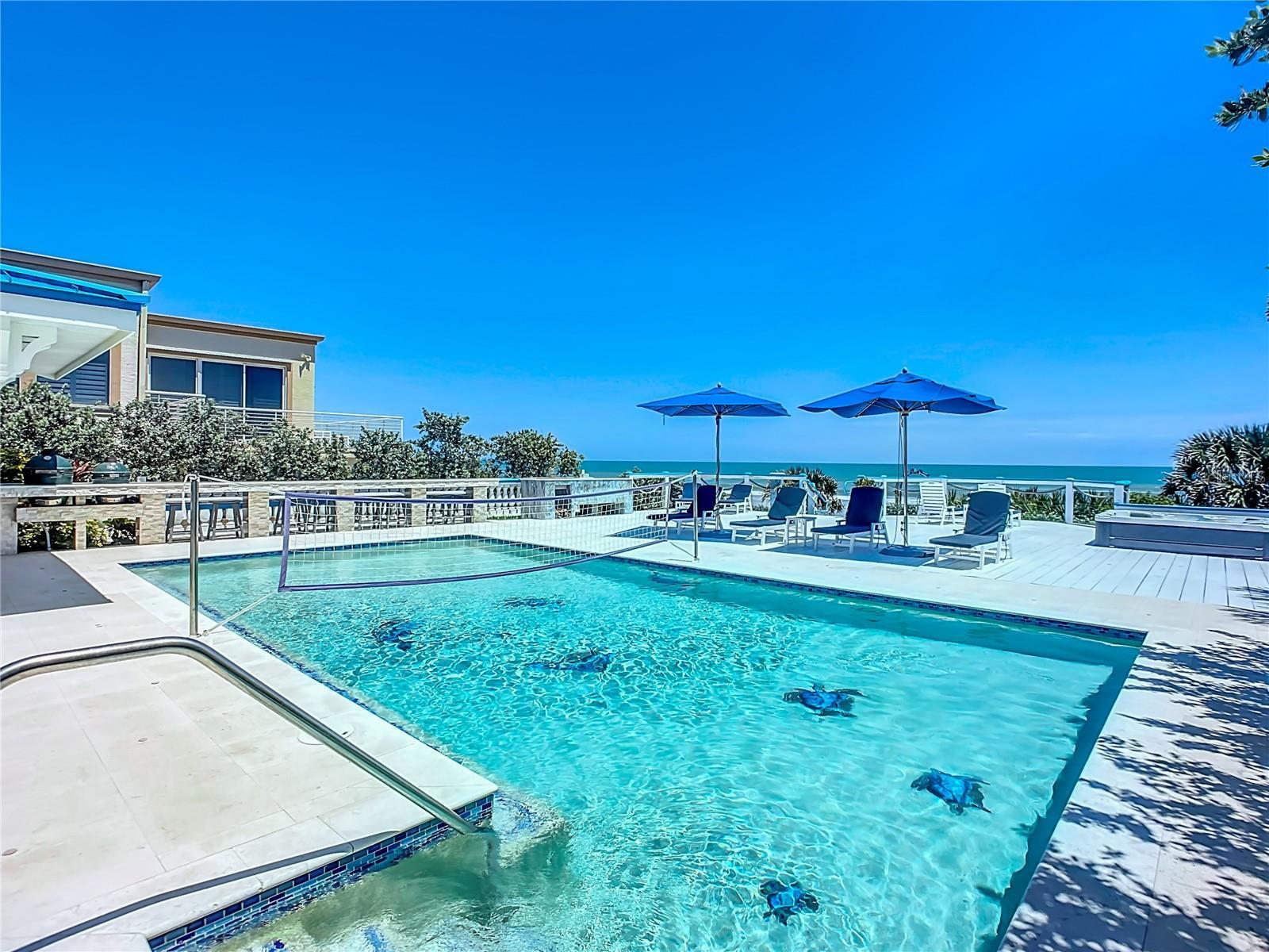A rare chance to acquire Joy by the Sea - New Smyrna Beach’s premier 5-star luxury vacation resort. This exclusive direct oceanfront property combines a fully renovated (2021) coastal estate with six upscale beachside villas and a direct oceanfront 4 bedroom, 4 bathroom pool home, creating a truly one-of-a-kind boutique resort experience. Spanning two lots in the heart of New Smyrna’s highly sought-after short-term rental district, Joy by the Sea offers unmatched flexibility and proven income performance. The private oceanfront home delivers unobstructed views, private beach access, and a resort-style pool and spa with a volleyball net, surrounded by expansive decks designed for entertaining and relaxation. Inside, you’ll find elegant living spaces, two balconies with breathtaking ocean views, an elevator, a fully stocked kitchen with a Nespresso machine, and four beautifully appointed bedrooms: a king suite with stunning ocean views, a wine chiller/beverage fridge and a Nespresso machine, a twin bedroom with a small private balcony, a queen bedroom, and an additional twin room. Outdoors, enjoy a covered patio with a dining table, a hot tub, lounge seating, and an outdoor kitchen featuring two built-in green egg grills, a custom-built concrete pizza oven, a custom-built large charcoal or wood fire grill, a beverage fridge, and a nine-person bar top. The home is also equipped with 5 Smart TVs and offers driveway parking for your vehicles. Directly across the street, six fully furnished bungalow-style villas surround a private saltwater pool and tropical courtyard, offering additional high-end accommodations. The villas include two one-bedroom units, each sleeping up to eight guests, and four studio villas, each accommodating four guests. Every bungalow features a fully equipped kitchen with a microwave oven, stove, sink, full-size refrigerator, and stackable washer and dryers, making them perfect for extended stays. Both the Ocean Front home and the six studio villas are backed up by 3 Generac Guardian 26kW Aluminum Home Standby Generators to ensure a comfortable stay during Florida's unpredictable weather. Celebrated for its impeccable design, premium finishes, and exceptional guest reviews, Joy by the Sea is ideal for family reunions, luxury vacations, weddings, corporate gatherings, and special events. Offered fully turnkey, the property conveys with all furniture, décor, and appliances, making it truly move-in ready. The oceanfront home provides private beach access, while the bungalows are just steps away from public beach access. Whether you’re seeking a trophy asset, a high-yield rental property, a private coastal retreat, or a strategic 1031 exchange, Joy by the Sea’s boutique scale, iconic presence, and turnkey condition make it one of Florida’s most unique and recognizable oceanfront properties. Offered as a complete package, this is an extraordinary opportunity to own a true coastal gem.