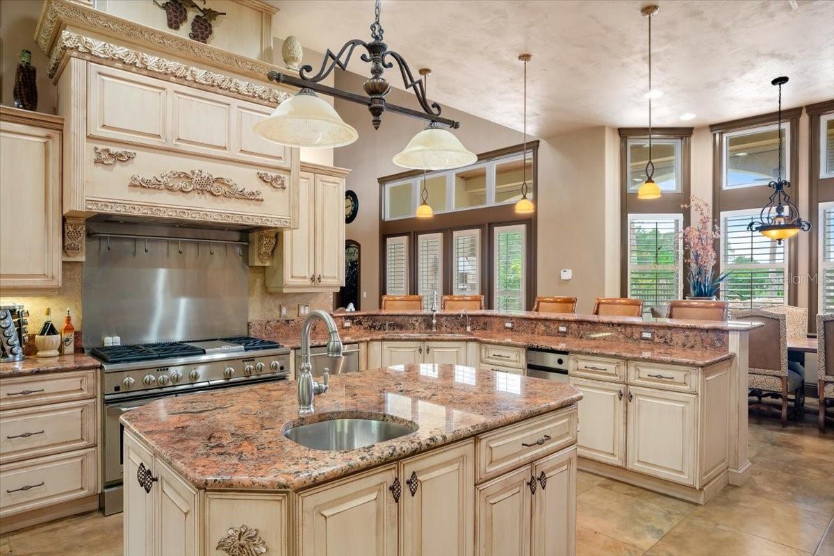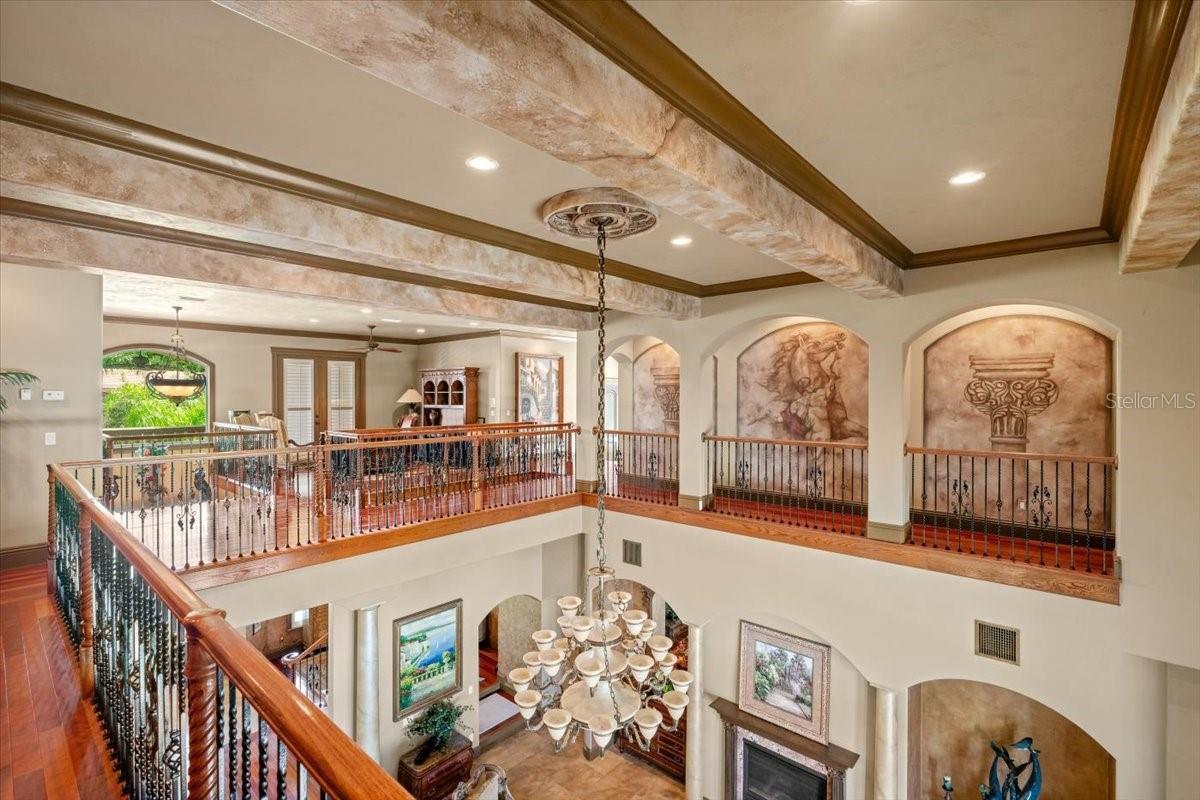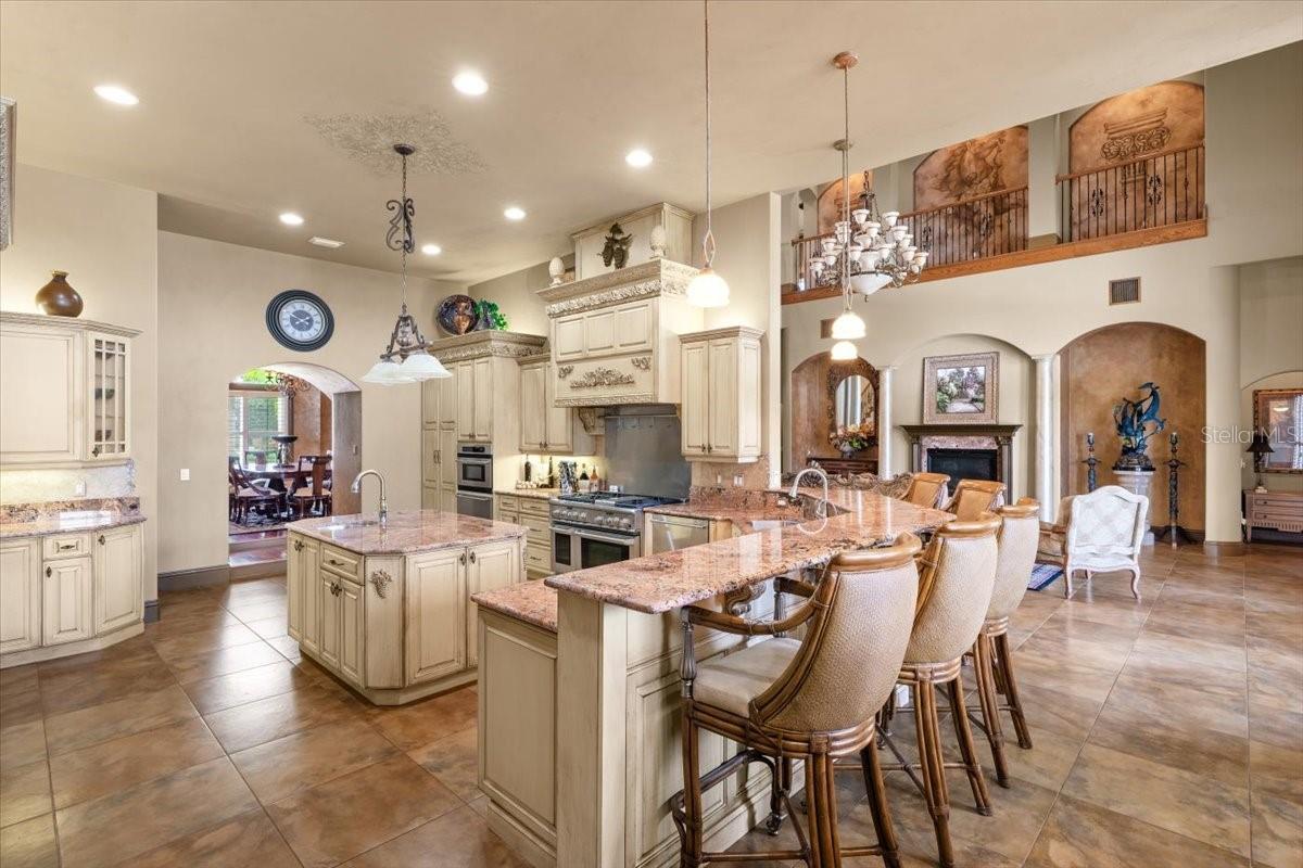 - Built-in Features, Ceiling Fans(s), Central Vaccum, Coffered Ceiling(s), Crown Molding, Eat-in Kitchen, High Ceilings, L Dining, Open Floorplan, Primary Bedroom Main Floor, Solid Wood Cabinets, Split Bedroom, Stone Counters, Thermostat, Vaulted Ceiling(s), Walk-In Closet(s), Wet Bar, Window Treatments