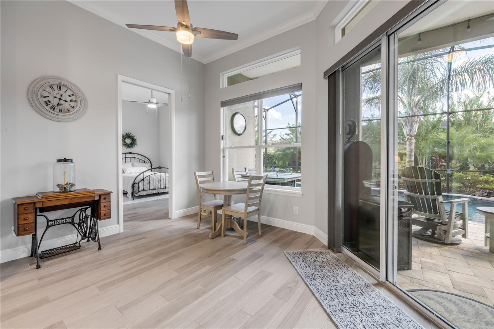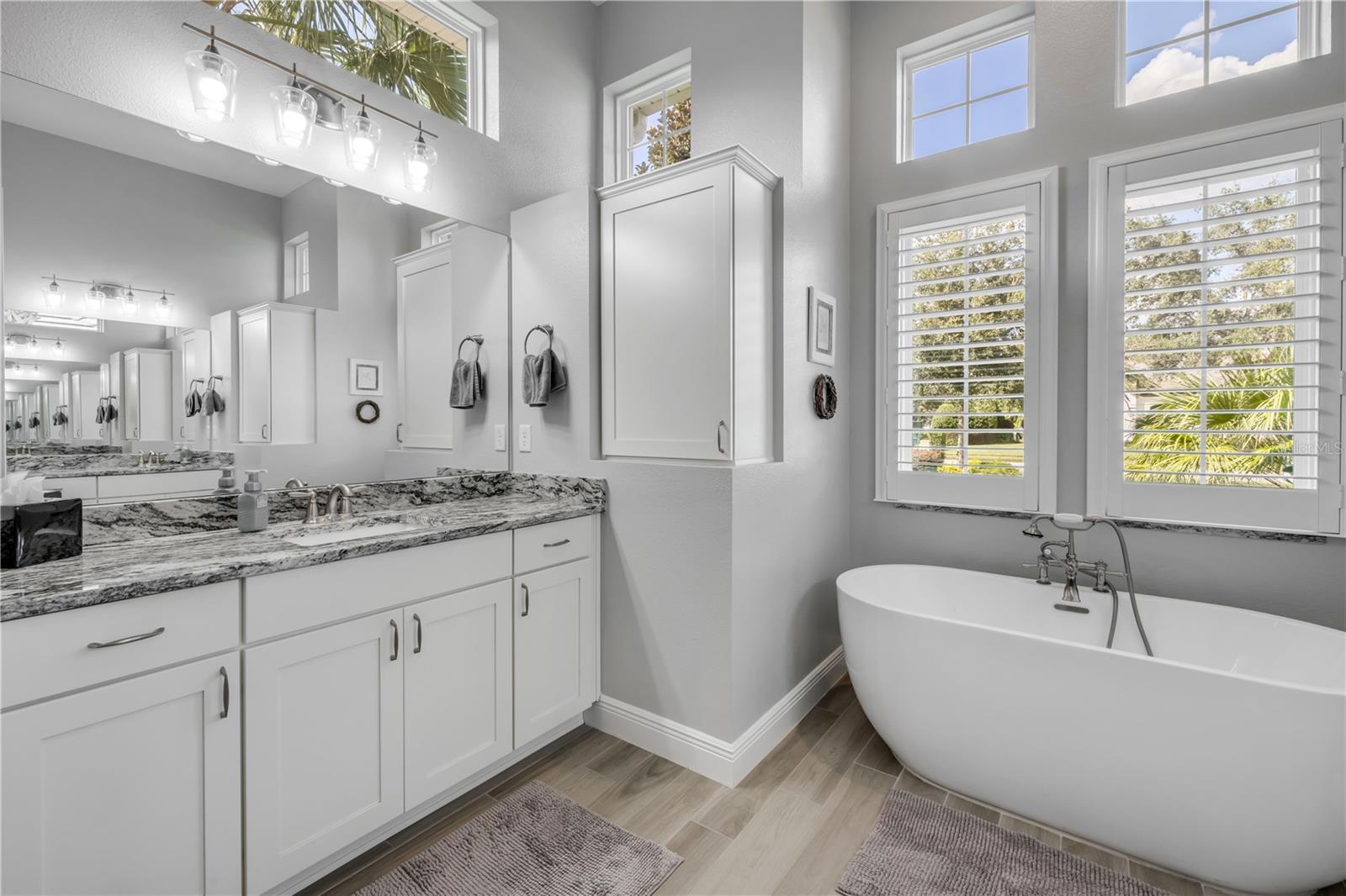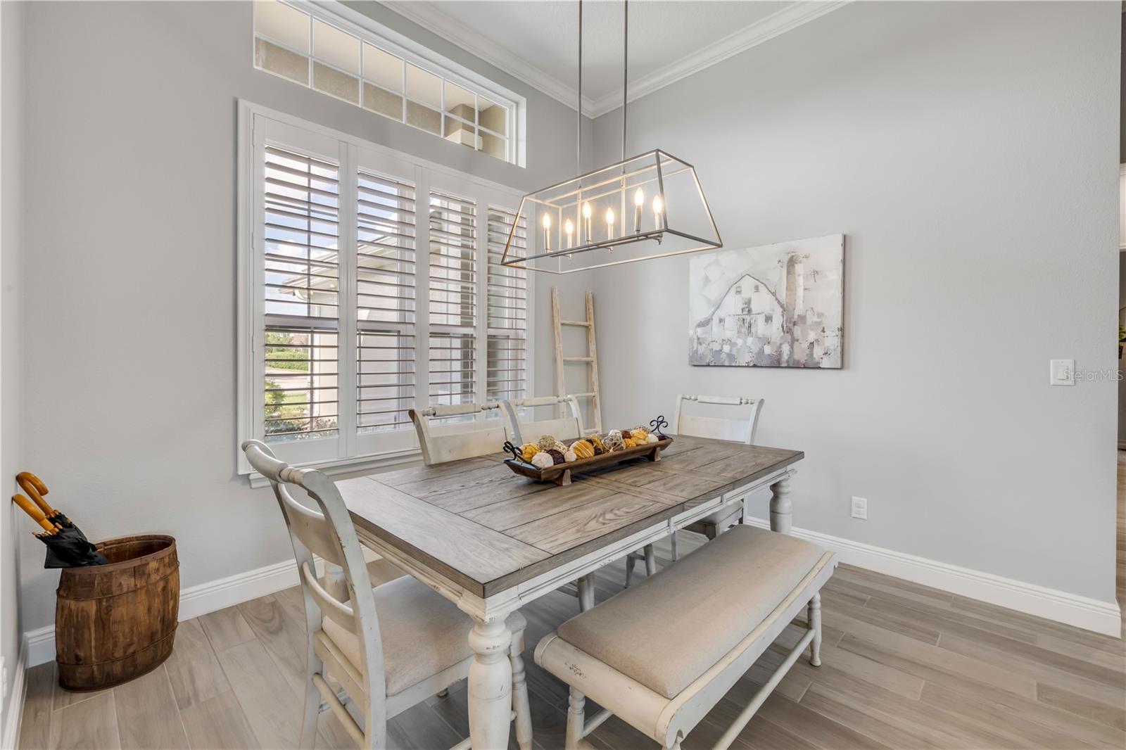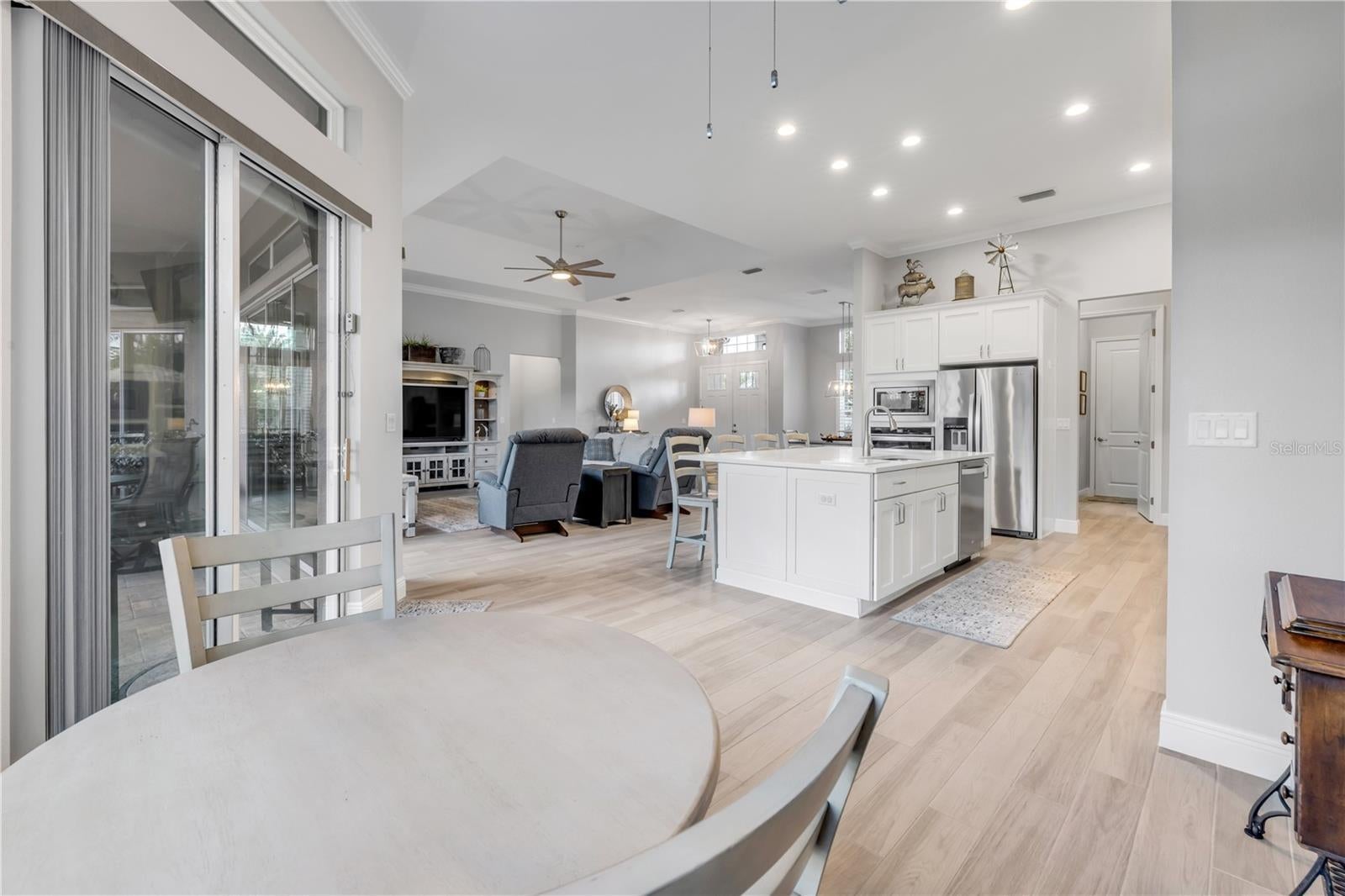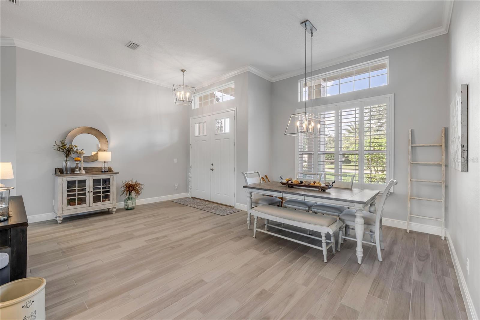 - Attic Ventilator, Ceiling Fans(s), Eat-in Kitchen, High Ceilings, Living Room/Dining Room Combo, Open Floorplan, Primary Bedroom Main Floor, Solid Surface Counters, Thermostat, Tray Ceiling(s), Walk-In Closet(s), Window Treatments