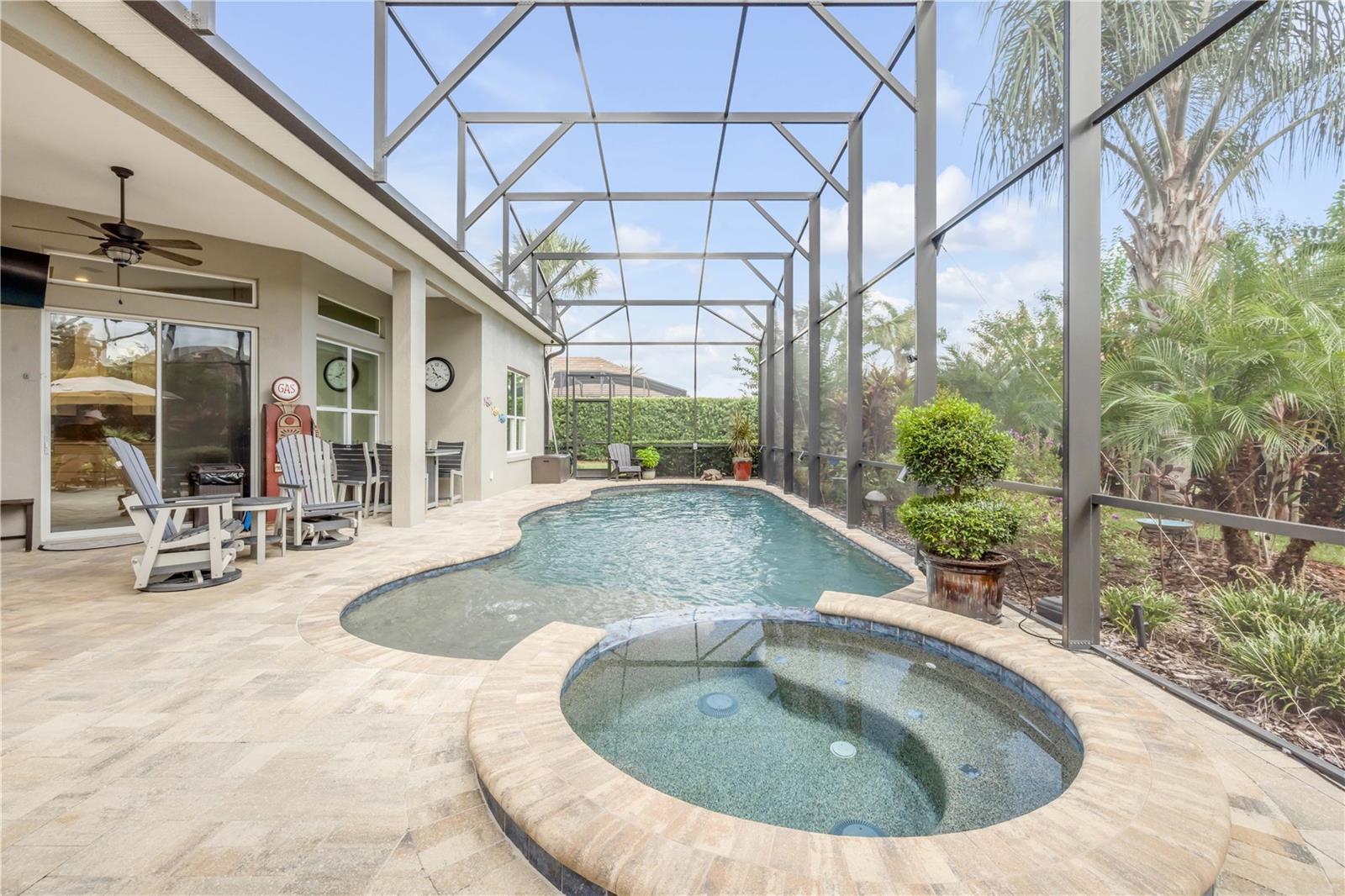 Under contract-accepting backup offers. Stunning Custom Home in Mount Dora’s Most Sought-After Community- Loch Leven! Welcome to this beautifully crafted, newly built custom home featuring soaring 12-foot ceilings and a thoughtfully designed split floor plan. Located in one of Mount Dora’s most desirable neighborhoods, this residence offers luxury, comfort, and functionality. Enjoy year-round relaxation in the heated screen enclosed Pebble Tec pool and spa, powered by a 500-gallon LP tank. The expansive 782 sq ft three-car garage boasts insulated doors, concrete floor coating, and blown insulation above, providing exceptional storage and energy efficiency. A whole house generator is also included on property for your ease of mind. Inside, you'll find granite countertops in all bathrooms, with walk-in closets, vinyl shutters and upscale window shades throughout the home. The spacious master suite is privately situated on one side of the home, complete with his and hers vanities and abundant storage, while three generously sized bedrooms occupy the opposite wing. This home is a perfect blend of elegance and practicality—ideal for families, entertainers, or anyone seeking a peaceful retreat with upscale finishes.