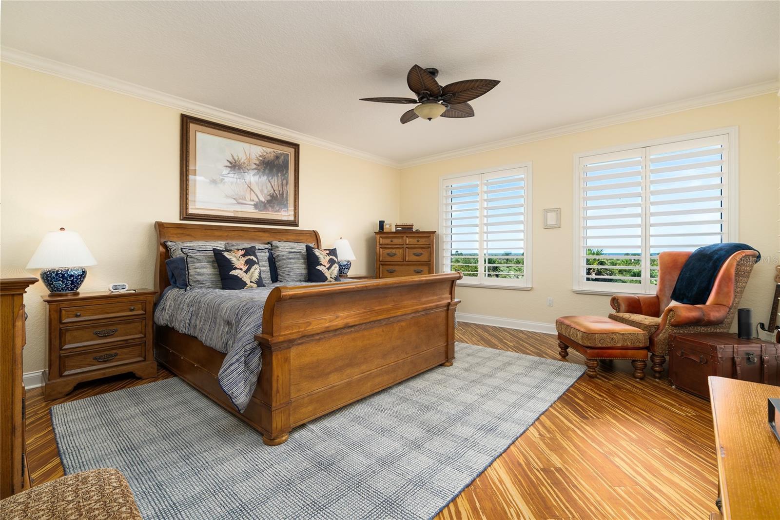 Discover refined beachside living in this beautifully appointed 4-bedroom, 3-bath Coquina corner residence, offering 2,620 square feet of thoughtfully designed living space. Located within the exclusive Minorca community, this residence blends sophisticated updates with serene ocean views and resort-style amenities. Inside, the home features a Murano glass center foyer chandelier, plantation shuttered windows, elegant bamboo and tile flooring, a tankless hot water heater, and a host of upscale upgrades. The fully renovated bathrooms (2020/2021) showcase quality craftsmanship, while the kitchen boasts granite countertops, a tile backsplash, newer stainless steel appliances, and crown molding that also extends into the living room, foyer, and primary suite. Stunning ocean-view primary suite featuring an expansive, spa-inspired luxurious en-suite bath. Enjoy a spacious glass-enclosed rain shower with separate wall-mounted body jets, a luxurious Jacuzzi tub, and abundant custom cabinetry for exceptional storage. The HVAC system was updated in 2019, with a new compressor installed in 2024, ensuring comfort and efficiency year-round. The following will convey to the Buyers at closing: stackable washer and dryer, wine refrigerator, Artisan produced solid oak dining room wine built-in hutch, 70" TV in Living Room, and Bose Surround Sound system in the living room. Enjoy two private balconies, ideal for soaking in the ocean breeze, along with a dedicated on-floor storage unit, deeded garage parking, and ample guest parking.Residents of Minorca enjoy a wide array of luxury amenities. The community offers 24-hour gated security for peace of mind, along with private beach access for effortless coastal enjoyment. A well-appointed clubhouse and fitness center provide spaces for socializing and wellness, while two resort-style swimming pools—including the exclusive Sallina pool, reserved for only two buildings—offer a tranquil place to relax. For tennis enthusiasts, there are four lighted clay courts with a dedicated on-site tennis professional. Additional amenities include scenic ocean and river pavilions, as well as boat slips available for lease or purchase as availability allows, perfect for those who love to spend time on the water. The community is pet-friendly, allowing two pets with a combined weight of up to 80 pounds. Ideally located near Smyrna Dunes Park and the lively Flagler Avenue, you'll find a vibrant mix of boutique shopping, casual cafes, and fine dining just minutes from your doorstep. Come live the Florida life in one of New Smyrna Beach’s most sought-after communities.