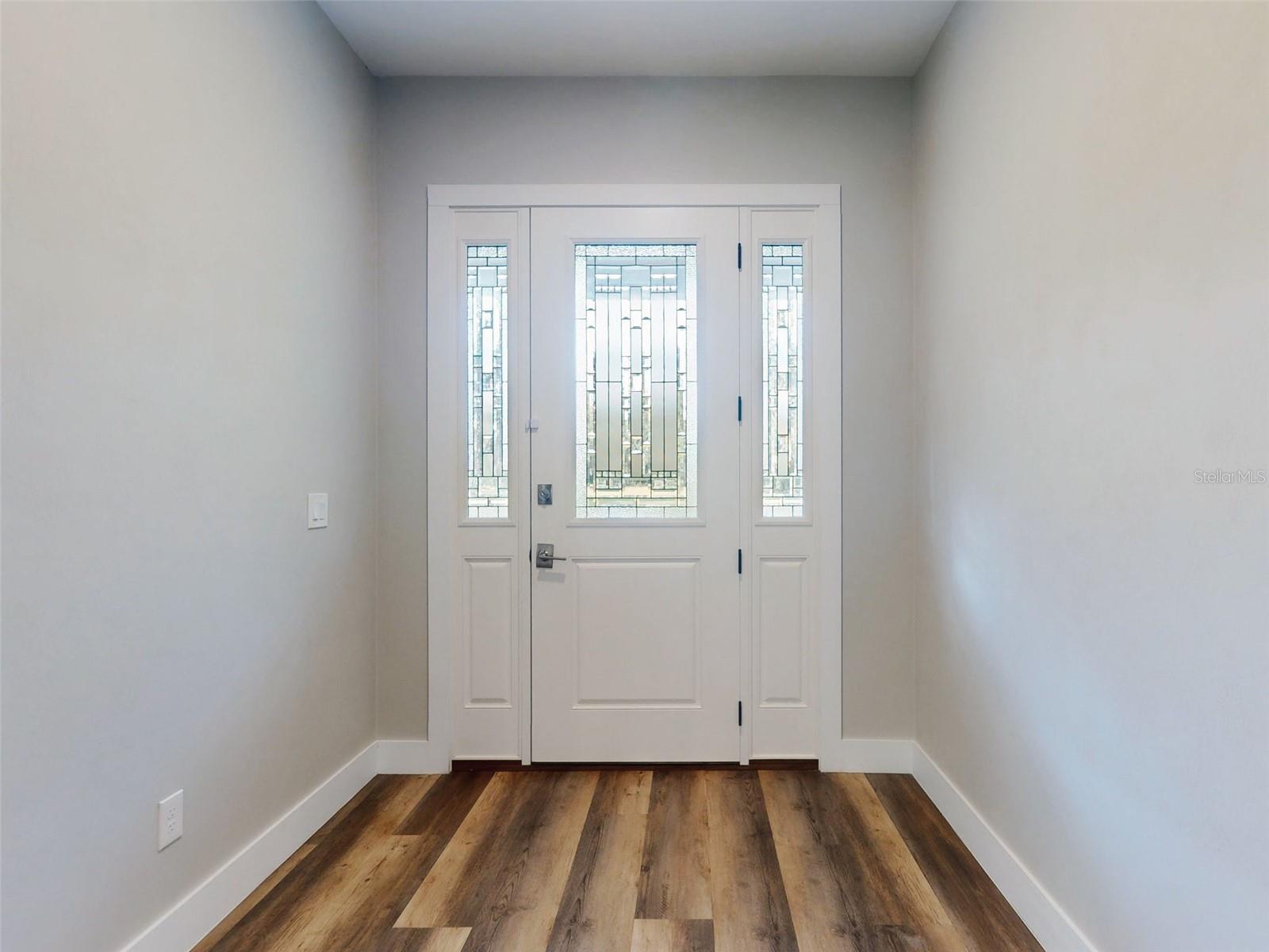 Country living meets modern convenience in this serene wooded retreat built in 2021, featuring 3 bedrooms and 2 baths. Custom from top to bottom with inspired touches throughout, this home offers a desirable open split-bedroom floor plan with cozy living areas paved in luxury vinyl wood-style flooring. The inviting living room centers around a glowing electric fireplace and provides access to both the front and back yards, while a formal dining area connects seamlessly to the well-appointed kitchen at the heart of the home. The kitchen showcases stainless steel appliances, quartz countertops, and a charming breakfast nook, with a massive walk-in pantry just off to the side offering ample storage and direct access to the generous laundry room, complete with a linen closet and a built-in secure safe. The owner’s suite is a private retreat with a walk-in closet and an elegant ensuite bath featuring dual sinks set in quartz vanities and a spacious walk-in shower. This space also opens to the backyard, where an outdoor oasis awaits. Surrounded by mature native foliage, the covered patio overlooks a lush yard and a large detached shed/workshop equipped with electricity—perfect for a studio, gym, or hobby space. Built with concrete construction, impact windows, and a metal roof, this 2021 home is as efficient as it is inviting. Additional highlights include a whole-house propane generator for peace of mind and over three acres of land zoned RA, allowing for both residential use and livestock. There’s plenty of room to park your boat, RV, or golf cart in addition to the attached two-car garage. Experience the feeling of a secluded ranch while remaining close to shopping, dining, the beach, and the river. This one is a must-see!