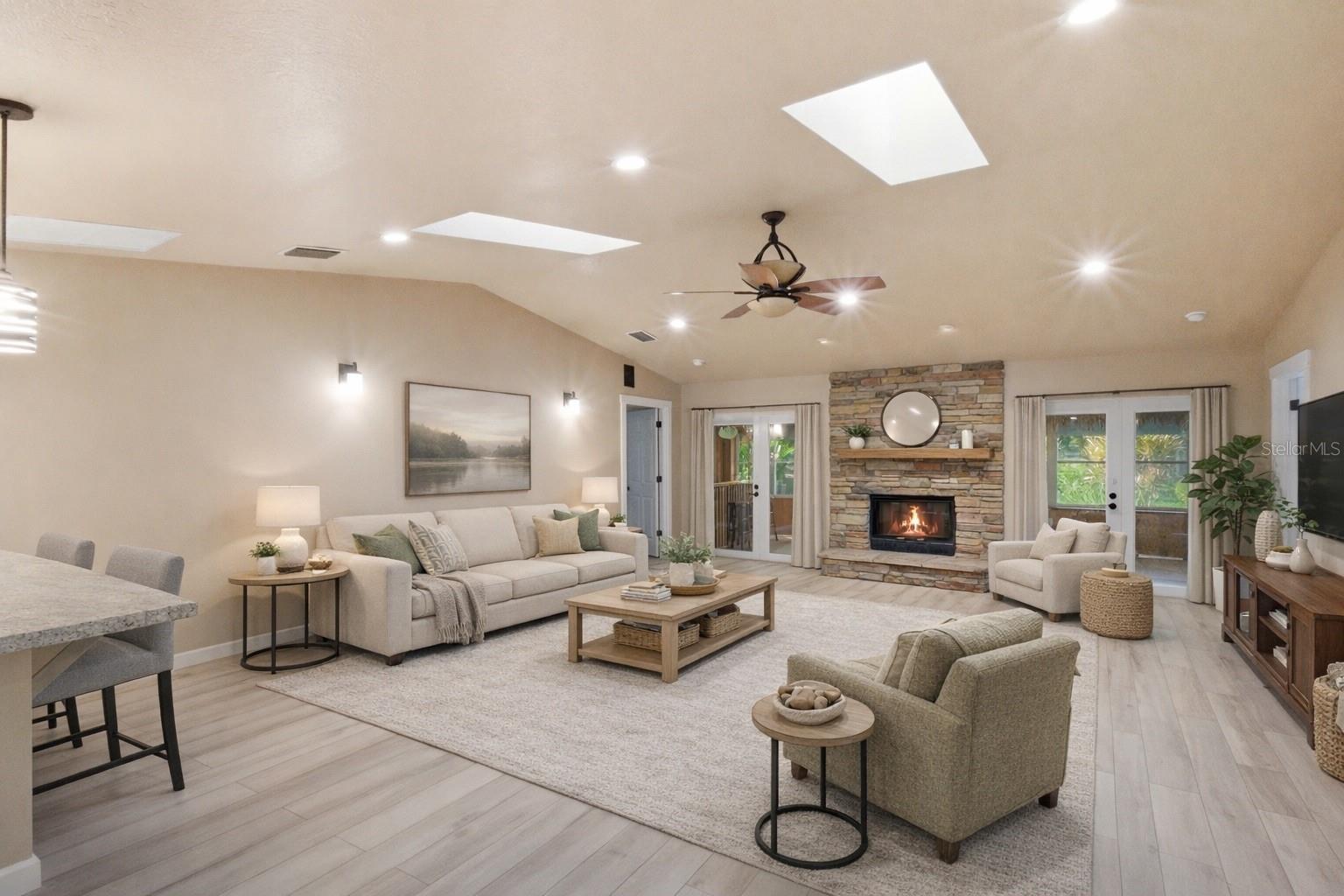 Welcome home to a true Winter Garden gem that perfectly blends modern comfort, timeless design, and small-town charm. Nestled on a spacious private lot with no HOA, this beautifully expanded and reimagined residence captures the spirit of historic Winter Garden while delivering every modern luxury. Step inside and feel the warmth of a home lovingly transformed from its original 3-bedroom ranch into a stunning 4-bedroom, 3-bath retreat spanning more than 3,300 sf. Every detail has been thoughtfully curated — from the chef-inspired kitchen to the inviting gathering spaces that make this home a haven for family life and entertaining. The kitchen is the heart of the home, featuring cashmere-white granite countertops, a 5-burner gas cooktop with high-velocity vent hood, pot filler, and a walk-in pantry with concrete counters. Dual full-size refrigerator and freezer units provide professional-grade storage, and the open design keeps everyone connected across the bar-top seating and living area. Multiple living and entertaining zones make this home truly special. Enjoy cozy evenings around the double-sided fireplace, host friends at the Tiki-bar porch (complete with built-in beer tap and refrigerator), or unwind on the two-level back deck featuring an outdoor kitchen, built-in hot tub, and paver patio with fire-pit wall — all set against a backdrop of breathtaking sunset views over the treetops. The home was designed to complement Winter Garden’s historic district, drawing inspiration from nearby vintage architecture and timeless details found throughout downtown. Brick column bases, tapered columns, and graceful arches pay homage to the area’s early 20th-century charm while interiors balance modern function with warmth and character. Skylights and a solar tube bathe the home in natural light, while thoughtful craftsmanship ensures every space feels welcoming. Enjoy your morning coffee on the front porch and wave to neighbors passing by — this is the kind of street where community still matters. The fenced backyard with a built-in dog door is ideal for pets and play, and there’s ample room to add a pool if you wish. Additional features include dedicated RV parking with power hookup, offering the perfect setup for your camper, boat, or extra vehicle — a rare find in this desirable location. Located in the highly coveted golf cart district of downtown Winter Garden, you’re just a five-minute golf cart ride from the heart of Plant Street — home to the Crooked Can Brewery & Marketplace, Axum Coffee, Plant Street Market, Matthew’s Steakhouse, and an ever-growing array of boutiques, cafés, and entertainment. Stroll or ride to the West Orange Trail, enjoy the Saturday Farmers Market, or take part in year-round events like Music Fest, Spring Fever in the Garden, and Oktoberfest. Every feature of this property reflects thoughtful living — from the expansive 0.33-acre lot on a quiet dead-end street to the custom addition adding over 1,800 square feet of living space, an expanded primary suite with spa-style bath, and multiple social zones perfect for entertaining. Abundant natural light pours through skylights and large windows, while the private backyard oasis offers serene sunset views and generous outdoor living space. This is more than a house — it’s a lifestyle. With space to grow, room to gather, and proximity to one of Florida’s most vibrant downtown districts, this Winter Garden treasure offers the perfect place to live, play, and thrive.