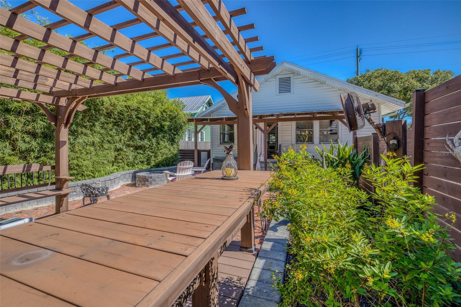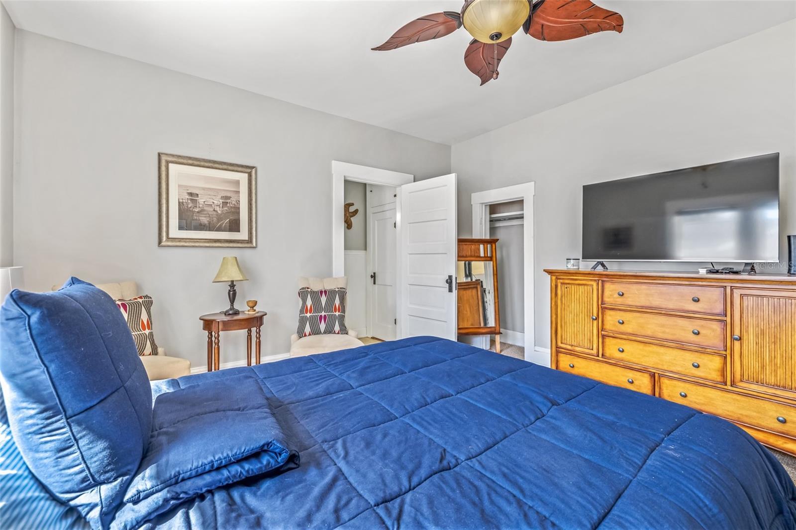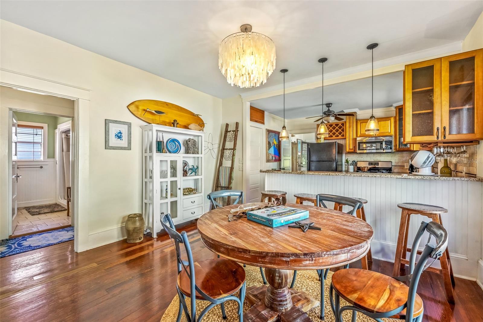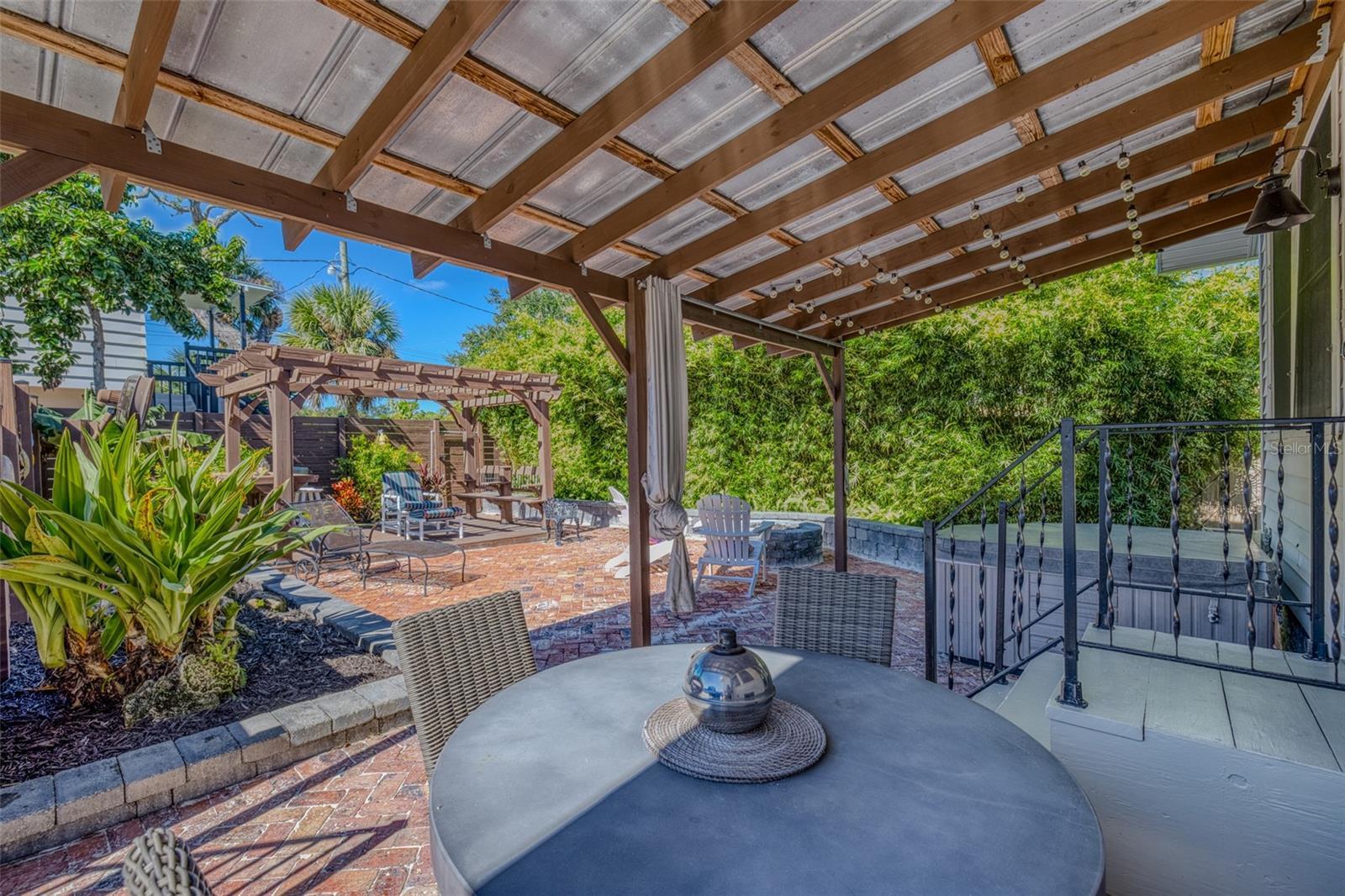 Step into timeless charm with this beautifully maintained historic home. Perfectly situated just minutes from the beach and the vibrant Canal Street downtown district. This residence seamlessly blends 1920s character with thoughtful modern updates. Gorgeous hardwood floors and abundant natural light fill the home, creating a warm and inviting atmosphere. The updated kitchen features granite countertops, stainless steel appliances, and ample cabinetry for storage. The spacious living room centers around a cozy fireplace—ideal for relaxing evenings. The primary suite offers an updated ensuite bath, while the second bedroom provides generous natural lighting and access to a full guest bath. Enjoy breezy Florida evenings on the charming front porch or host gatherings in the private backyard courtyard featuring a gas brick fireplace, raised pergola, and built-in brick seating—an entertainer’s dream. Above the detached two-car garage, you’ll find a two-bedroom, one-bath guest house with a private alley entrance—perfect for extended family or short-term rental income. Both the main home and guest house are zoned for short-term rentals and mixed-use, offering excellent flexibility and investment potential. Additional highlights include a long driveway with ample parking, an electric car charger, and 30-amp service for your RV or boat. Experience the best of Old Florida charm and modern coastal living in this rare historic gem. The home is ideally located just two blocks from local shops, dining, art galleries and a short walk to the intercoastal. You won't want to miss out on this one!!