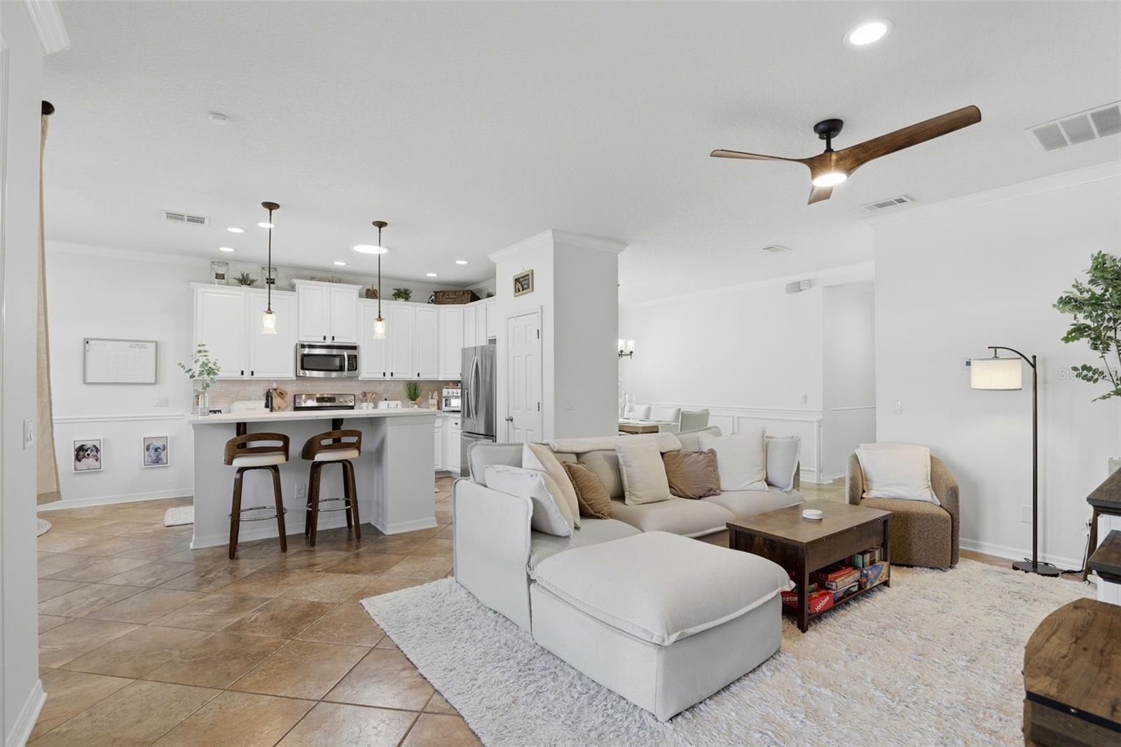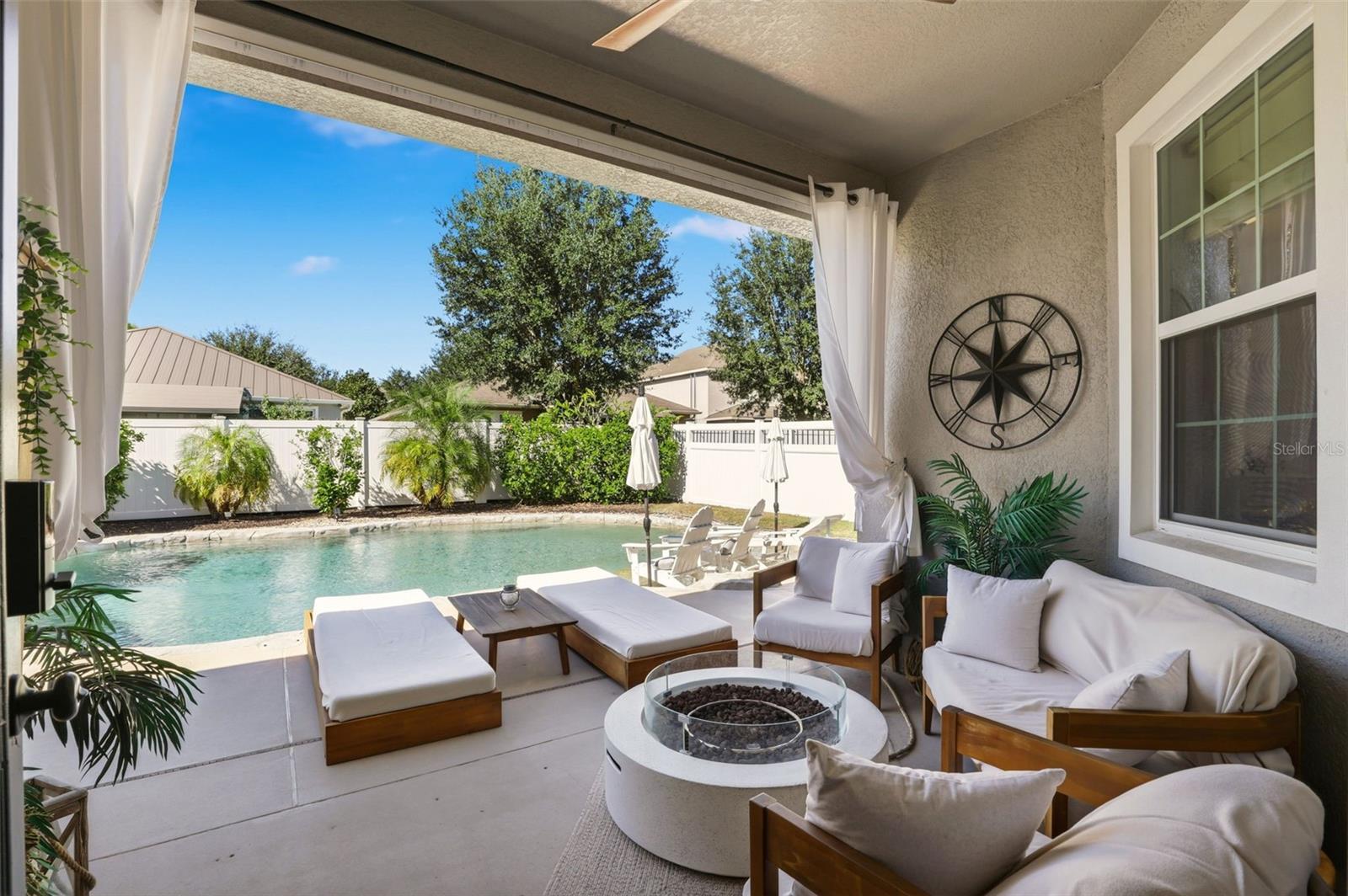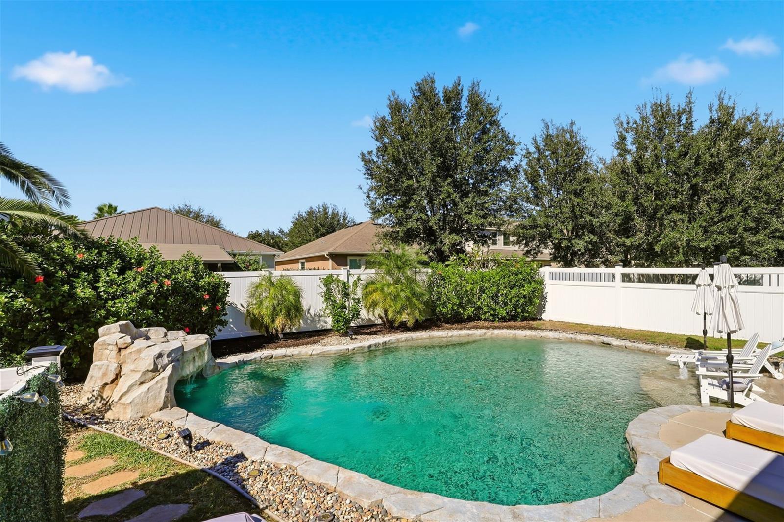 Recently Remodeled Water’s Edge at Lake Nona Home – 3 Beds / 2 Baths with Stunning Custom Pool This beautifully updated Water’s Edge at Lake Nona home is move-in ready and loaded with upgrades! Featuring 3 bedrooms, 2 bathrooms, and a gorgeous custom-designed pool, this rare find offers both luxury and comfort. Step outside to your faux-rock pool oasis complete with overflow protection, Badu swim jet, waterfall, and a grotto with wrap-around seating—perfect for entertaining or relaxing. Inside, the primary suite features a custom walk-in closet and an upgraded ensuite bath with a river rock basin and new glass enclosure. All bedrooms boast 8” x 4’ hand-scraped wood-look tile flooring, laid in a herringbone pattern in the primary and diagonal in the others. The main living areas showcase upgraded porcelain tile set diagonally, crown molding, and wainscoting for a refined touch. Furnishings, and all gym equipment are negotiable. The spacious kitchen includes granite countertops, stainless steel appliances, glass subway tile backsplash, and a cozy breakfast nook. Enjoy abundant natural light with extra windows and seven solar tubes throughout the home. Additional features include: Dedicated laundry room with washer and dryer included Two-car garage with raised storage bins for extra space Hurricane-rated vinyl and aluminum fencing for enhanced privacy ADT security system with motion detectors, glass break sensors, infrared doorbell camera, and full exterior camera coverage Hydrawise automated sprinkler system with 6 zones This home combines elegant design, thoughtful upgrades, and modern convenience—all within one of Lake Nona’s most desirable gated communities.