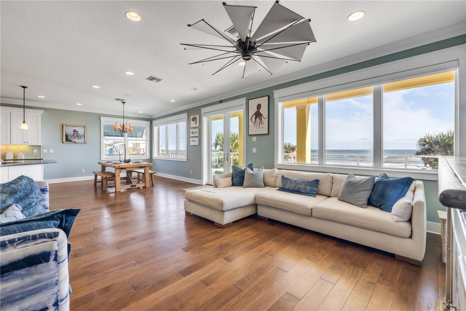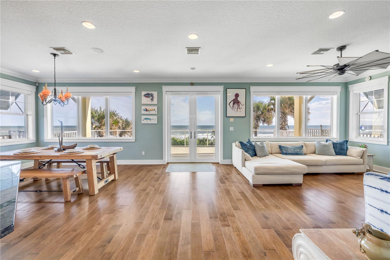 Experience elevated coastal living at 6101 Turtlemound, a luxury beachside retreat in sought-after New Smyrna Beach offering private walk-over access to the Atlantic Ocean. Built with poured concrete construction on all three floors, this exceptional 5-bedroom, 5-bathroom residence delivers durability, elegance, and effortless beachside living. Enjoy sweeping ocean views from both the primary suite and a guest bedroom. Inside, premium finishes set the tone, including wood floors throughout, multi-piece custom moldings, and tongue-and-groove ceiling accents. The home is anchored by a chef’s kitchen, ideal for entertaining after long days on the sand. A standout 16’ x 28’ bunk room with kitchenette and full bath offers exceptional flexibility for guests or multi-generational living. Additional highlights include a balcony pool, crow’s nest with elevated coastal views, and an elevator providing convenient access to every level. Thoughtful oversized fully air-conditioned 2-car garage, a propane tankless water heater, central vacuum system, and an oceanside storage room perfect for easy beach cleanup. Whether you’re watching dolphins from the wrap-around porches or enjoying sunsets over the Indian River from the west-facing decks, this home offers a rare, breathtaking perspective of Florida’s natural beauty. Perfectly located along Turtlemound Road, you’re minutes from pristine beaches, dining, shopping, and the relaxed charm of New Smyrna Beach. Vacant lot to the north is available MLS #NS1086393 Schedule your private showing today and experience coastal living at its finest.