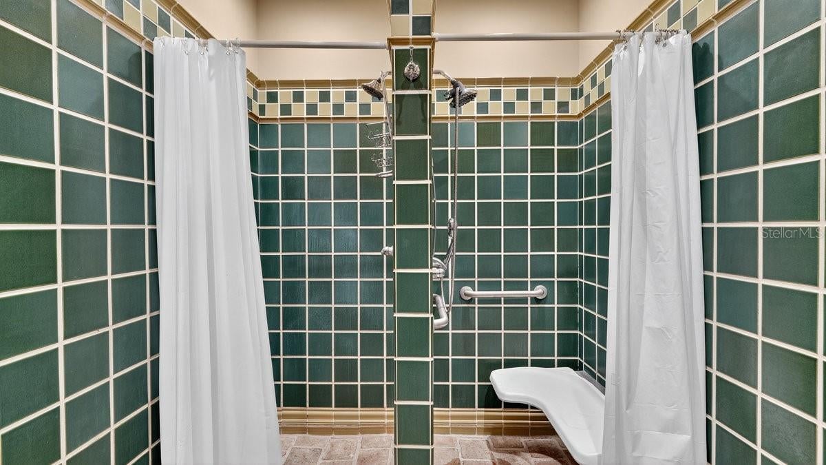 - Built-in Features, Ceiling Fans(s), Crown Molding, Eat-in Kitchen, Elevator, High Ceilings, Living Room/Dining Room Combo, Open Floorplan, Primary Bedroom Main Floor, Sauna, Solid Wood Cabinets, Split Bedroom, Stone Counters, Thermostat, Walk-In Closet(s), Window Treatments