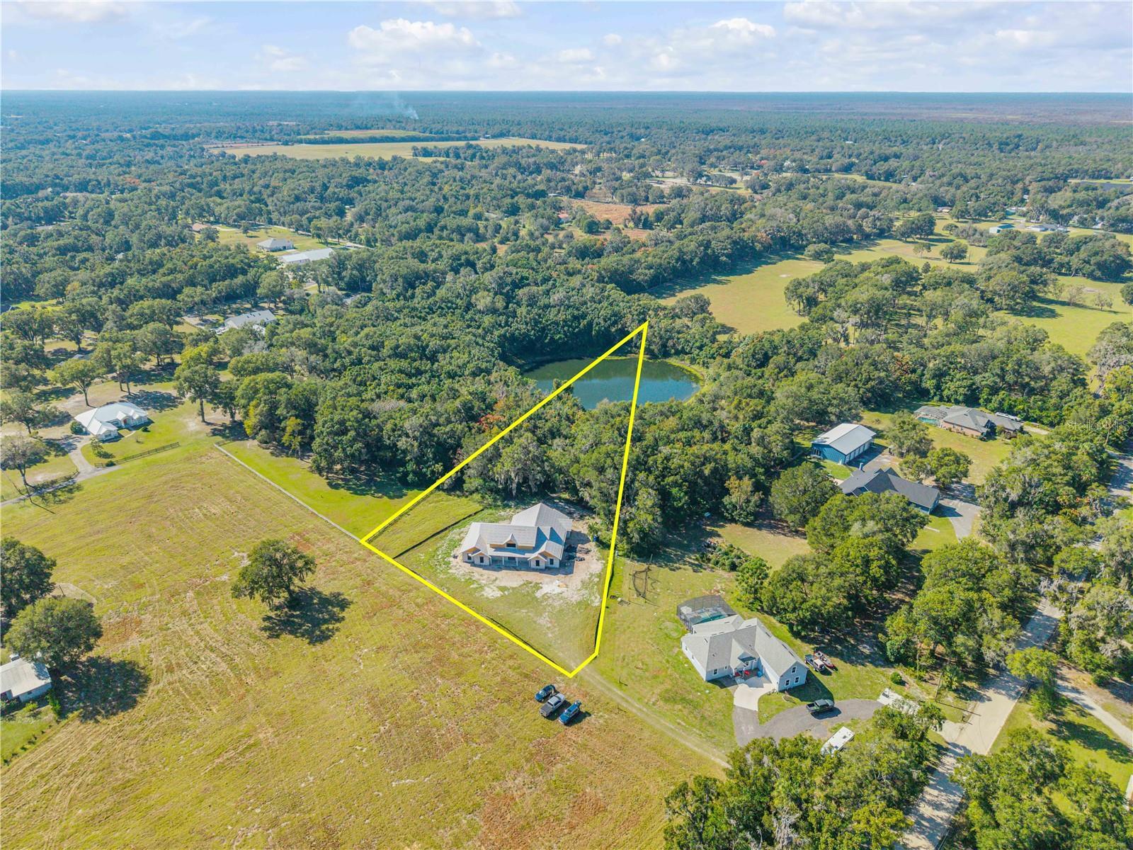 Pre-Construction. To be built. LUXURY NEW CONSTRUCTION ON 2.5 ACRES: NO HOA & A-3 ZONING! Escape to your private oasis in highly-desirable DeLand! This brand-new, custom-built estate offers the rare combination of private country living on 2.5 ACRES with the convenience of being just minutes from Historic Downtown, Stetson University, and top-rated schools. Enjoy serene mornings surrounded by historic oaks and regular deer sightings—this is the best of both worlds! This spectacular 4-bedroom, 3.5-bath residence boasts 3,333 sq. ft. of living space (4,965 sq. ft. total under roof). Designed for modern luxury and entertaining, the massive, open-concept layout is dramatically enhanced by STUNNING VAULTED CEILINGS throughout the main living area, creating an incredible sense of light and scale. The gourmet kitchen is a chef's dream, featuring a truly grand center island, two sinks, and a dedicated beverage center. The spacious, light-filled walk-in pantry includes a window overlooking the property. The kitchen flows seamlessly into the immense dining and entertainment area, which is perfect for large gatherings and showcases a stunning 12-foot built-in bar with elegant shelving to display your finest collection of wine, spirits, and glassware. The home offers exceptional sleeping arrangements, including a Luxurious Primary Suite featuring its own VAULTED CEILING and a spa-like bathroom with double vanity and an impressive double shower. A perfectly integrated walk-in closet connects directly to the laundry room for unmatched convenience. Guests will enjoy the Spacious Junior Suite with its own walk-in closet and beautiful attached full bathroom, alongside two additional large guest rooms that share a well-appointed guest bathroom. Florida living is optimized with EXPANSIVE PORCH AREAS that provide plenty of space for outdoor dining, lounging, and fully enjoying the peaceful setting. Functionality is paramount, with a dedicated front-of-house office space for quiet work, and a utility wing featuring a large mudroom and coat closet leading to an extended 2-car garage with ample room for storage and bikes. Tucked away on a quiet road, enjoy only the sounds of nature, yet maintain quick access to all local amenities. With No HOA or deed restrictions here, you have the freedom to bring your boat, RV, or dreams! Don't miss the opportunity to claim this magnificent property. Schedule your private hard-hat tour today!