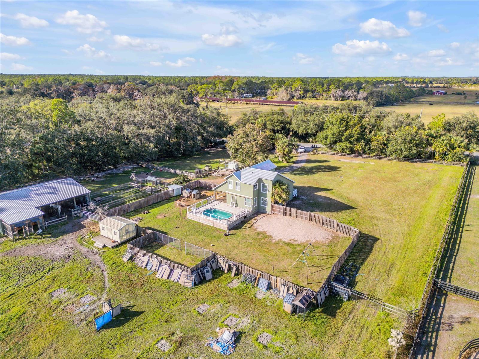 Discover a rare opportunity to own 10 acres of equestrian-friendly property in beautiful New Smyrna Beach—the true value here is the location and the ability to keep your horses on your own land while still being just minutes from the coast. This expansive estate offers the perfect blend of privacy, convenience, and coastal living, all less than 20 minutes from the beach and the charming shops and restaurants of downtown. Designed with horse lovers in mind, the property features a 50' x 40' barn with 3 stalls, a tack room, and its own bathroom, along with four separate fenced pastures for easy rotation and grazing. You can even watch your horses right from your bedroom window, creating a daily connection to the lifestyle you love. Additional agricultural enhancements include a 20' x 30' hard-polymer greenhouse, ideal for year-round growing, and a peaceful pond that adds to the property's natural charm. The inviting 4-bedroom, 2.5-bath home offers comfortable living and a seamless indoor-outdoor flow, highlighted by a refreshing pool perfect for relaxing or entertaining. Practical upgrades abound, including a shallow hand-pump well, a whole-house salt water treatment system, and separate sewer systems for both the main home and an RV—providing exceptional flexibility for guests or extended stays. This is more than a home; it’s a rare coastal equestrian haven where you can enjoy wide-open space, modern comforts, and the freedom to live the horse-friendly lifestyle you’ve always wanted—all within minutes of the beach.