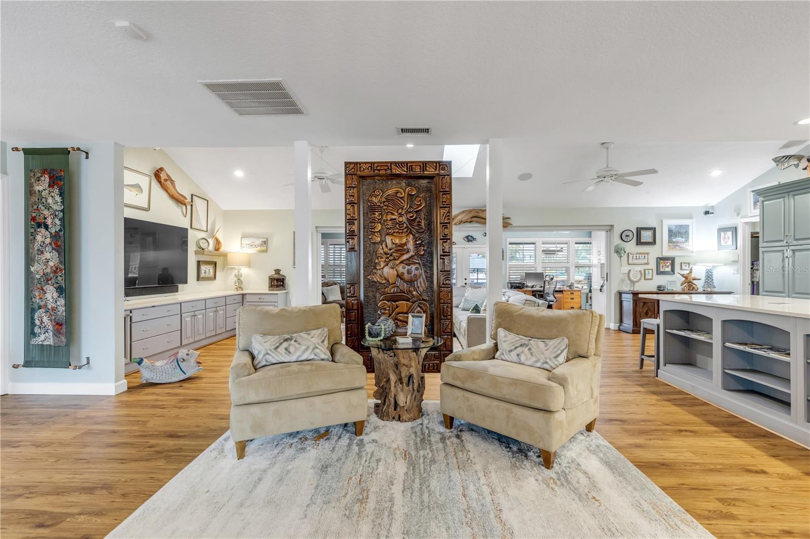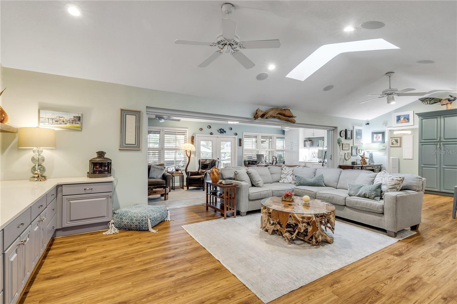 - Built-in Features, Cathedral Ceiling(s), Ceiling Fans(s), Eat-in Kitchen, Living Room/Dining Room Combo, Open Floorplan, Primary Bedroom Main Floor, Solid Wood Cabinets, Split Bedroom, Stone Counters