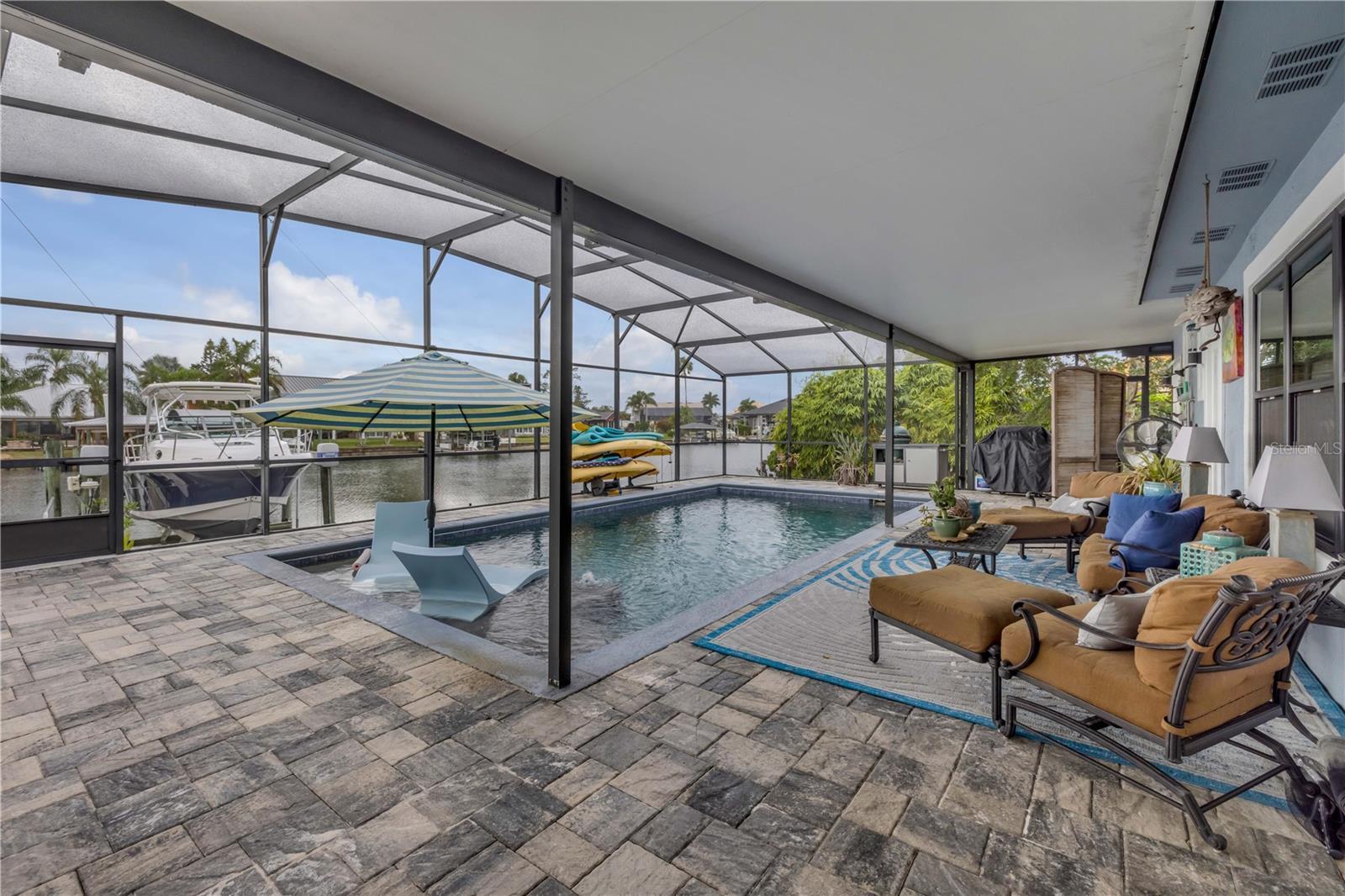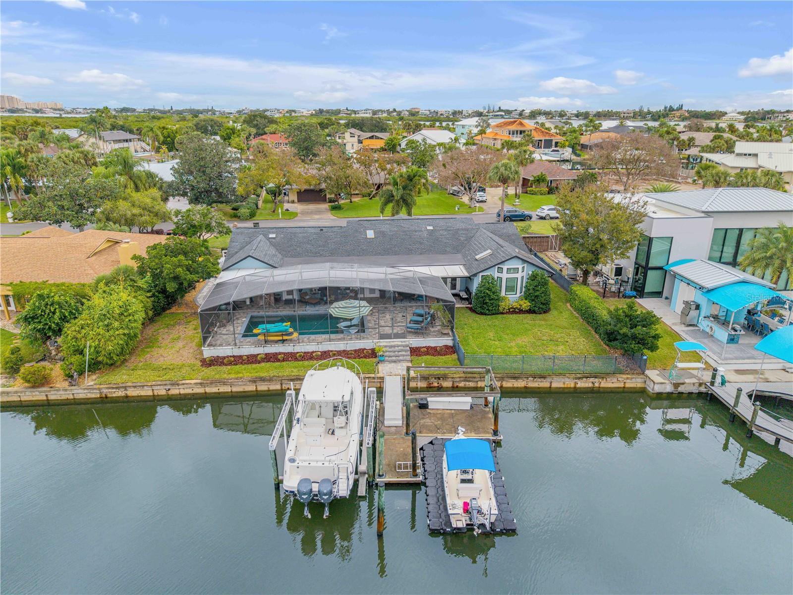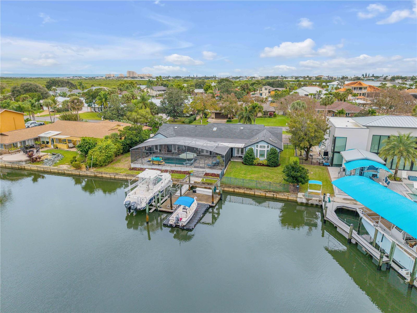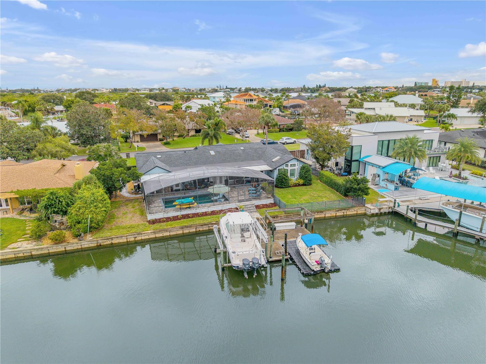 Under contract-accepting backup offers. Welcome to a one-of-a-kind Deep Water Estate in the heart of Venezia; a rare NSB Homes offering blending Luxury Living with the relaxed Coastal Lifestyle that makes New Smyrna Beach so special. From the moment you enter, you’ll feel the difference. This is not your average canal front property. It is a Lifestyle Estate, completely reimagined through a top to bottom renovation with every upgrade thoughtfully planned. The Open Concept layout offers effortless flow throughout living spaces, striking the perfect balance between spaciousness and that warm, inviting atmosphere that turns a House into a Home. At the heart of it all is a chef’s dream, a Gourmet Kitchen featuring top of the line Viking appliances, including Gas Range, Quartz Countertops, and Custom Cabinetry designed with function and style in mind. There is an abundance of storage, a built-in cookbook display, and a dedicated work and prep area that makes entertaining feel effortless. Just off the kitchen, the oversized dining area creates the perfect setting for Sunday dinners, family gatherings, or casual brunches after a morning on the water. And what a Backyard to come home to. Step outside to your private Saltwater Pool, beautifully screened and installed in 2018, heated by propane for year-round enjoyment. Just a few feet beyond, your waterfront playground awaits, with a 16,000 LB boat lift, a floating dock, and a 10x20 Jet Dock drive-on system ready for your offshore adventures. You’ll love the ease of stepping onto your boat for a Sunset Cruise, a spontaneous Island Party, or early-morning Fishing. All just five minutes from the Intracoastal with no bridges in your way. The upgrades here are extensive and impressive: a 2024 Lennox 22 SEER main house A/C and separate primary bedroom unit, heated towel racks in primary bath, a Whole House Generator, hurricane impact windows installed in 2020, a 30 year architectural shingle roof from 2022, full Spray Foam Insulation throughout the attic for year round energy efficiency, and plantation shutters. In 2017, the entire home was rewired with an upgraded electrical panel, and in 2023, the home was completely replumbed with emergency shut offs, pressure valves at all exterior hose bibs, and a sewer clean out. Details continue with Luxury Vinyl Plank flooring in main living areas, custom tile work in bathrooms, plush carpeting and Mini Splits in guest bedrooms, and both pool deck and driveway finished with elegant Pavers. Even the garage has been elevated, featuring new Epoxy Floors and a secondary storage closet. Storage is no longer a problem. A massive interior storage room keeps all your Beach Toys and equipment tucked away, not in your garage. The Laundry Room is oversized, private, and incredibly functional, making everyday life a little easier. Nestled on a quiet Cul de Sac, the property boasts approximately 105 feet of Waterfront on a wide, deep water canal measuring over 100 feet across, a true rarity in New Smyrna Beach. The setting offers Privacy and Convenience, combining peaceful living with instant water access. Offered at $2,449,000, this property is a Curated Experience. A luxury waterfront home where nothing has been overlooked. Built, renovated, and presented with pride by NSB Homes, this is the opportunity you've been waiting for. Offered for sale separately from sale of home, Robalo 29' R305 Walkaround. Info sheet attached with info about boat available for sale outside of closing.