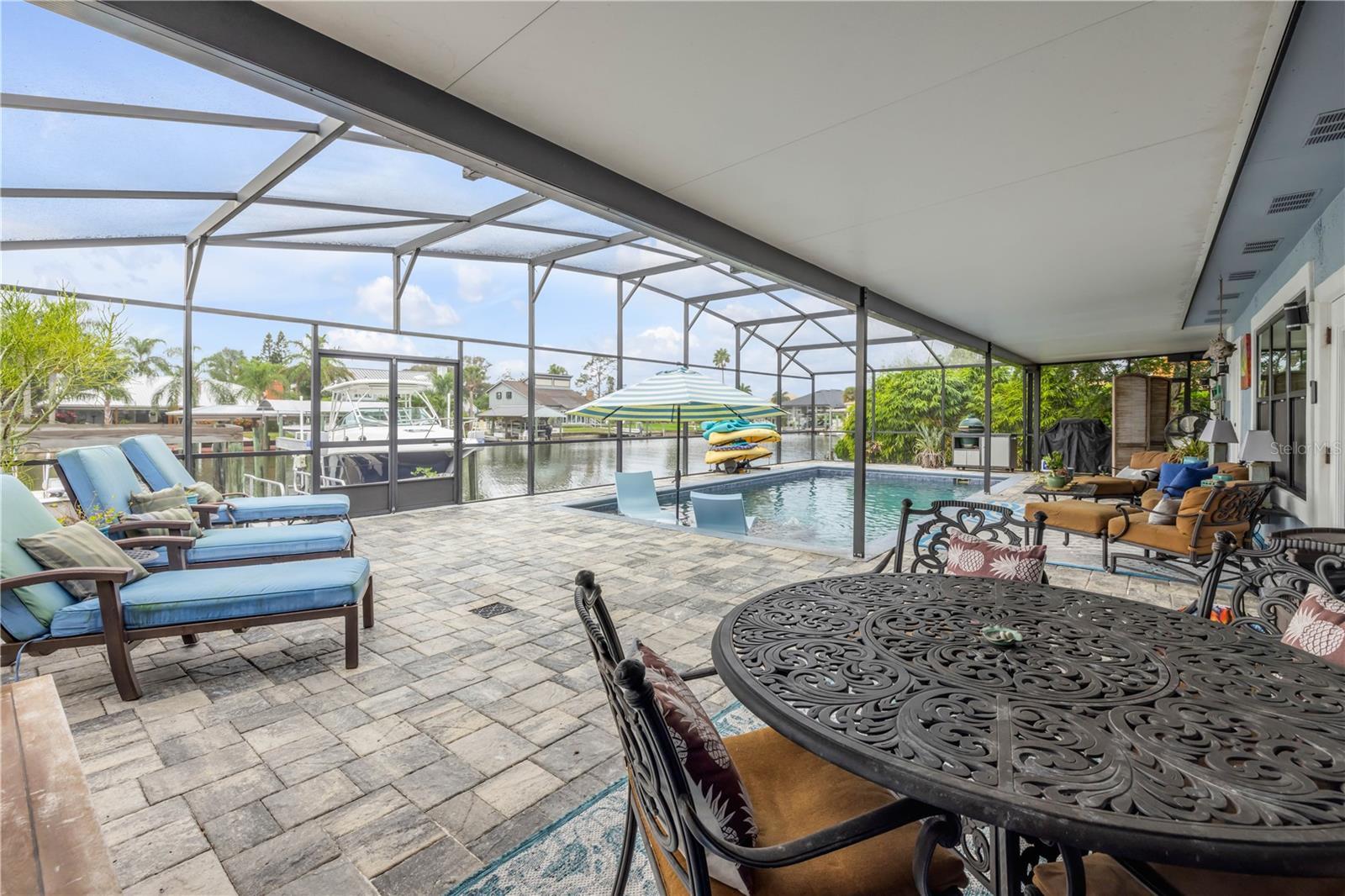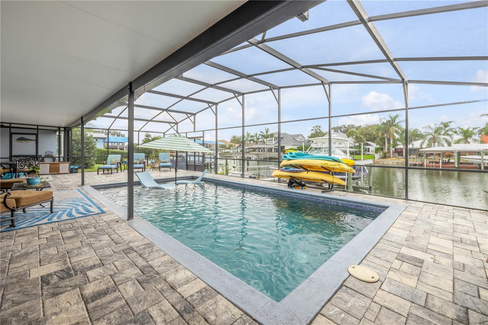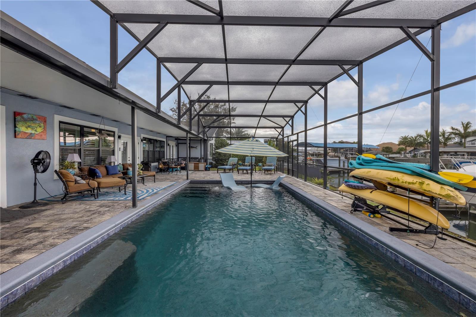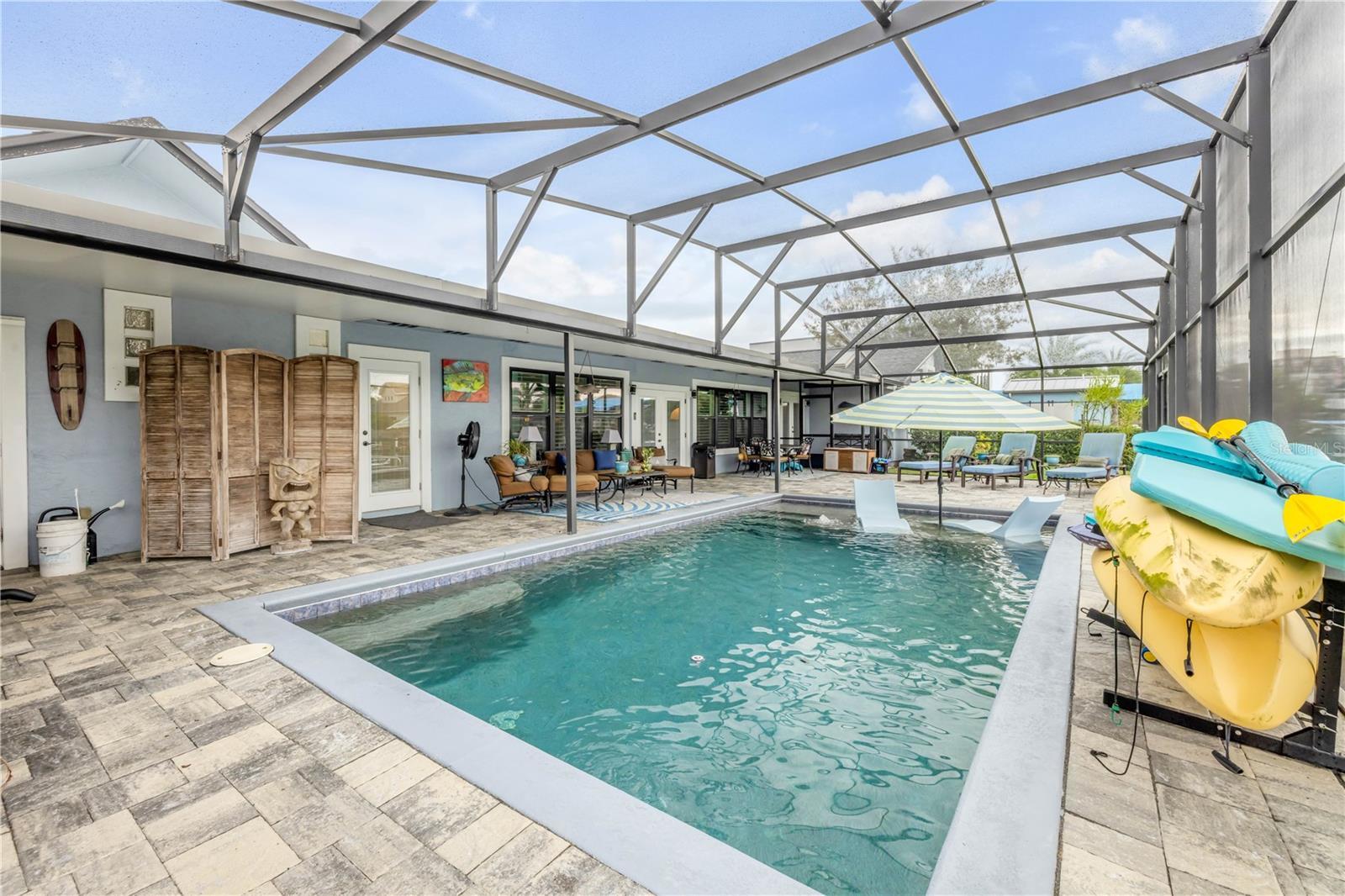 Under contract-accepting backup offers. Welcome to a one-of-a-kind Deep Water Estate in the heart of Venezia; a rare NSB Homes offering blending Luxury Living with the relaxed Coastal Lifestyle that makes New Smyrna Beach so special. From the moment you enter, you’ll feel the difference. This is not your average canal front property. It is a Lifestyle Estate, completely reimagined through a top to bottom renovation with every upgrade thoughtfully planned. The Open Concept layout offers effortless flow throughout living spaces, striking the perfect balance between spaciousness and that warm, inviting atmosphere that turns a House into a Home. At the heart of it all is a chef’s dream, a Gourmet Kitchen featuring top of the line Viking appliances, including Gas Range, Quartz Countertops, and Custom Cabinetry designed with function and style in mind. There is an abundance of storage, a built-in cookbook display, and a dedicated work and prep area that makes entertaining feel effortless. Just off the kitchen, the oversized dining area creates the perfect setting for Sunday dinners, family gatherings, or casual brunches after a morning on the water. And what a Backyard to come home to. Step outside to your private Saltwater Pool, beautifully screened and installed in 2018, heated by propane for year-round enjoyment. Just a few feet beyond, your waterfront playground awaits, with a 16,000 LB boat lift, a floating dock, and a 10x20 Jet Dock drive-on system ready for your offshore adventures. You’ll love the ease of stepping onto your boat for a Sunset Cruise, a spontaneous Island Party, or early-morning Fishing. All just five minutes from the Intracoastal with no bridges in your way. The upgrades here are extensive and impressive: a 2024 Lennox 22 SEER main house A/C and separate primary bedroom unit, heated towel racks in primary bath, a Whole House Generator, hurricane impact windows installed in 2020, a 30 year architectural shingle roof from 2022, full Spray Foam Insulation throughout the attic for year round energy efficiency, and plantation shutters. In 2017, the entire home was rewired with an upgraded electrical panel, and in 2023, the home was completely replumbed with emergency shut offs, pressure valves at all exterior hose bibs, and a sewer clean out. Details continue with Luxury Vinyl Plank flooring in main living areas, custom tile work in bathrooms, plush carpeting and Mini Splits in guest bedrooms, and both pool deck and driveway finished with elegant Pavers. Even the garage has been elevated, featuring new Epoxy Floors and a secondary storage closet. Storage is no longer a problem. A massive interior storage room keeps all your Beach Toys and equipment tucked away, not in your garage. The Laundry Room is oversized, private, and incredibly functional, making everyday life a little easier. Nestled on a quiet Cul de Sac, the property boasts approximately 105 feet of Waterfront on a wide, deep water canal measuring over 100 feet across, a true rarity in New Smyrna Beach. The setting offers Privacy and Convenience, combining peaceful living with instant water access. Offered at $2,449,000, this property is a Curated Experience. A luxury waterfront home where nothing has been overlooked. Built, renovated, and presented with pride by NSB Homes, this is the opportunity you've been waiting for. Offered for sale separately from sale of home, Robalo 29' R305 Walkaround. Info sheet attached with info about boat available for sale outside of closing.