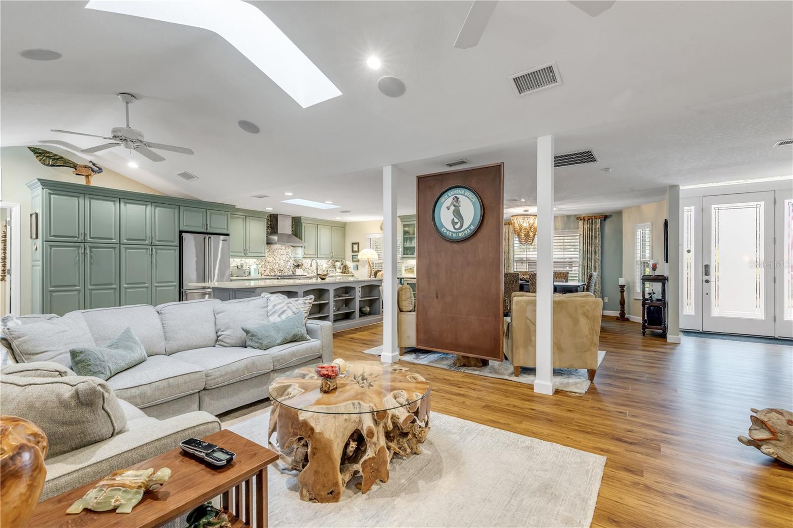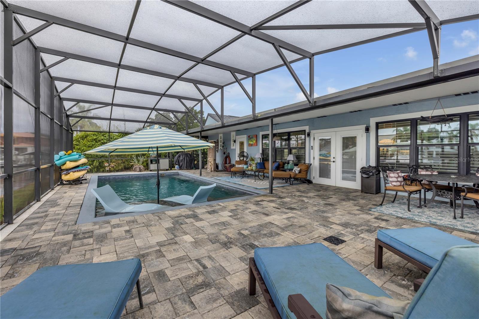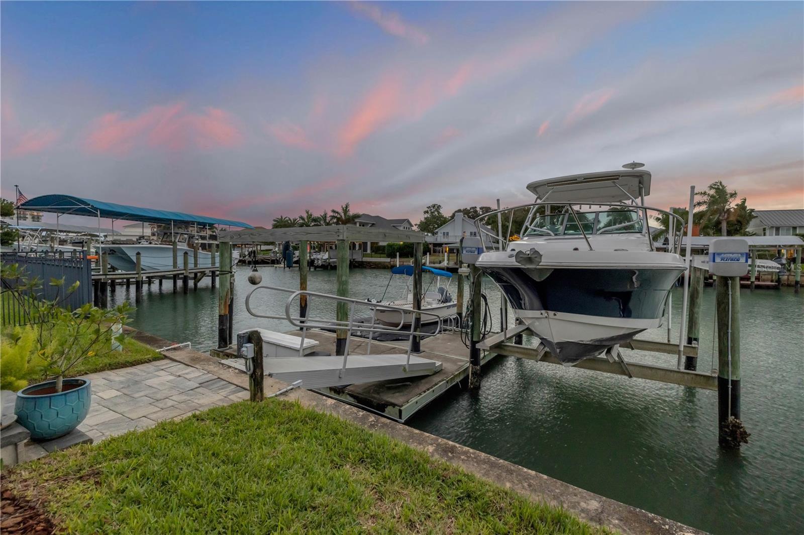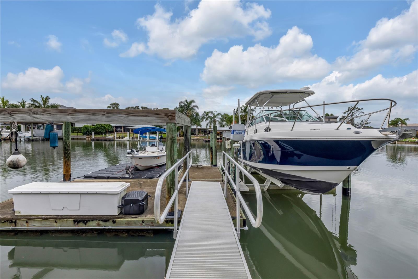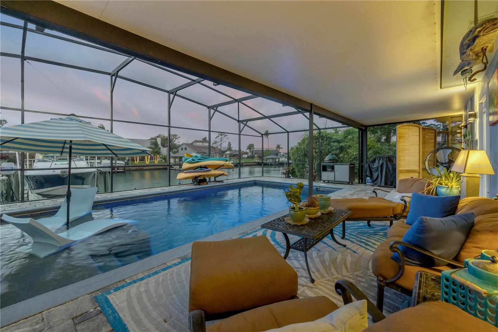 Under contract-accepting backup offers. Welcome to a one-of-a-kind Deep Water Estate in the heart of Venezia; a rare NSB Homes offering blending Luxury Living with the relaxed Coastal Lifestyle that makes New Smyrna Beach so special. From the moment you enter, you’ll feel the difference. This is not your average canal front property. It is a Lifestyle Estate, completely reimagined through a top to bottom renovation with every upgrade thoughtfully planned. The Open Concept layout offers effortless flow throughout living spaces, striking the perfect balance between spaciousness and that warm, inviting atmosphere that turns a House into a Home. At the heart of it all is a chef’s dream, a Gourmet Kitchen featuring top of the line Viking appliances, including Gas Range, Quartz Countertops, and Custom Cabinetry designed with function and style in mind. There is an abundance of storage, a built-in cookbook display, and a dedicated work and prep area that makes entertaining feel effortless. Just off the kitchen, the oversized dining area creates the perfect setting for Sunday dinners, family gatherings, or casual brunches after a morning on the water. And what a Backyard to come home to. Step outside to your private Saltwater Pool, beautifully screened and installed in 2018, heated by propane for year-round enjoyment. Just a few feet beyond, your waterfront playground awaits, with a 16,000 LB boat lift, a floating dock, and a 10x20 Jet Dock drive-on system ready for your offshore adventures. You’ll love the ease of stepping onto your boat for a Sunset Cruise, a spontaneous Island Party, or early-morning Fishing. All just five minutes from the Intracoastal with no bridges in your way. The upgrades here are extensive and impressive: a 2024 Lennox 22 SEER main house A/C and separate primary bedroom unit, heated towel racks in primary bath, a Whole House Generator, hurricane impact windows installed in 2020, a 30 year architectural shingle roof from 2022, full Spray Foam Insulation throughout the attic for year round energy efficiency, and plantation shutters. In 2017, the entire home was rewired with an upgraded electrical panel, and in 2023, the home was completely replumbed with emergency shut offs, pressure valves at all exterior hose bibs, and a sewer clean out. Details continue with Luxury Vinyl Plank flooring in main living areas, custom tile work in bathrooms, plush carpeting and Mini Splits in guest bedrooms, and both pool deck and driveway finished with elegant Pavers. Even the garage has been elevated, featuring new Epoxy Floors and a secondary storage closet. Storage is no longer a problem. A massive interior storage room keeps all your Beach Toys and equipment tucked away, not in your garage. The Laundry Room is oversized, private, and incredibly functional, making everyday life a little easier. Nestled on a quiet Cul de Sac, the property boasts approximately 105 feet of Waterfront on a wide, deep water canal measuring over 100 feet across, a true rarity in New Smyrna Beach. The setting offers Privacy and Convenience, combining peaceful living with instant water access. Offered at $2,449,000, this property is a Curated Experience. A luxury waterfront home where nothing has been overlooked. Built, renovated, and presented with pride by NSB Homes, this is the opportunity you've been waiting for. Offered for sale separately from sale of home, Robalo 29' R305 Walkaround. Info sheet attached with info about boat available for sale outside of closing.