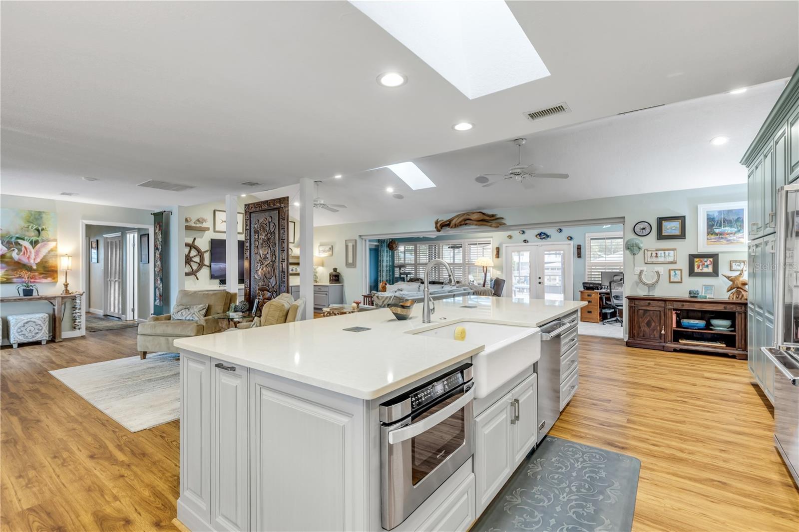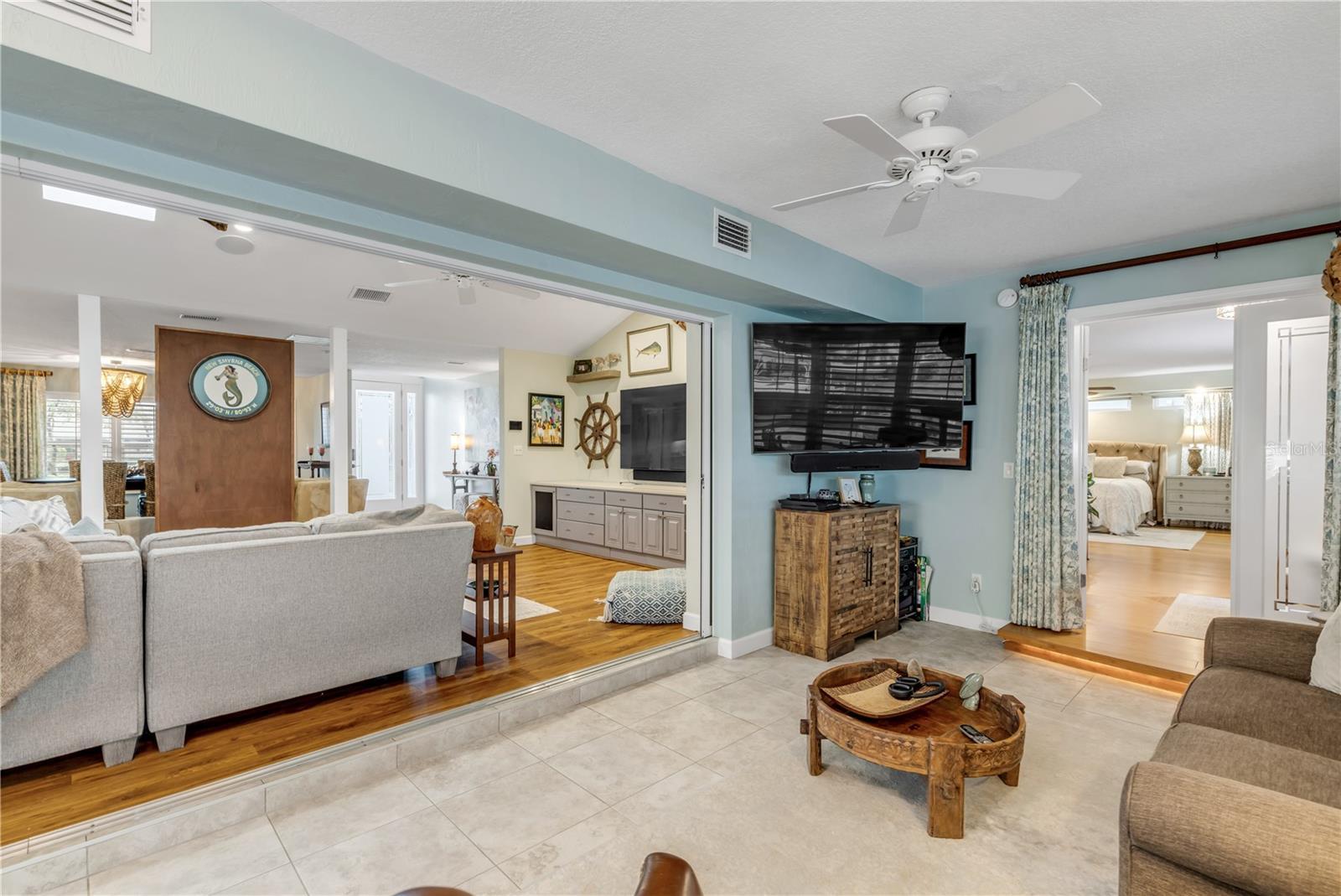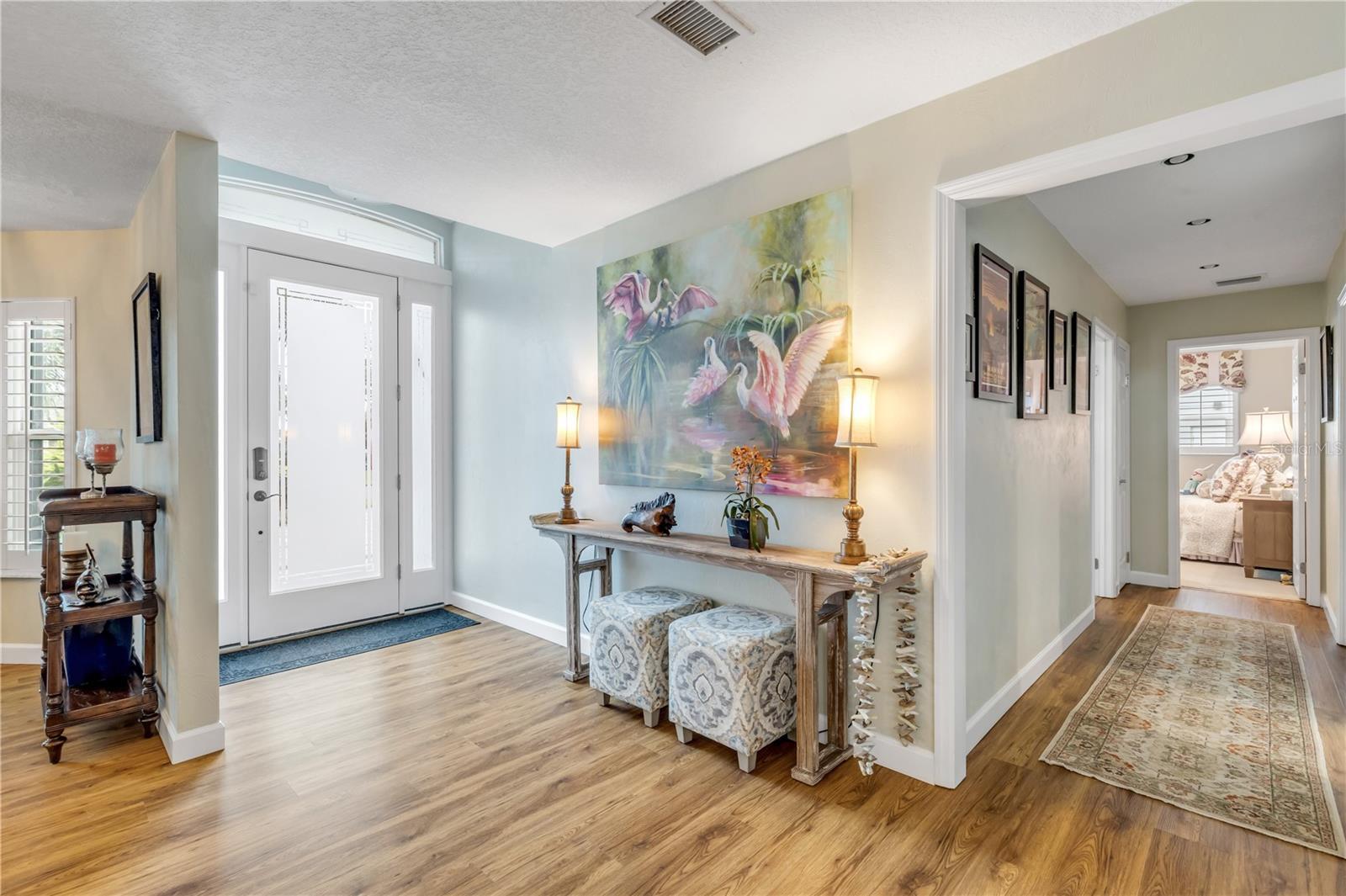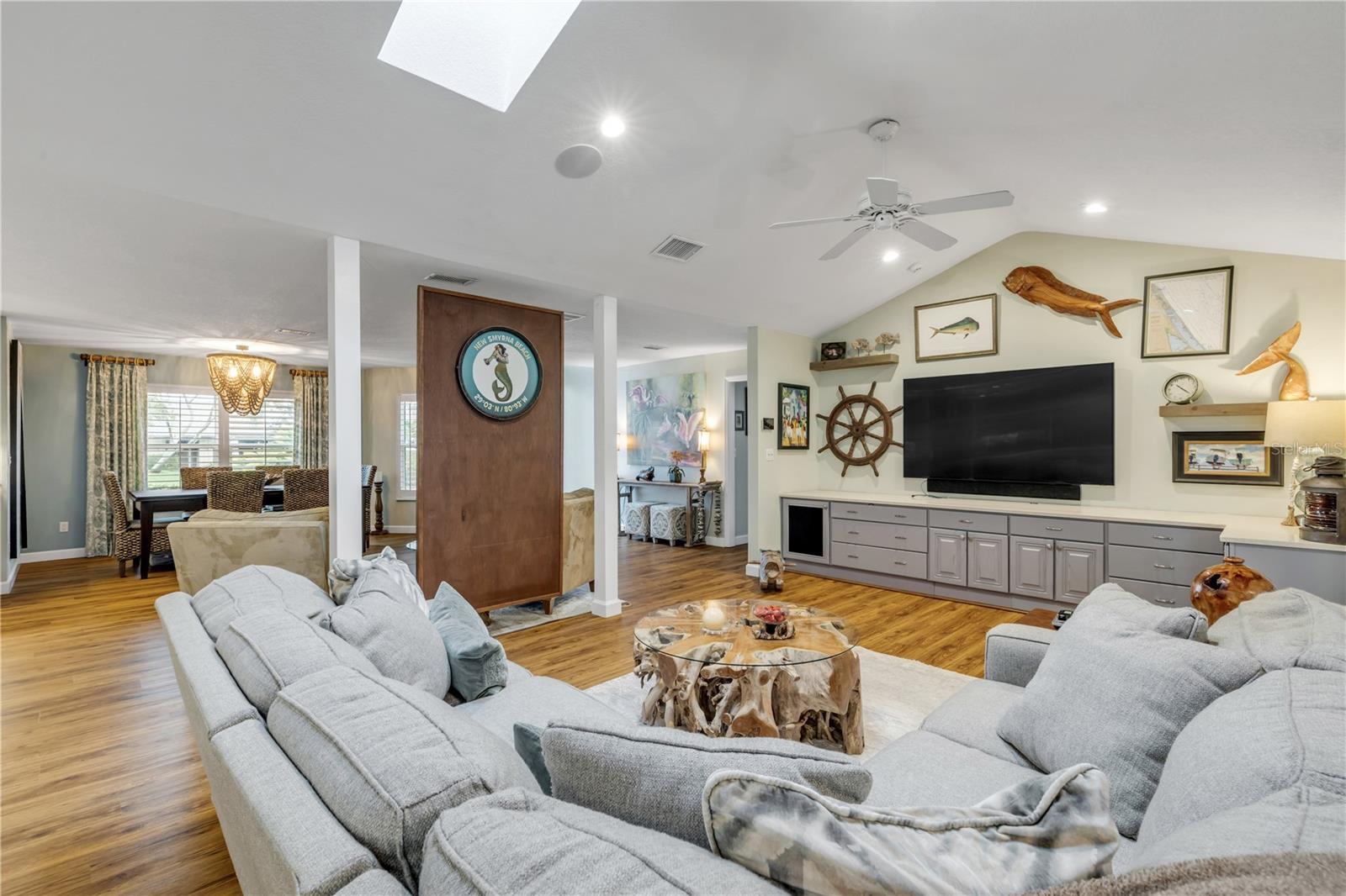 Under contract-accepting backup offers. Welcome to a one-of-a-kind Deep Water Estate in the heart of Venezia; a rare NSB Homes offering blending Luxury Living with the relaxed Coastal Lifestyle that makes New Smyrna Beach so special. From the moment you enter, you’ll feel the difference. This is not your average canal front property. It is a Lifestyle Estate, completely reimagined through a top to bottom renovation with every upgrade thoughtfully planned. The Open Concept layout offers effortless flow throughout living spaces, striking the perfect balance between spaciousness and that warm, inviting atmosphere that turns a House into a Home. At the heart of it all is a chef’s dream, a Gourmet Kitchen featuring top of the line Viking appliances, including Gas Range, Quartz Countertops, and Custom Cabinetry designed with function and style in mind. There is an abundance of storage, a built-in cookbook display, and a dedicated work and prep area that makes entertaining feel effortless. Just off the kitchen, the oversized dining area creates the perfect setting for Sunday dinners, family gatherings, or casual brunches after a morning on the water. And what a Backyard to come home to. Step outside to your private Saltwater Pool, beautifully screened and installed in 2018, heated by propane for year-round enjoyment. Just a few feet beyond, your waterfront playground awaits, with a 16,000 LB boat lift, a floating dock, and a 10x20 Jet Dock drive-on system ready for your offshore adventures. You’ll love the ease of stepping onto your boat for a Sunset Cruise, a spontaneous Island Party, or early-morning Fishing. All just five minutes from the Intracoastal with no bridges in your way. The upgrades here are extensive and impressive: a 2024 Lennox 22 SEER main house A/C and separate primary bedroom unit, heated towel racks in primary bath, a Whole House Generator, hurricane impact windows installed in 2020, a 30 year architectural shingle roof from 2022, full Spray Foam Insulation throughout the attic for year round energy efficiency, and plantation shutters. In 2017, the entire home was rewired with an upgraded electrical panel, and in 2023, the home was completely replumbed with emergency shut offs, pressure valves at all exterior hose bibs, and a sewer clean out. Details continue with Luxury Vinyl Plank flooring in main living areas, custom tile work in bathrooms, plush carpeting and Mini Splits in guest bedrooms, and both pool deck and driveway finished with elegant Pavers. Even the garage has been elevated, featuring new Epoxy Floors and a secondary storage closet. Storage is no longer a problem. A massive interior storage room keeps all your Beach Toys and equipment tucked away, not in your garage. The Laundry Room is oversized, private, and incredibly functional, making everyday life a little easier. Nestled on a quiet Cul de Sac, the property boasts approximately 105 feet of Waterfront on a wide, deep water canal measuring over 100 feet across, a true rarity in New Smyrna Beach. The setting offers Privacy and Convenience, combining peaceful living with instant water access. Offered at $2,449,000, this property is a Curated Experience. A luxury waterfront home where nothing has been overlooked. Built, renovated, and presented with pride by NSB Homes, this is the opportunity you've been waiting for. Offered for sale separately from sale of home, Robalo 29' R305 Walkaround. Info sheet attached with info about boat available for sale outside of closing.