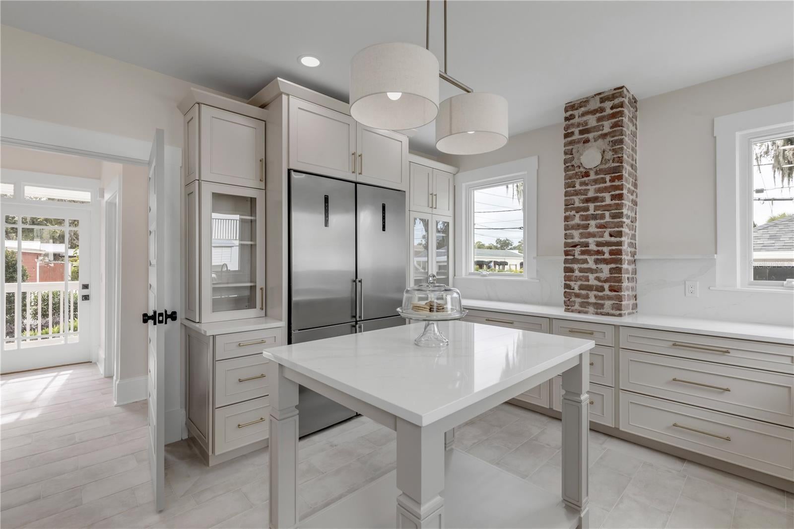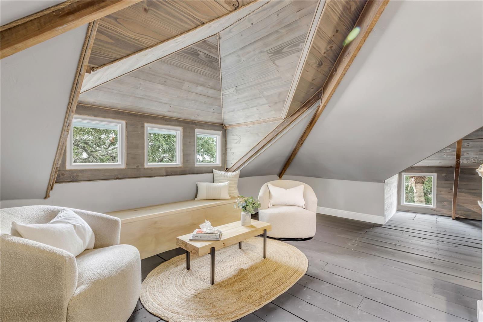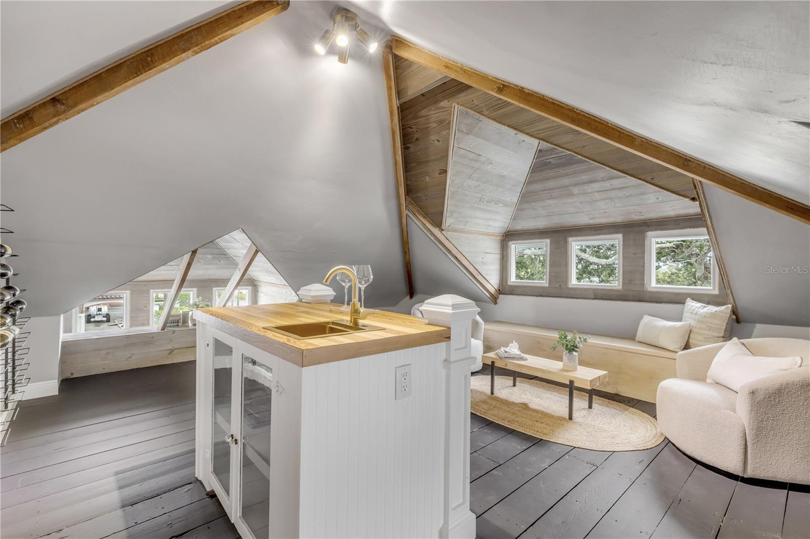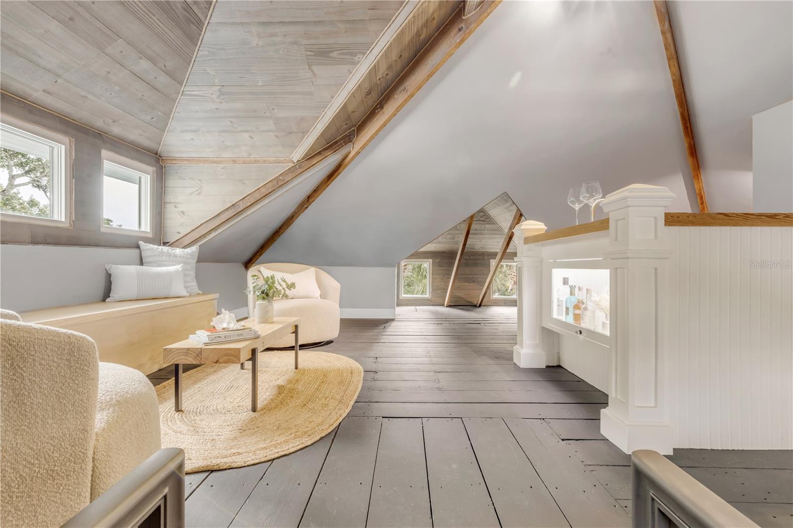 Historic Riverfront Gem – Modern Luxury in the Heart of New Smyrna Beach. Step into a piece of New Smyrna Beach history with this beautifully preserved 1958 riverfront home artfully updated for today’s modern lifestyle. Formerly the ACA Harris House, this four-story residence blends timeless craftsmanship with elegant contemporary design. Original refinished hardwood floors flow throughout this one of a kind four story residence. This home has been completely revitalized from top to bottom. Updates include a yr 2025 roof, HVAC system, plumbing, gas, 200-amp electrical service, impact-rated windows, a modern kitchen featuring premium Bosch appliances w/ a dual energy oven, new master suite with bath and so much more. Every detail has been carefully considered — from the luxury-finished bathrooms and lighting to the handcrafted workmanship of the doors and window frames. This thoughtful layout includes a full basement with abundant storage, a spacious main living level with a welcoming sun porch and fireplace, four bedrooms, and a top-floor speakeasy complete with a full bar, wine racks, and cozy seating — perfect for entertaining or relaxing with river views. Additional highlights include a roomy two-car garage, porte-cochere, and yr 2025 concrete driveway. Large covered front porch for enjoying the coastal breeze, a sprinkler system, with room for a pool (drawings available) add even more value. Nestled in the Mixed-Use District, this property offers incredible flexibility — ideal for a primary residence, Airb&b, (bed & breakfast), or even a personal art gallery this is living space combined for exceptional Urban living. Why not have the best of both worlds? Enjoy tranquil river views, historic oaks, breezes off the Intracoastal waters, and old Florida charm, all within walking distance of Canal Street’s boutique shopping, dining, and vibrant art events. This rare offering perfectly captures the essence of historic New Smyrna Beach living — where classic architecture meets modern comfort and creative opportunity. This is a wonderful opportunity to own a true riverfront masterpiece in one of the area’s most desirable and dynamic neighborhoods. Come see today...