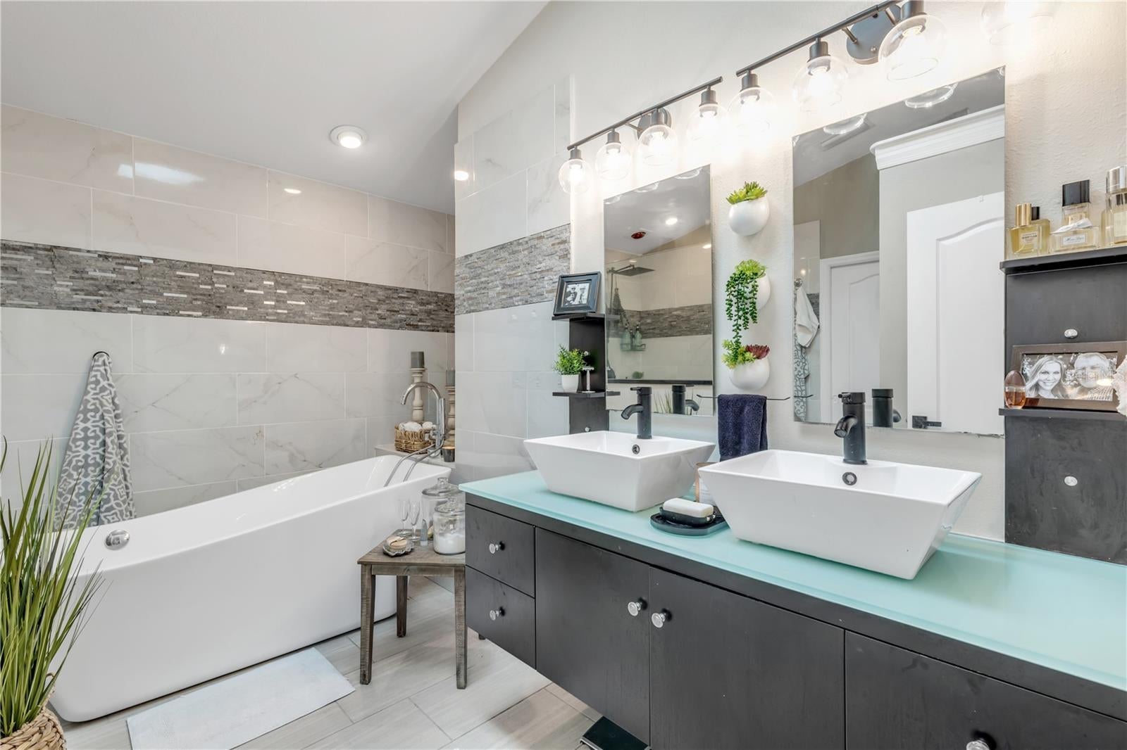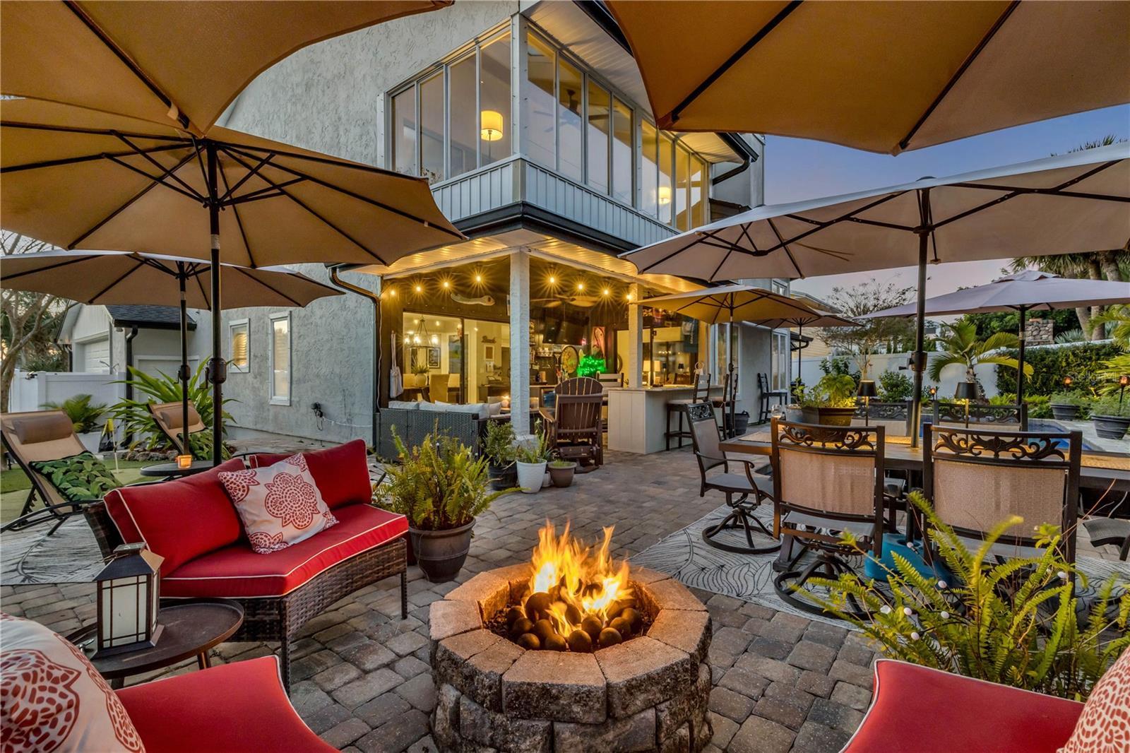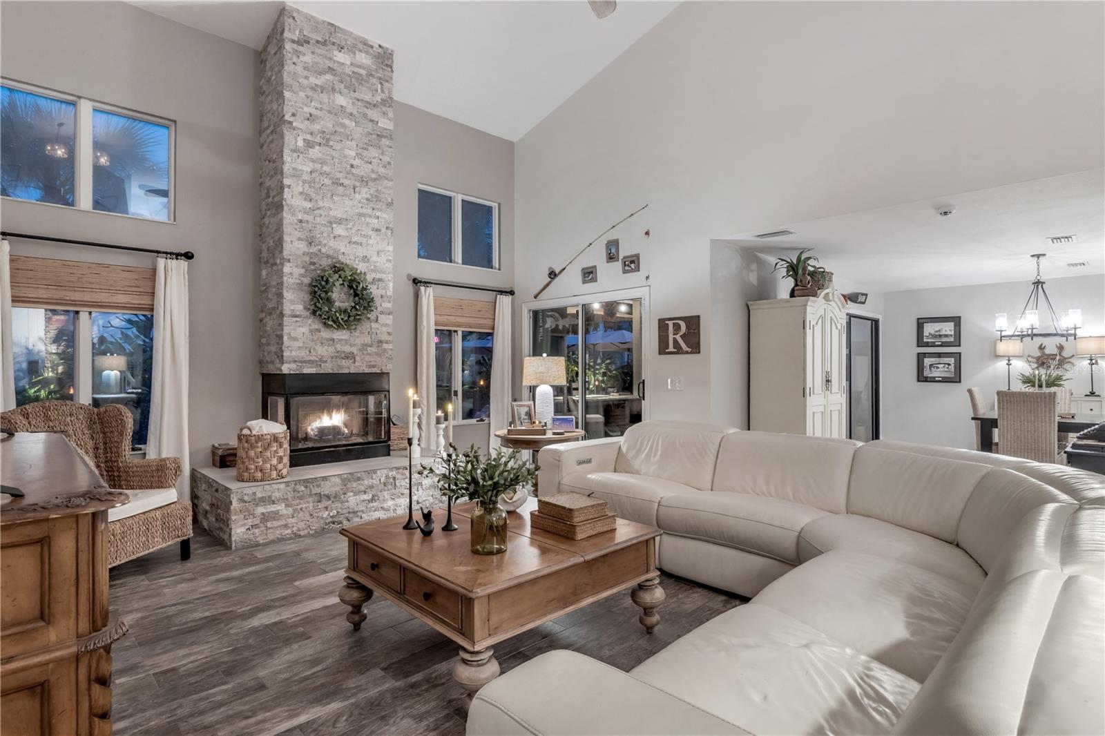 Welcome to your coastal retreat in Silver Sands, New Smyrna Beach—just two homes from the Van Kleeck beach walkover and only steps to the sand. Designed for laid-back living and effortless entertaining, this 4-bedroom, 4.5-bath home blends upscale upgrades with a relaxed coastal vibe. The outdoor living space is a true showstopper. Fire up the gas fireplace, mix drinks at the bar, challenge friends on the putting green, or host gatherings around the large, newly resurfaced pool complete with relaxing sun shelf. A paver pool deck and driveway, custom landscape retention walls, and lush tropical landscaping and designer lighting create a private, resort-style setting with plenty of room to relax or entertain. Inside, the open floor plan is bright and welcoming, featuring a cozy wood-burning fireplace, soaring vaulted ceilings stunning views of the outside area. Your updated kitchen features on trend granite counters, farmhouse sink, and updated lighting as well as stainless appliances and space for entertaining. Plenty of storage and a coffee bar in your butler’s pantry with attached laundry area and powder bathroom. 2 downstairs bedrooms each with its own ensuite bath, gives everyone their own private space. The semi-spiral staircase invites you upstairs to your owners retreat with large en-suite bath with soaking tub and shower and walk in closet. Sliders lead you out to your private glassed sunroom for enjoying morning coffee or even more private space. Also upstairs is your 4th bedroom with its own attached bath and a loft space great for an office or reading area. New exterior paint as well as other thoughtful updates including a new roof (2025), new hot water heater, two newer A/C units, updated electrical with generator hookup, hurricane shutters, and new soffits and gutters—making coastal living easy and low maintenance. Pull your boat right into the pull-through garage with 9 foot doors on each side. Also a great place to park the golf cart or store all the beach toys. Located minutes from Flagler Avenue, Canal Street, JB’s Fish Camp, and the Canaveral National Seashore, this home delivers the best of New Smyrna Beach living—sun, sand, and a lifestyle that feels like a permanent vacation.