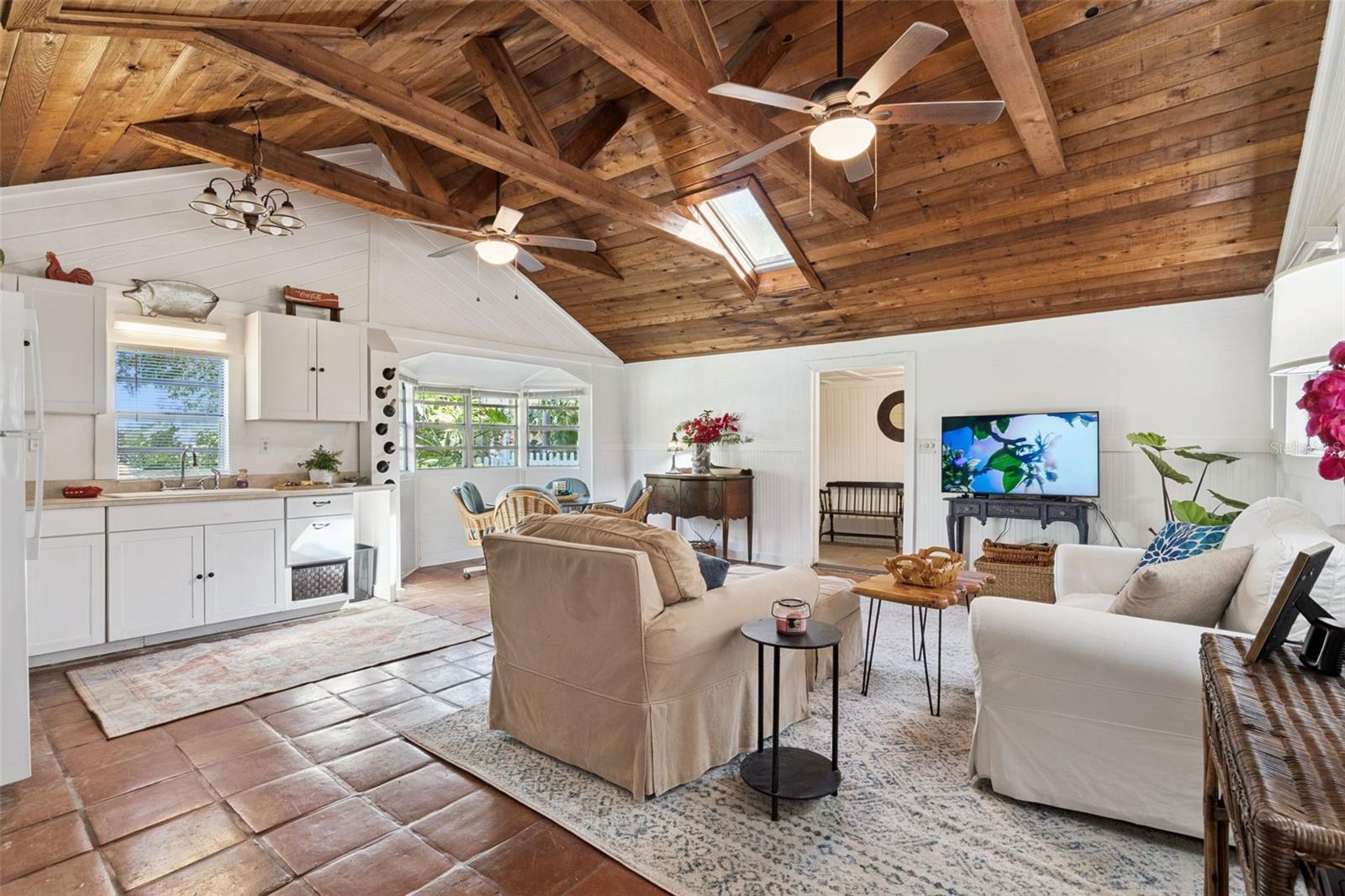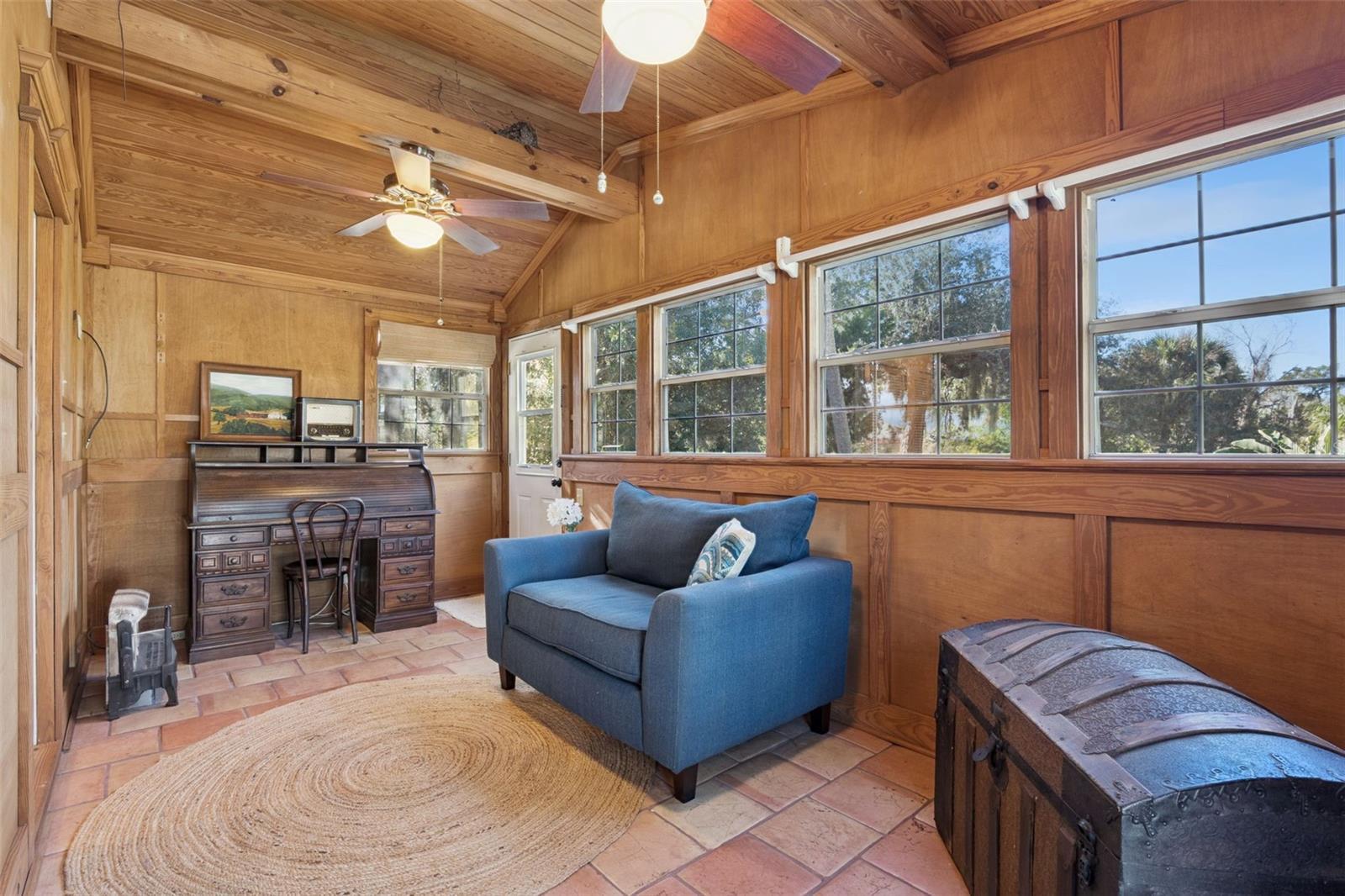 A Grand Estate with Endless Possibilities. Over Half an Acre with Intracoastal River Views! Set on an extraordinary oversized parcel, this remarkable property captures the essence of timeless Old Florida living. The main residence offers spectacular water views from the first-floor living room and family room, as well as the upstairs bedroom and bonus room, creating a serene backdrop throughout the home. A charming, detached one-bedroom cottage adds incredible versatility, complete with a full kitchen, bathroom, spacious laundry room with storage, and a screened back porch, ideal for guests, extended family, or a potential pool house. Beautiful wood accents throughout blend classic character with everyday comfort. As you follow the brick walkway to the stately, wide brick front porch, you are immediately welcomed by the home’s majestic presence and enduring charm. Inside, rich hardwood floors, a brick fireplace, elegant crown molding, tongue-and-groove ceilings with wood beams, and a custom kitchen featuring a gas cooktop and built-in oven create an atmosphere of warmth and refined comfort. Stroll the expansive grounds and be inspired by the lush variety of mature foliage, offering both privacy and endless opportunities to create your own outdoor oasis. This is a rare opportunity to own a truly special property, where charm, space, and potential come together in perfect harmony. The main residence is thoughtfully appointed with modern upgrades seamlessly blended into its timeless character. A tankless gas water heater, gas-integrated chef’s cooktop set within the island, built-in oven and microwave, farmhouse sink, and a custom built-in spice rack make the kitchen both beautiful and highly functional. The original kitchen space has been reimagined as an elegant butler’s pantry and bar area, complete with a stainless steel sink, perfect for entertaining. Throughout the home, exquisite wood craftsmanship takes center stage, including raised paneling, crown molding, board-and-batten detailing, and tongue-and-groove ceilings that add texture, depth, and true architectural soul. Natural fiber grasscloth wall coverings introduce warmth, character, and understated sophistication. Upstairs, the Florida room is wrapped in rich natural wood paneling and trim, creating an organic, biophilic retreat. A wall of windows floods the space with natural light while framing serene views of the lush greenery and mature trees that surround this magnificent property. The authentic brick fireplace has been converted to gas, offering both convenience and cozy ambiance. For peace of mind, the south side of the home is hard-wired for a generator. Major system updates include sewer lines replaced in 2022, a new A/C system and all new ductwork in 2023, and a roof replacement in 2019. This breathtaking property offers a rare blend of classic charm, thoughtful upgrades, and expansive outdoor beauty. It is everything you’ve been searching for, don’t wait. This is your opportunity to begin living the dream.