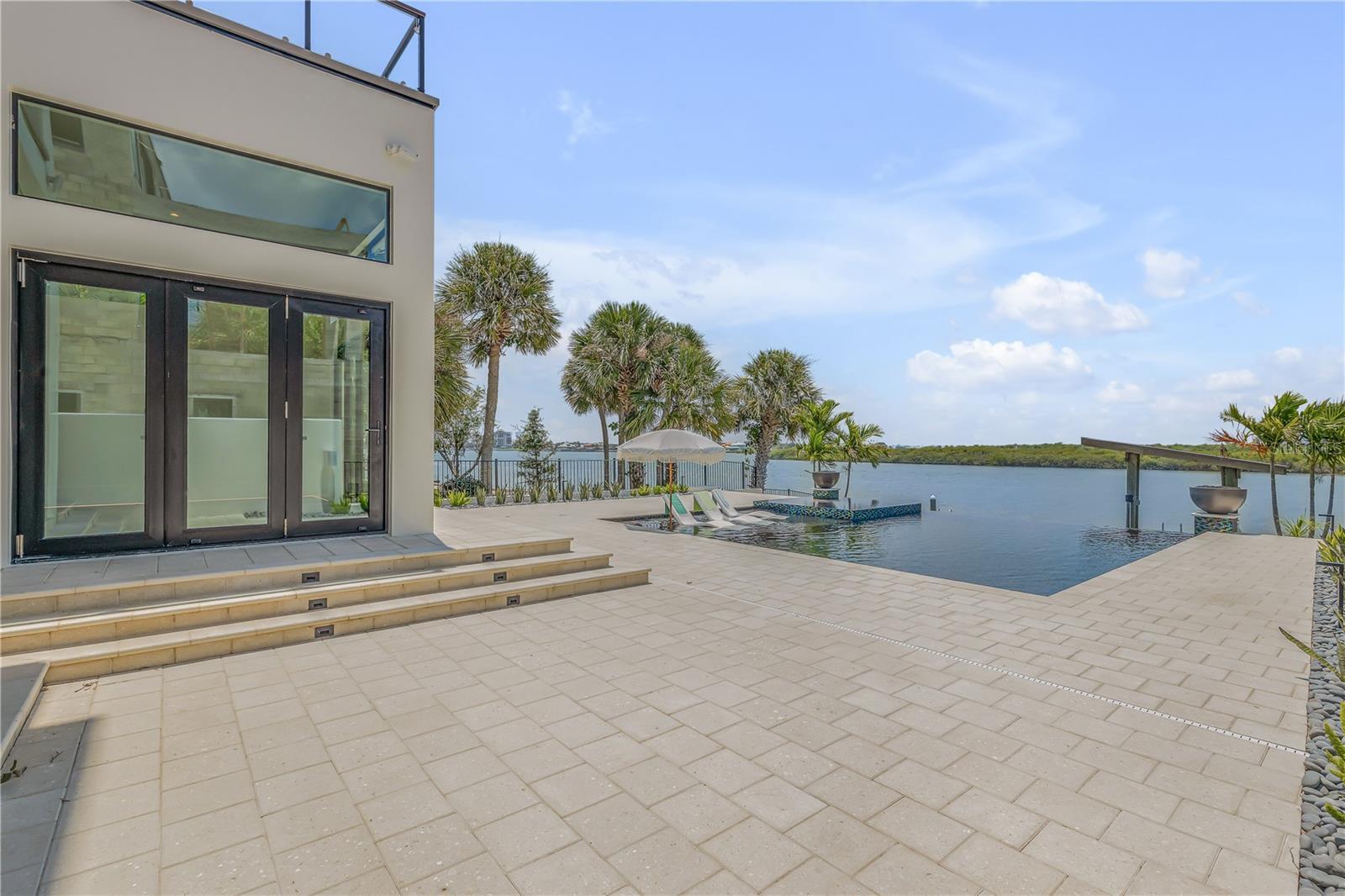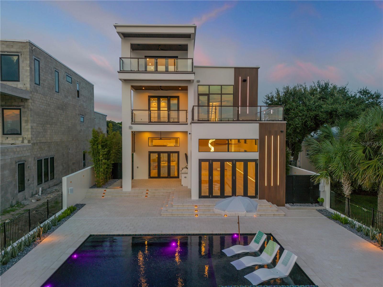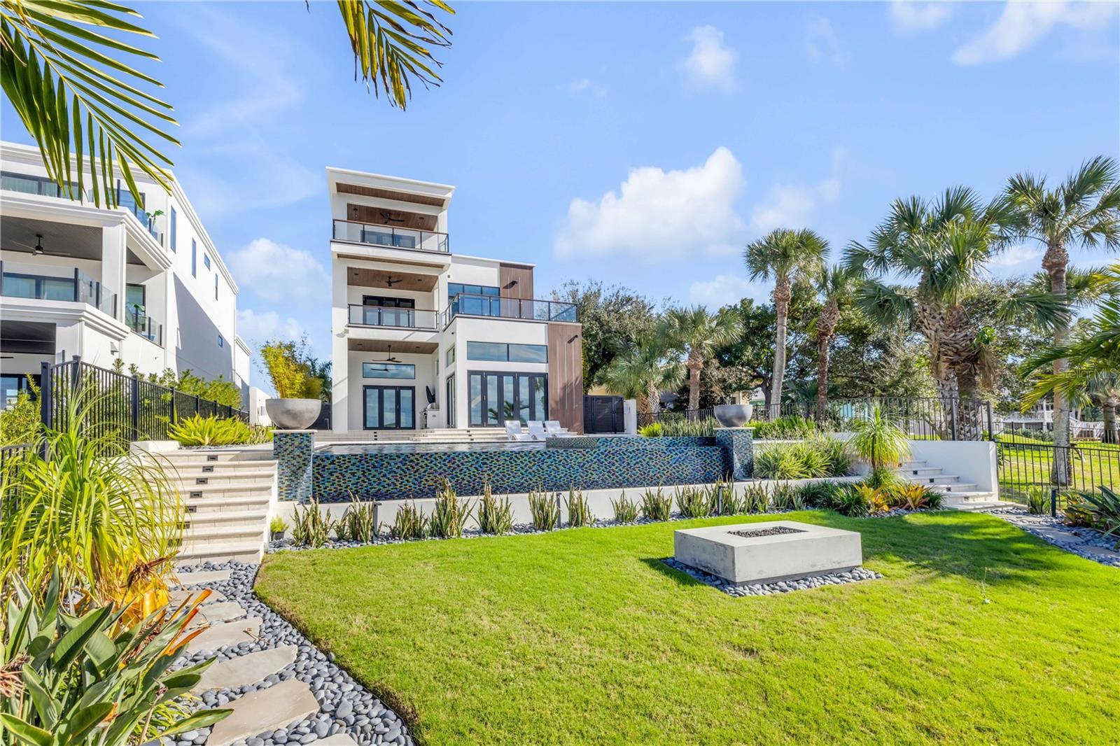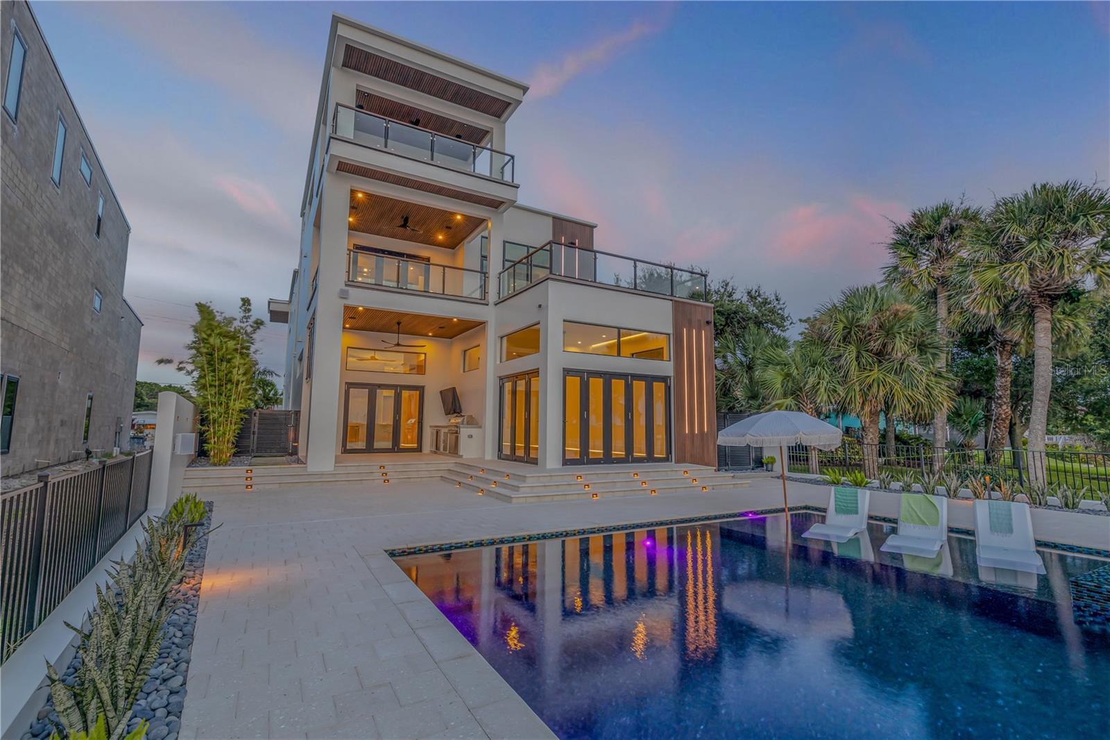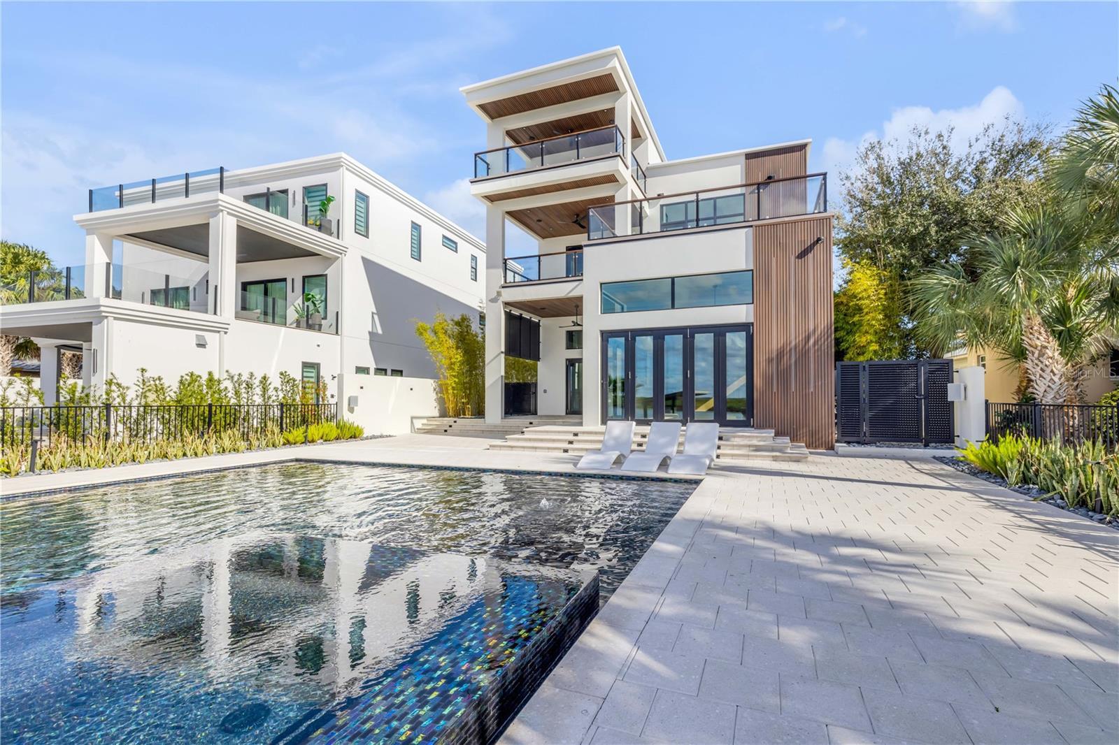 A rare intersection of modern architecture, true deep-water dockage, and a two block walk-to-the-beach living. This never-lived-in year 2024-2025 custom build is on the Intracoastal waterway in one of New Smyrna Beach’s most coveted waterfront corridors. Designed for people who don’t want a “coastal cliché,” this home delivers clean lines, dramatic volume, and walls of glass that pull the water and sky into the living spaces. A private automatic elevator or switch back staircase connects all three levels, creating effortless flow for everyday living and entertaining. The main living level opens to a showpiece outdoor setting: an infinity-edge pool and spa and expansive waterfront terrace built for sunsets, cocktail hours, and quiet mornings that feel like a permanent vacation. For boaters, this is the real deal—deep water access and a private slip accommodating up to a ~50’ yacht positioned for the kind of spontaneous “dock-and-go” lifestyle most waterfront listings only promise. And when you want sand instead of sea, the beach is just a short walk away. Every element is new, crisp, and elevated: high-end finishes, thoughtful lighting, refined materials, and modern systems—all in a home built to feel both striking and comfortable. This isn’t just a home. It’s a waterfront compound for the buyer who values privacy, design, and the freedom to live on the water without sacrificing sophistication. If you’ve been searching for something truly different—a modern waterfront estate that would feel at home in South Florida, offered in a more relaxed, livable coastal setting—this is your moment.