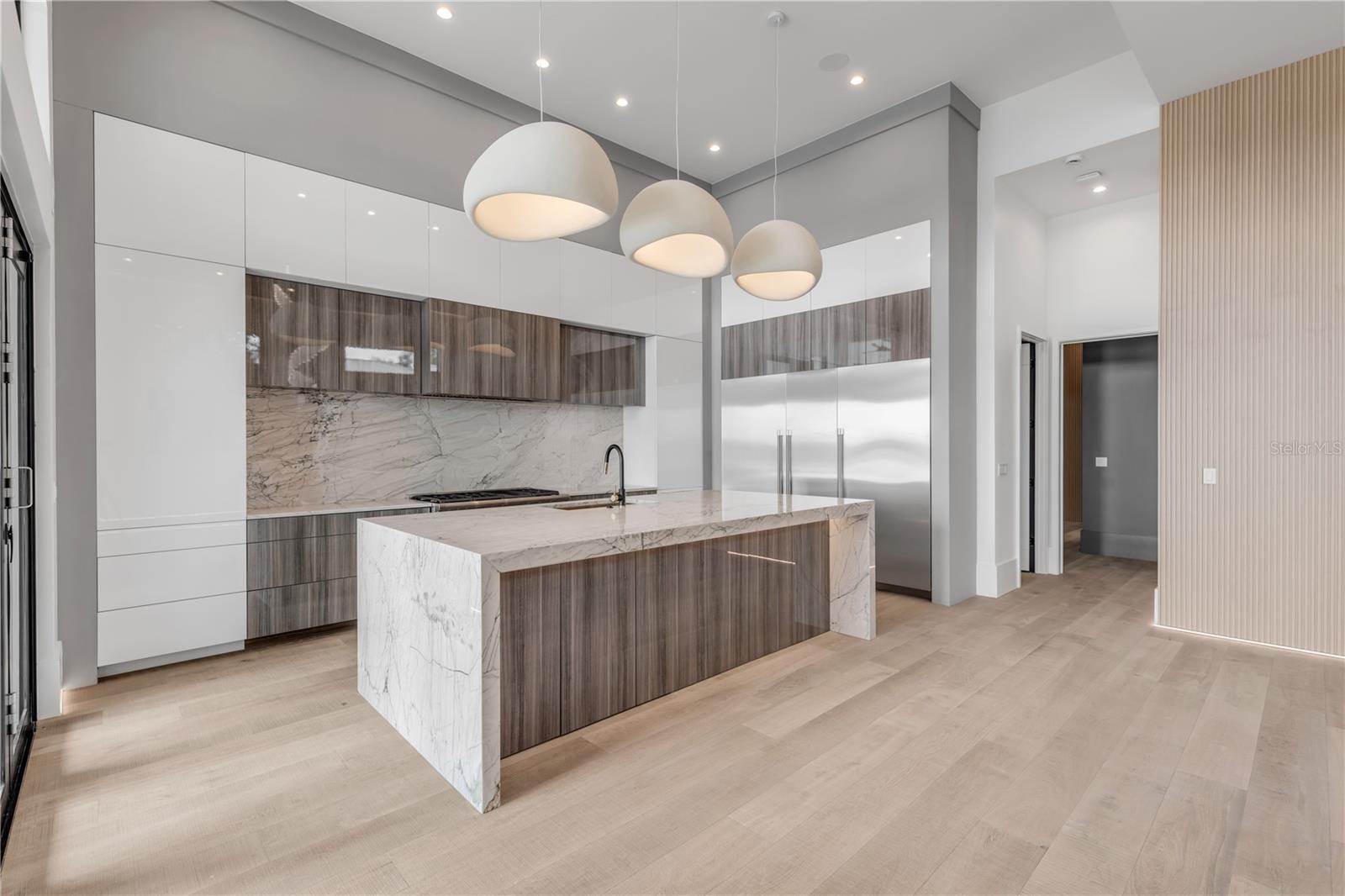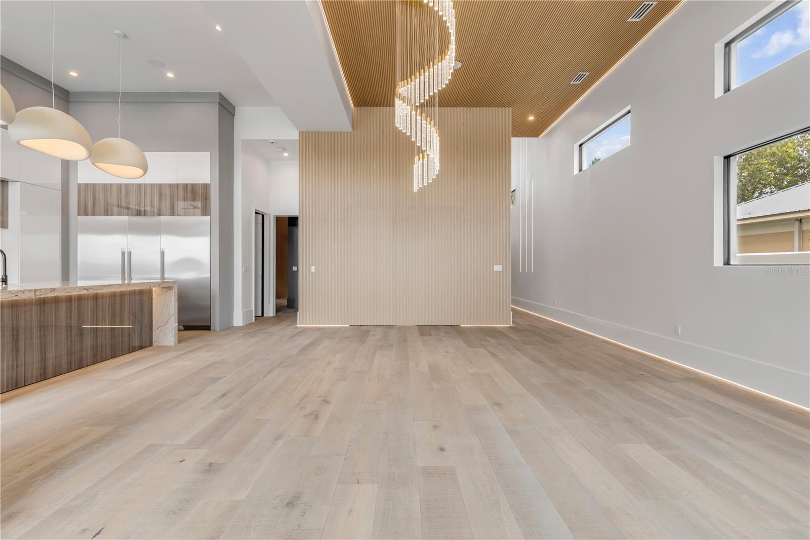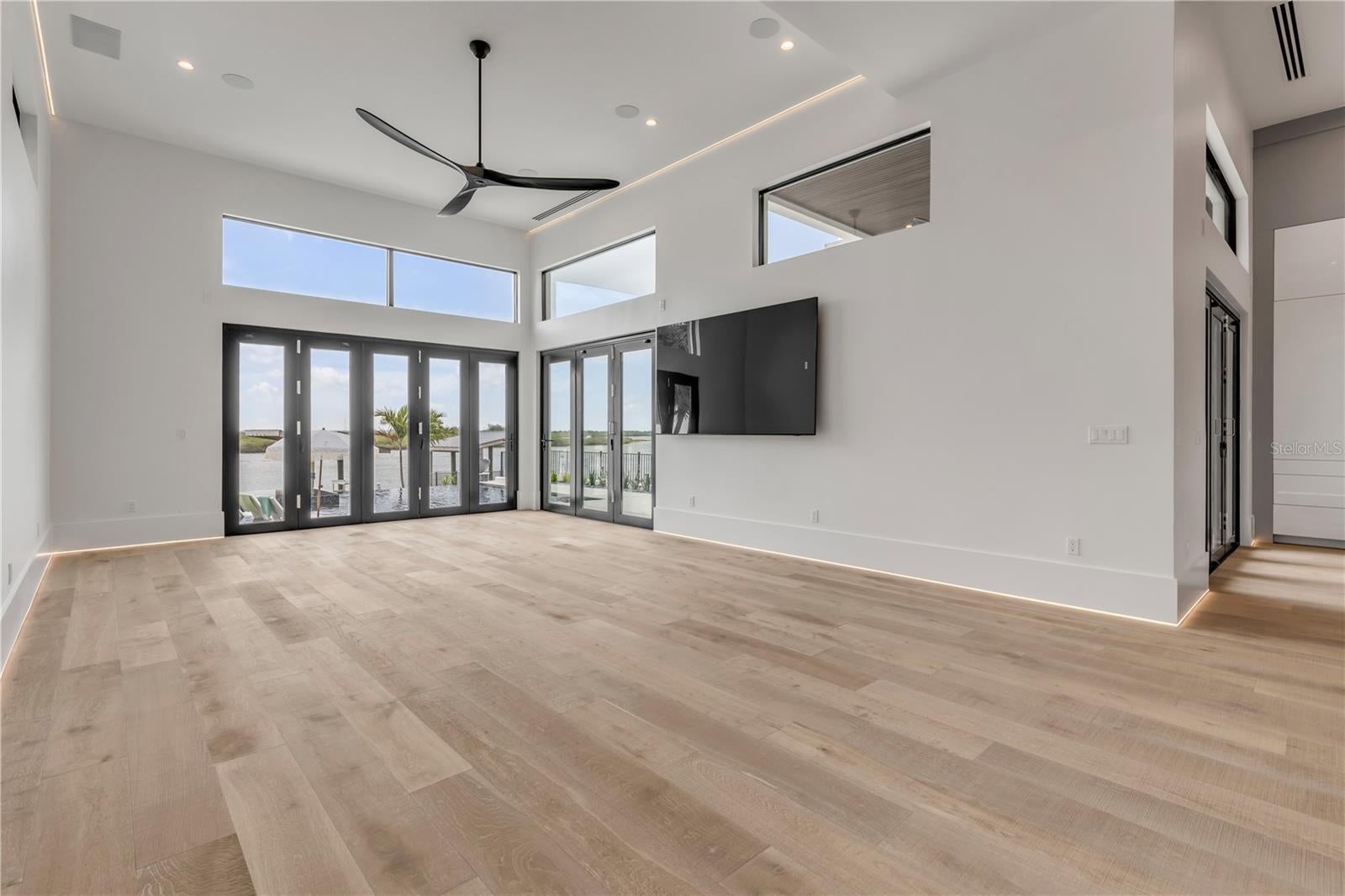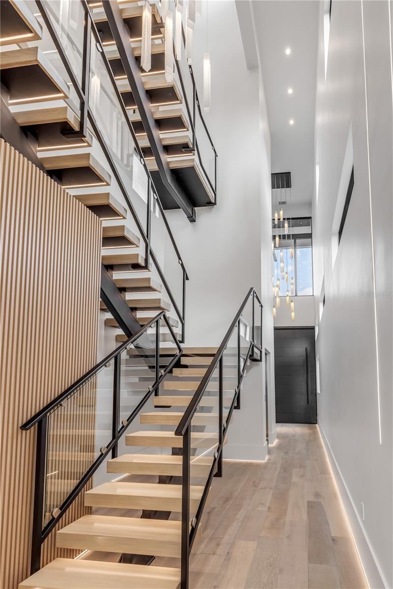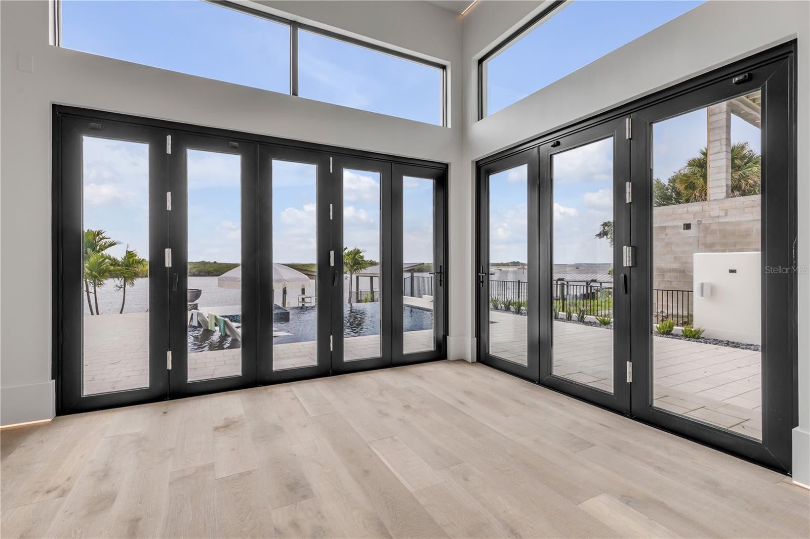 A rare intersection of modern architecture, true deep-water dockage, and a two block walk-to-the-beach living. This never-lived-in year 2024-2025 custom build is on the Intracoastal waterway in one of New Smyrna Beach’s most coveted waterfront corridors. Designed for people who don’t want a “coastal cliché,” this home delivers clean lines, dramatic volume, and walls of glass that pull the water and sky into the living spaces. A private automatic elevator or switch back staircase connects all three levels, creating effortless flow for everyday living and entertaining. The main living level opens to a showpiece outdoor setting: an infinity-edge pool and spa and expansive waterfront terrace built for sunsets, cocktail hours, and quiet mornings that feel like a permanent vacation. For boaters, this is the real deal—deep water access and a private slip accommodating up to a ~50’ yacht positioned for the kind of spontaneous “dock-and-go” lifestyle most waterfront listings only promise. And when you want sand instead of sea, the beach is just a short walk away. Every element is new, crisp, and elevated: high-end finishes, thoughtful lighting, refined materials, and modern systems—all in a home built to feel both striking and comfortable. This isn’t just a home. It’s a waterfront compound for the buyer who values privacy, design, and the freedom to live on the water without sacrificing sophistication. If you’ve been searching for something truly different—a modern waterfront estate that would feel at home in South Florida, offered in a more relaxed, livable coastal setting—this is your moment.
