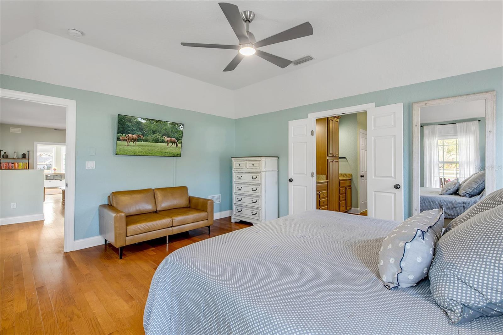 - Ceiling Fans(s), Kitchen/Family Room Combo, Primary Bedroom Main Floor, Solid Surface Counters, Thermostat, Walk-In Closet(s), Window Treatments