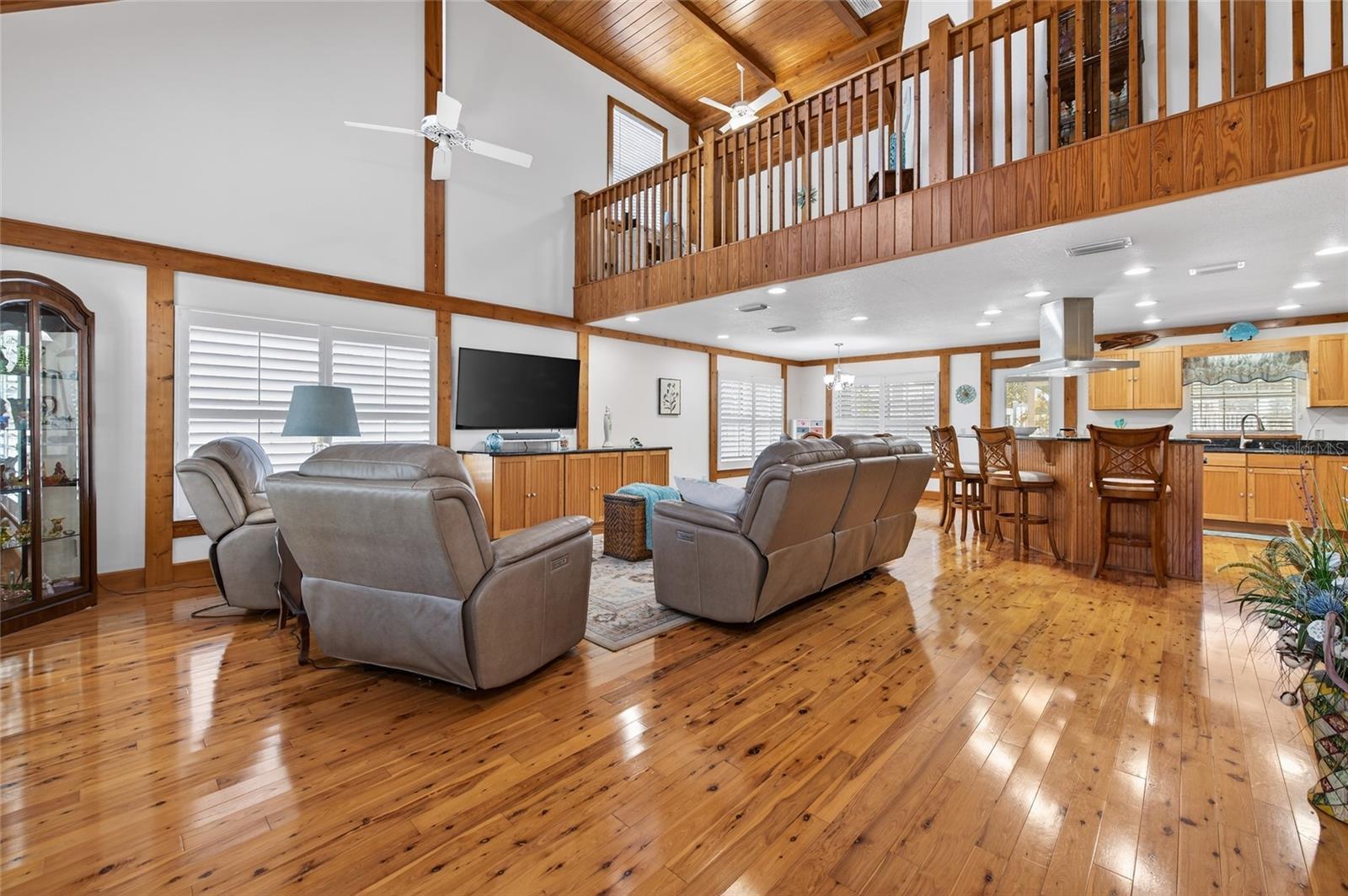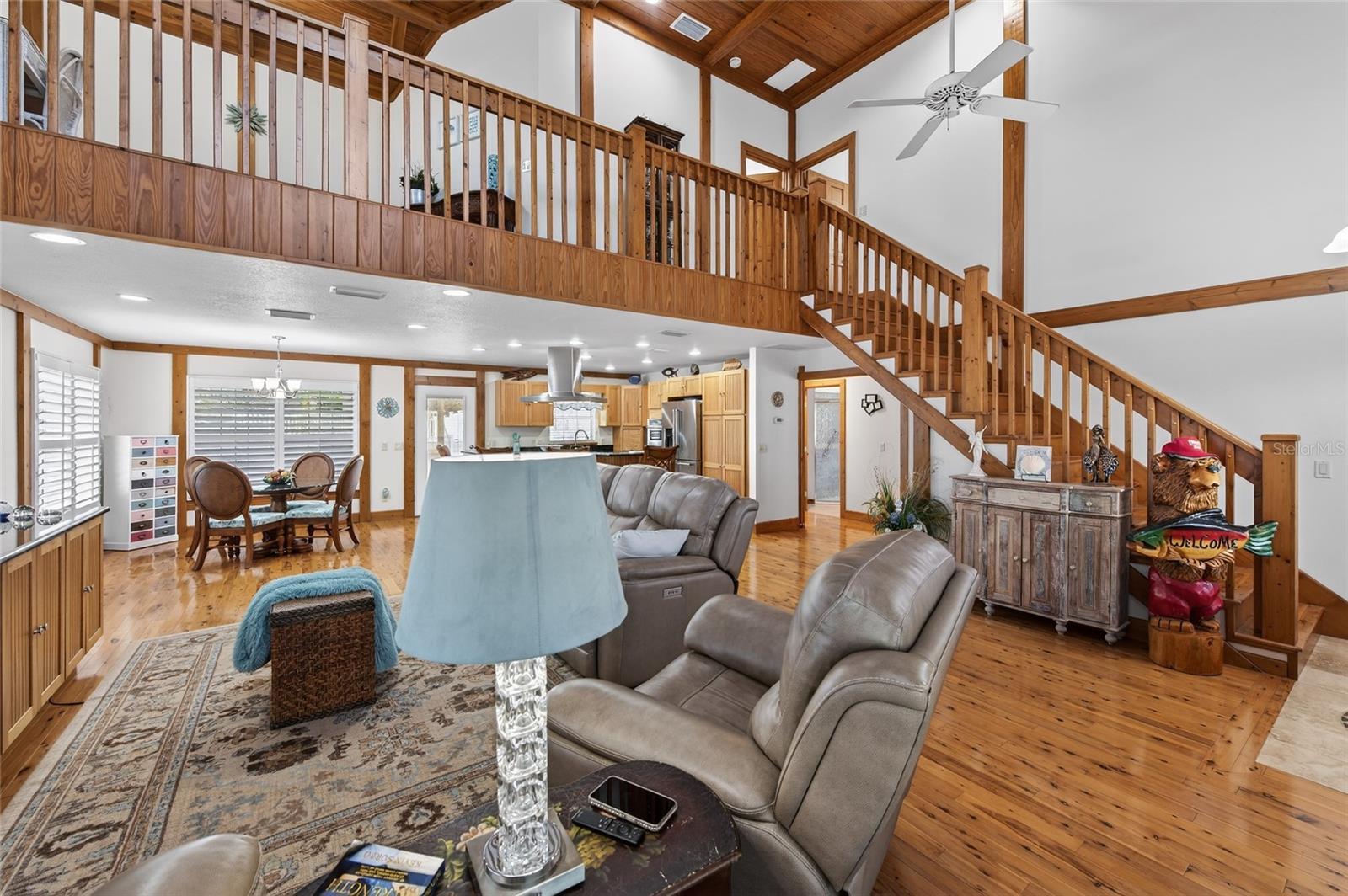 - Ceiling Fans(s), Eat-in Kitchen, High Ceilings, Primary Bedroom Main Floor, Stone Counters, Vaulted Ceiling(s), Walk-In Closet(s), Window Treatments