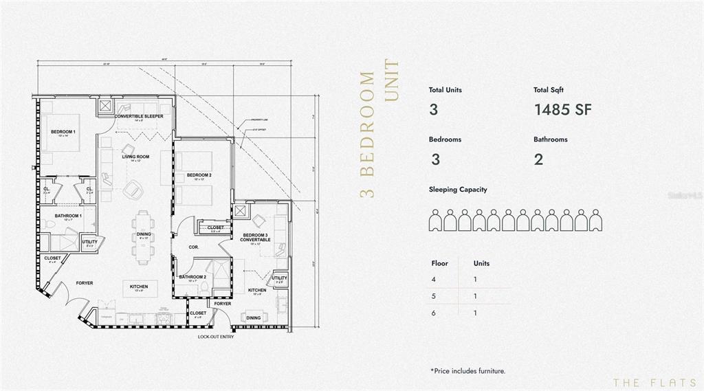 Pre-Construction. To be built. Imagine walking into a place where its core philosophy is to uphold your need to rest and relax in luxury. The Flats is a new way to experience Orlando; the only Wellness Certified Condo-Hotel of its kind. From a sanitation system that pumps probiotics into the air and promotes good bacteria, to Vitamin C showers to enhance the immune system and minimize toxicity and Circadian lighting- designed to promote the body's natural sleep cycle you'll stand amazed at everything The Flats has to offer. This 3 bedroom unit comes fully furnished with two complete kitchens, two laundries, and two separate entrances. This means investors can lease the unit to two separate parties simultaneously or as a whole. With amenities like a wellness spa, 24-hour gymnasium, and a game room, owners and guests alike will feel the difference of The Flats. There's something for everyone, make a smart investment now! Flexible management options, use of AirBNB approved!