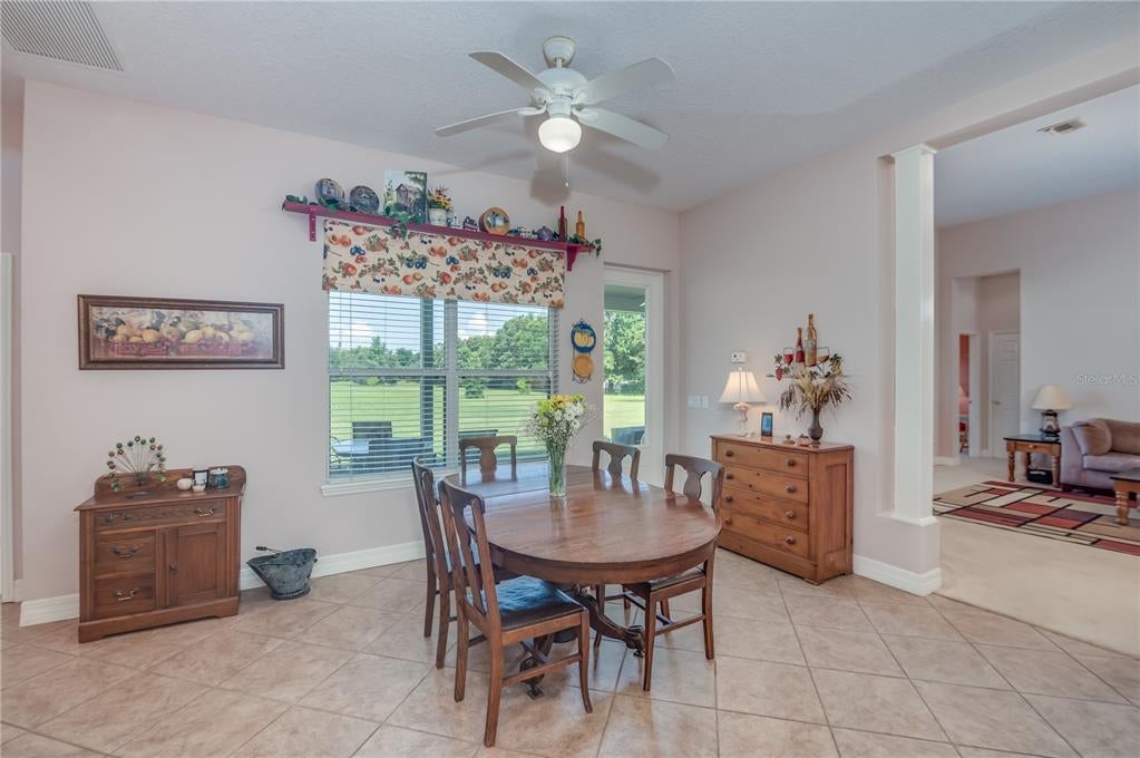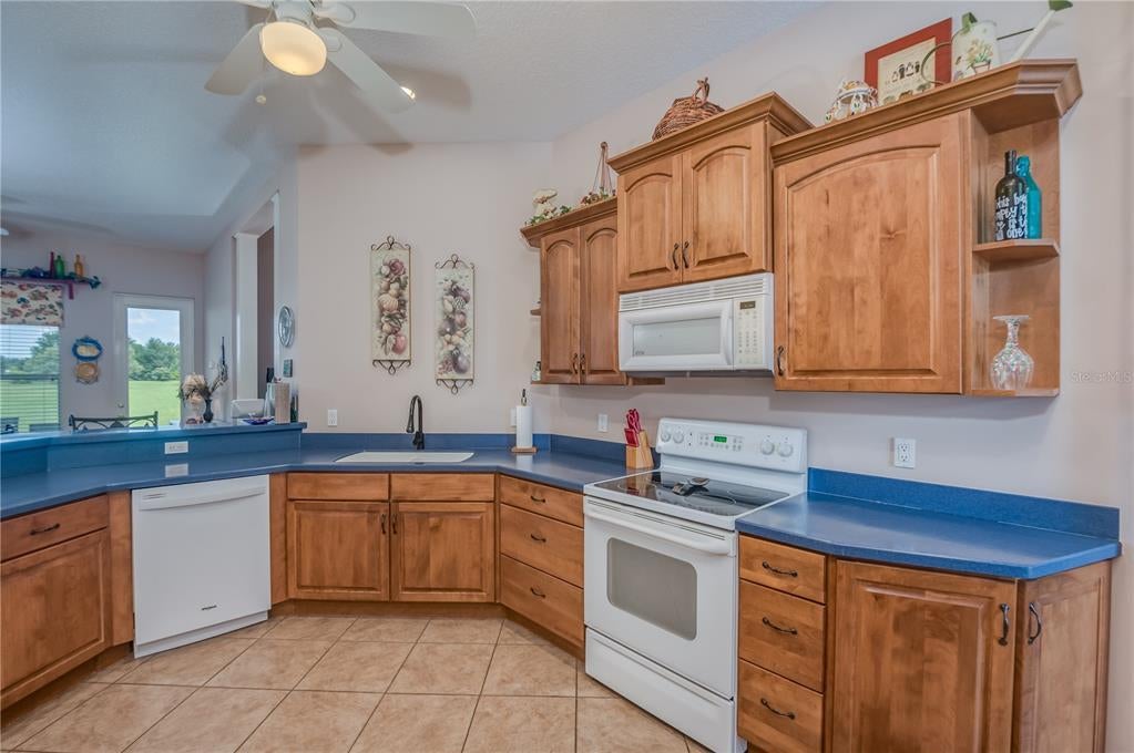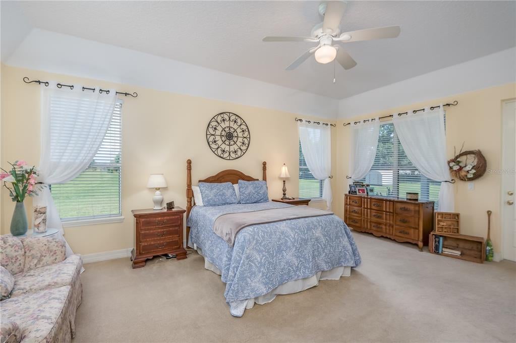 - Ceiling Fans(s), Eat-in Kitchen, High Ceilings, Primary Bedroom Main Floor, Solid Surface Counters, Split Bedroom, Thermostat, Tray Ceiling(s), Walk-In Closet(s), Window Treatments